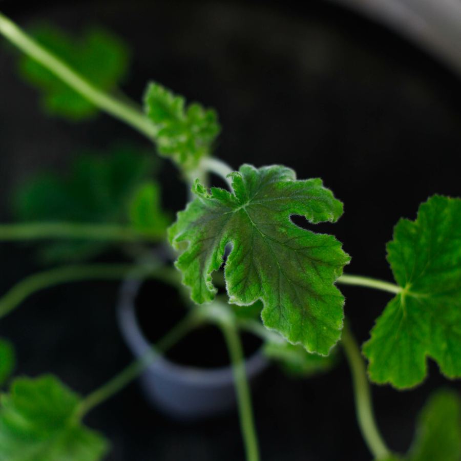 Pelargonium tomentosum: 8 cm, Denna "Chocolate Peppermint" doftpelargon bjuder på pepparmyntadoft och chokladfärgade blad. Perfekt för både näsa och öga! 🌿