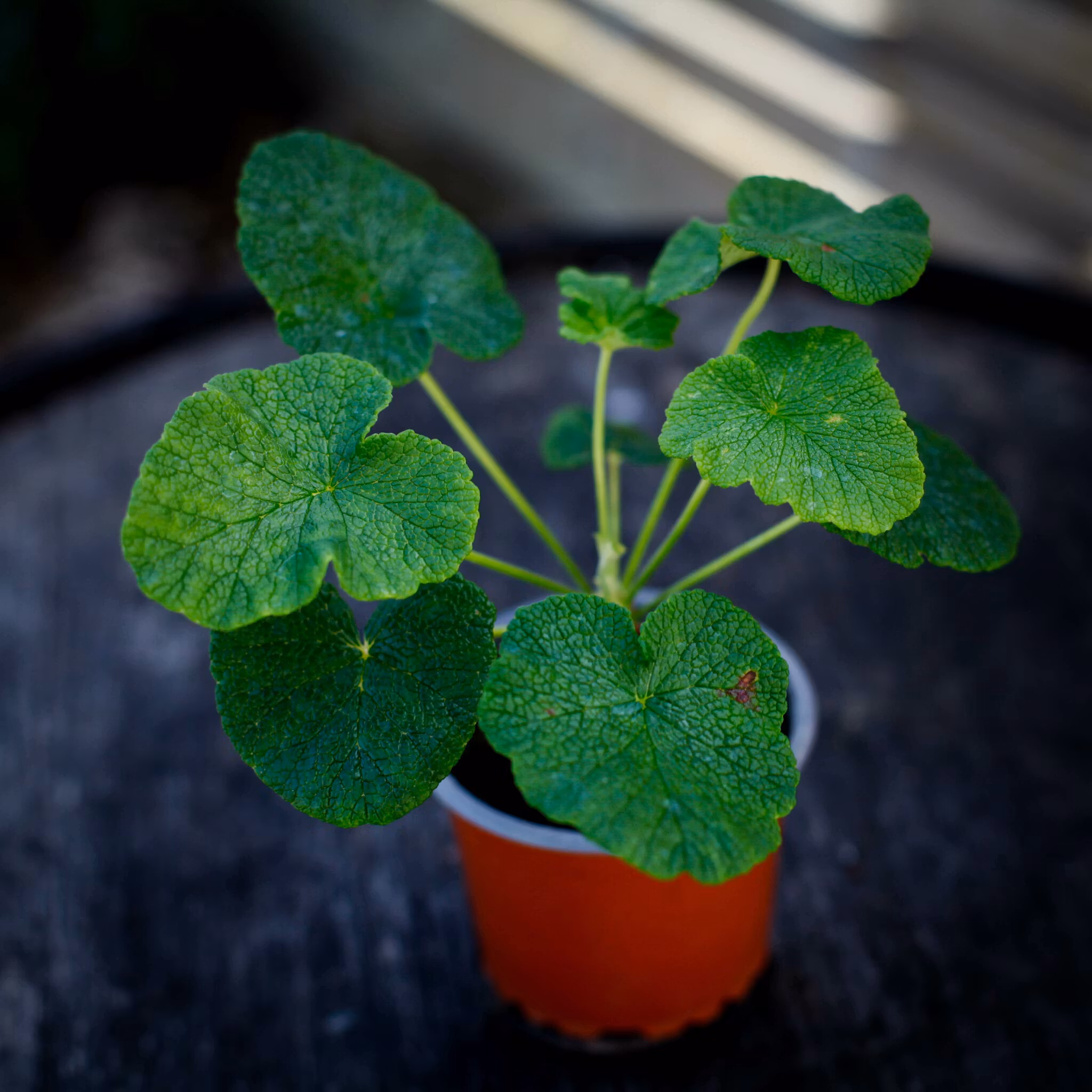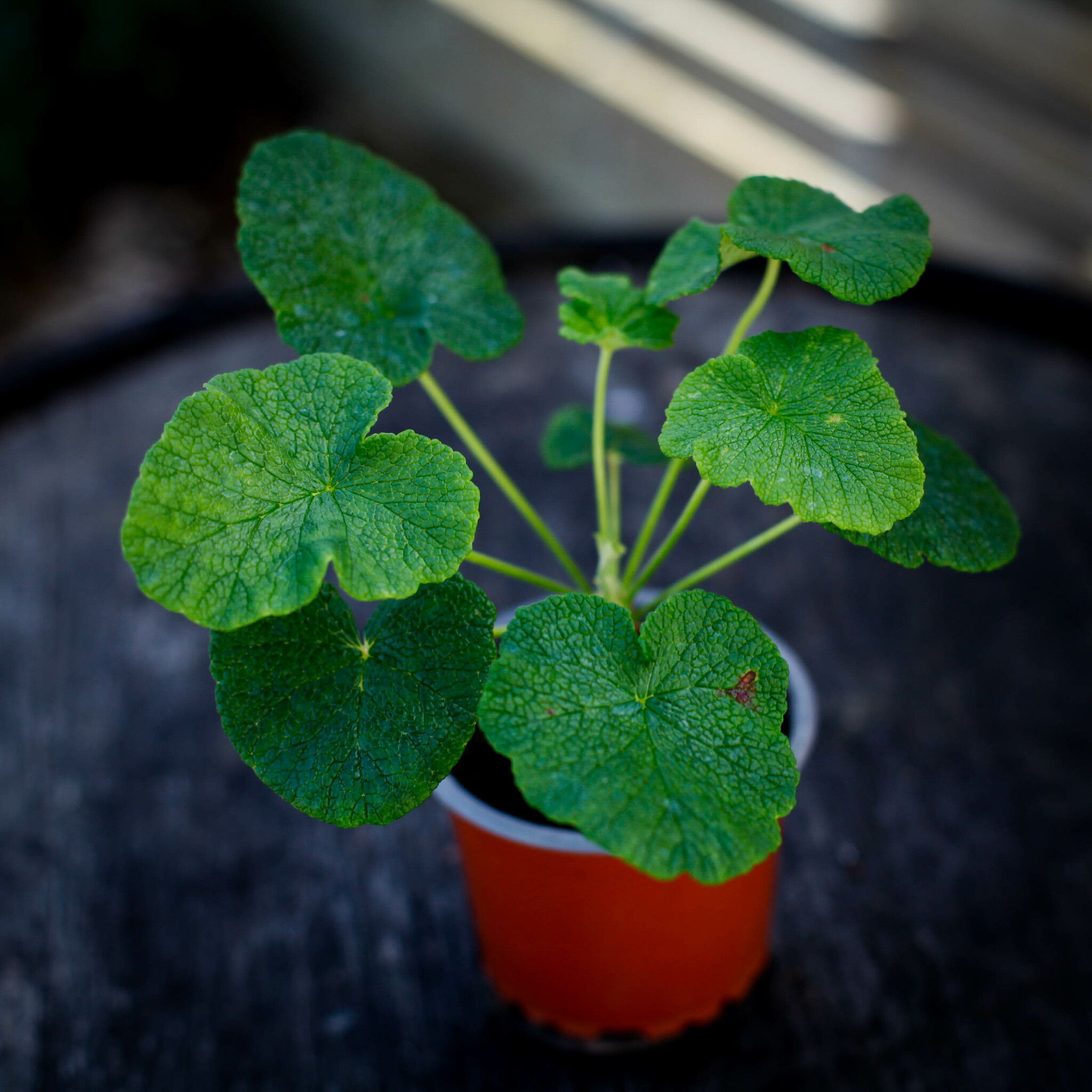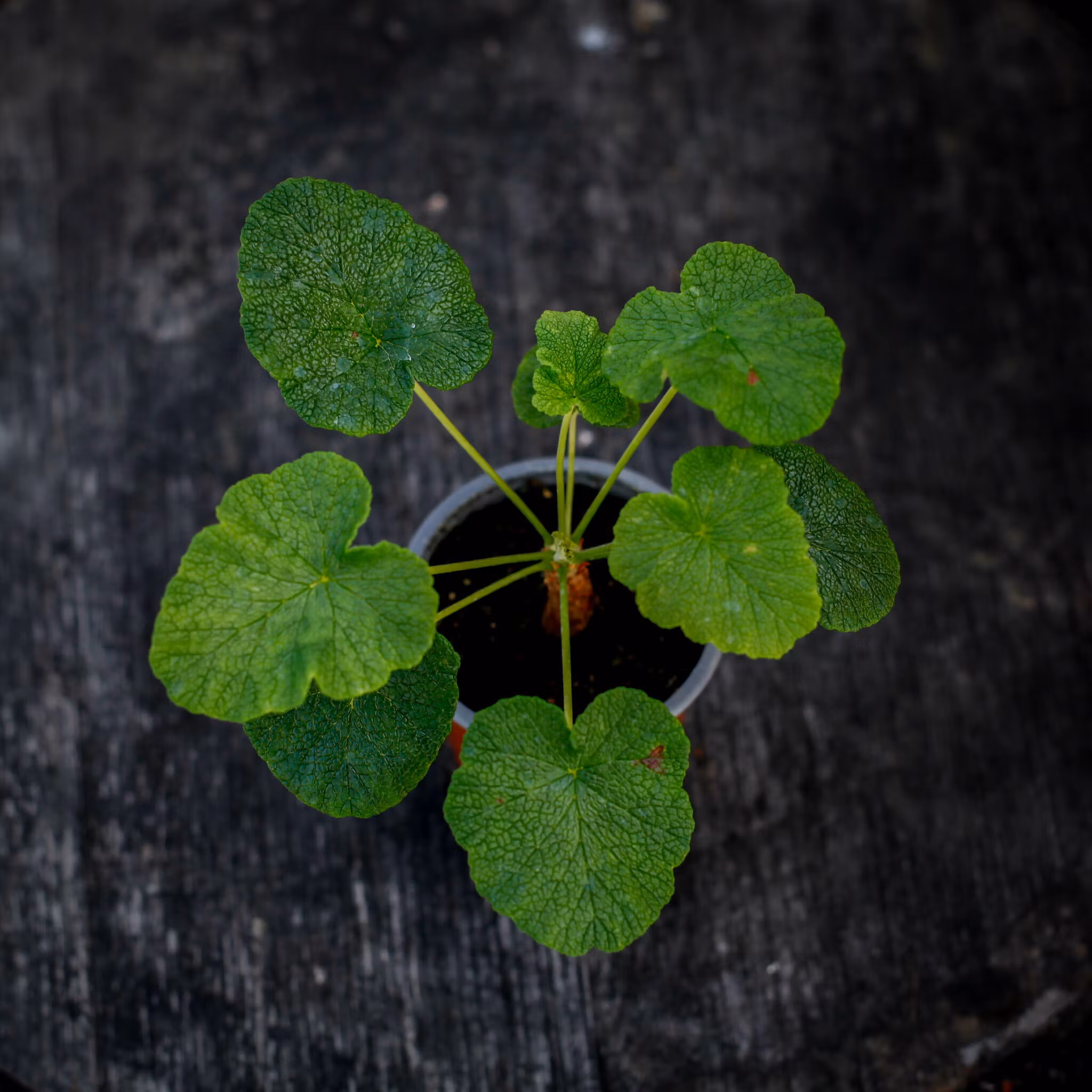 Pelargonium cotyledonis, 8 cm kruka, är en unik vildart från Saint Helena. Enkel att odla, denna pelargon växer långsamt och blir med tiden en bonsai-lik planta