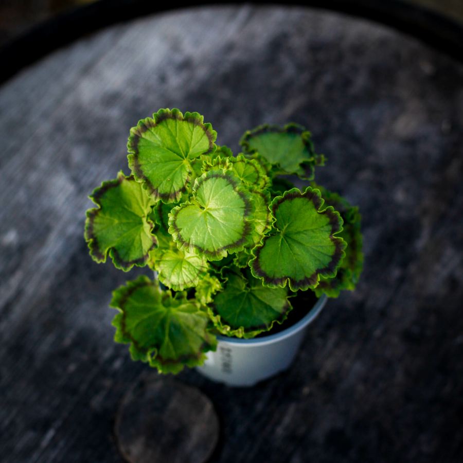 Pelargonium 'Distinction' 10,5 cm - En unik zonalpelargon med distinkt bladverk och röda blommor. Perfekt för fönster, balkonger och trädgårdar. Köp nu!
