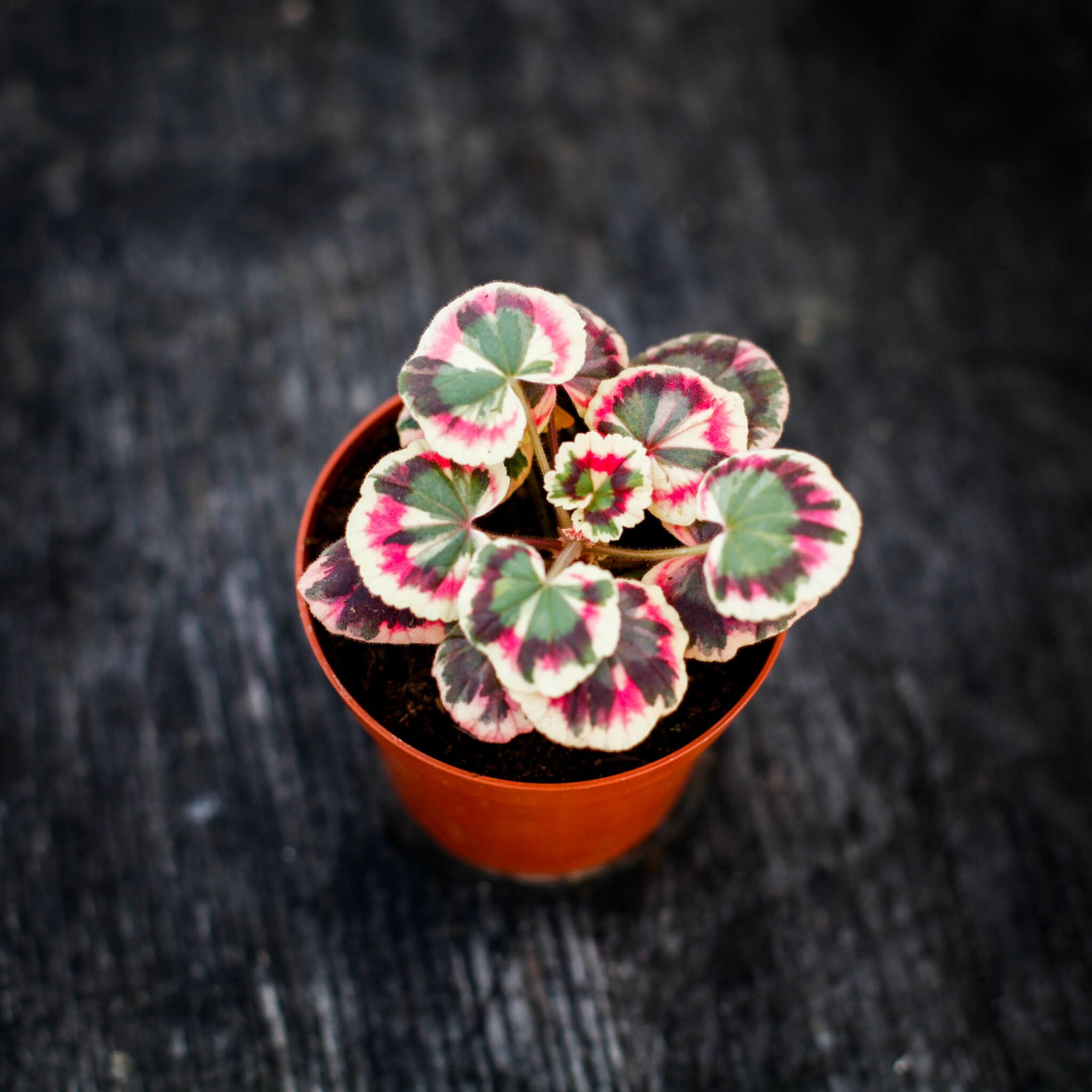 Pelargonium 'Excalibur': 8 cm, En kompakt miniatyrpelargon med rosa blommor. Placera i ljus för intensiv färg. Perfekt för inomhusodling! 🌿