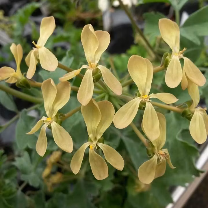 Pelargonium gibbosum: En sällsynt vildpelargon med nattdoftande, gula blommor. Perfekt för samlaren som söker unika växter. Köp hos Klorofyllverket.se.