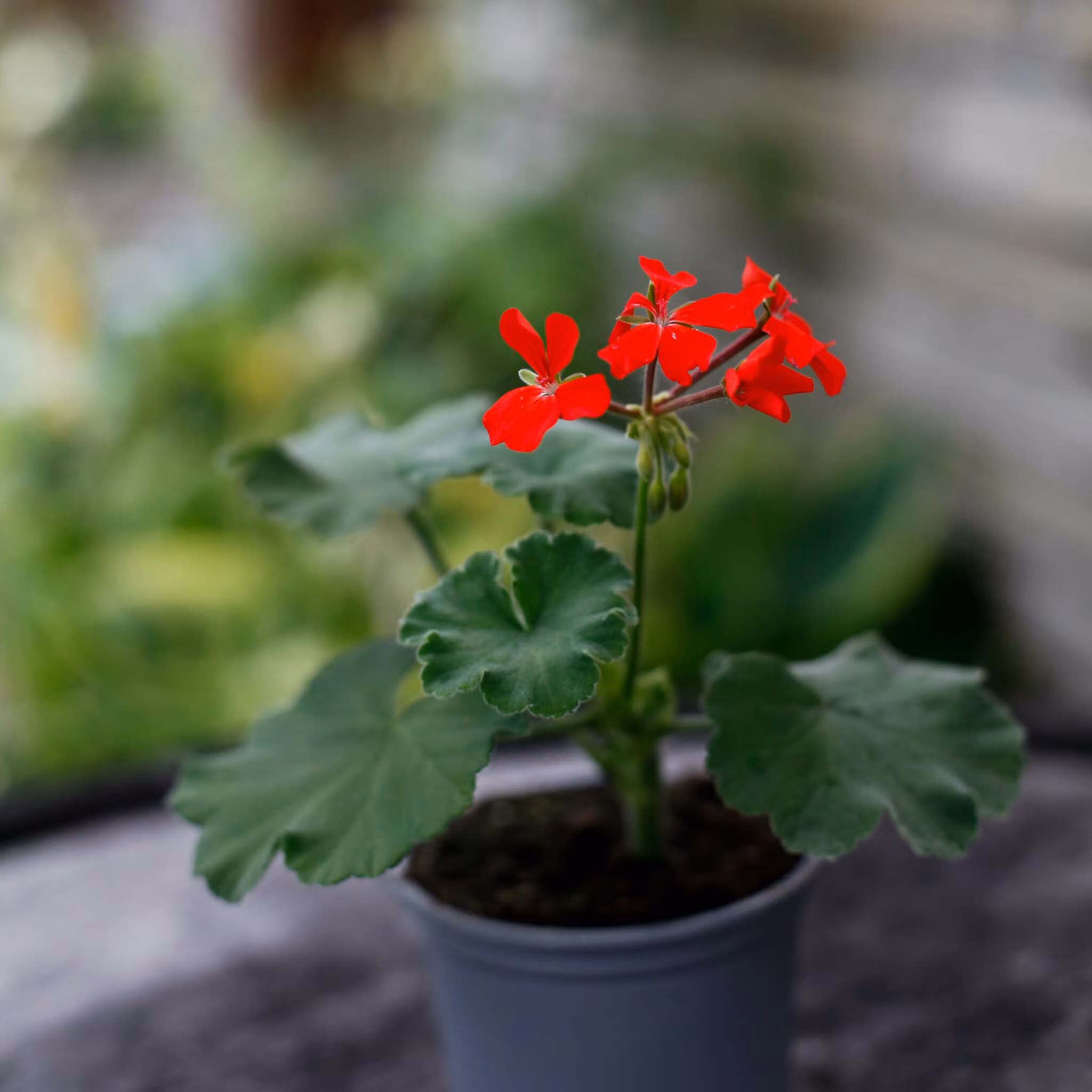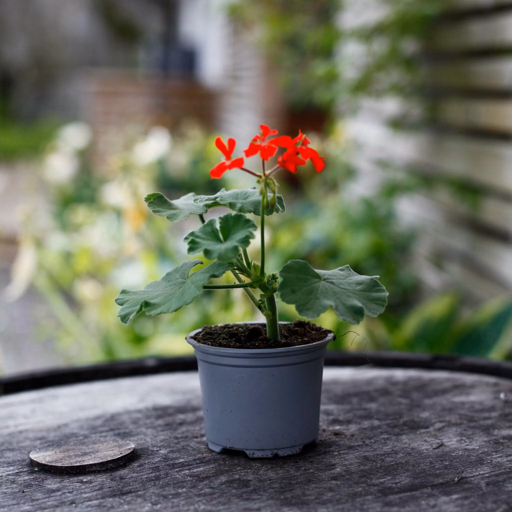 Pelargonium inquinans, även känd som Smutspelargon, är en historisk artpelargon med klara orangeröda blommor. Perfekt för soliga fönster och samlare. 🌿