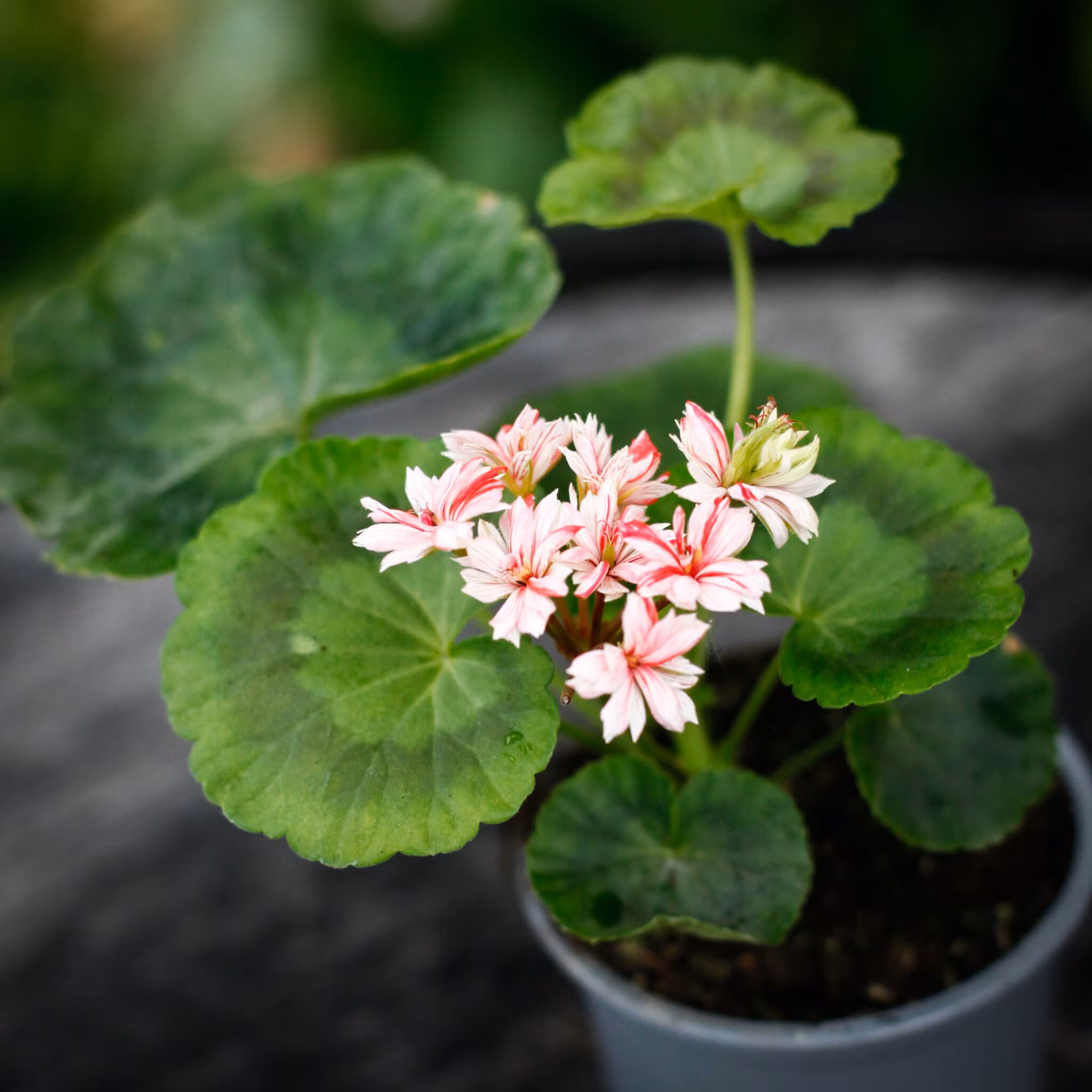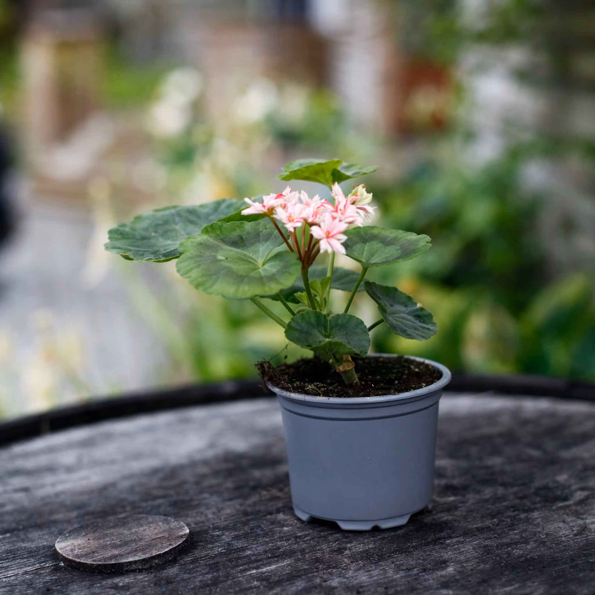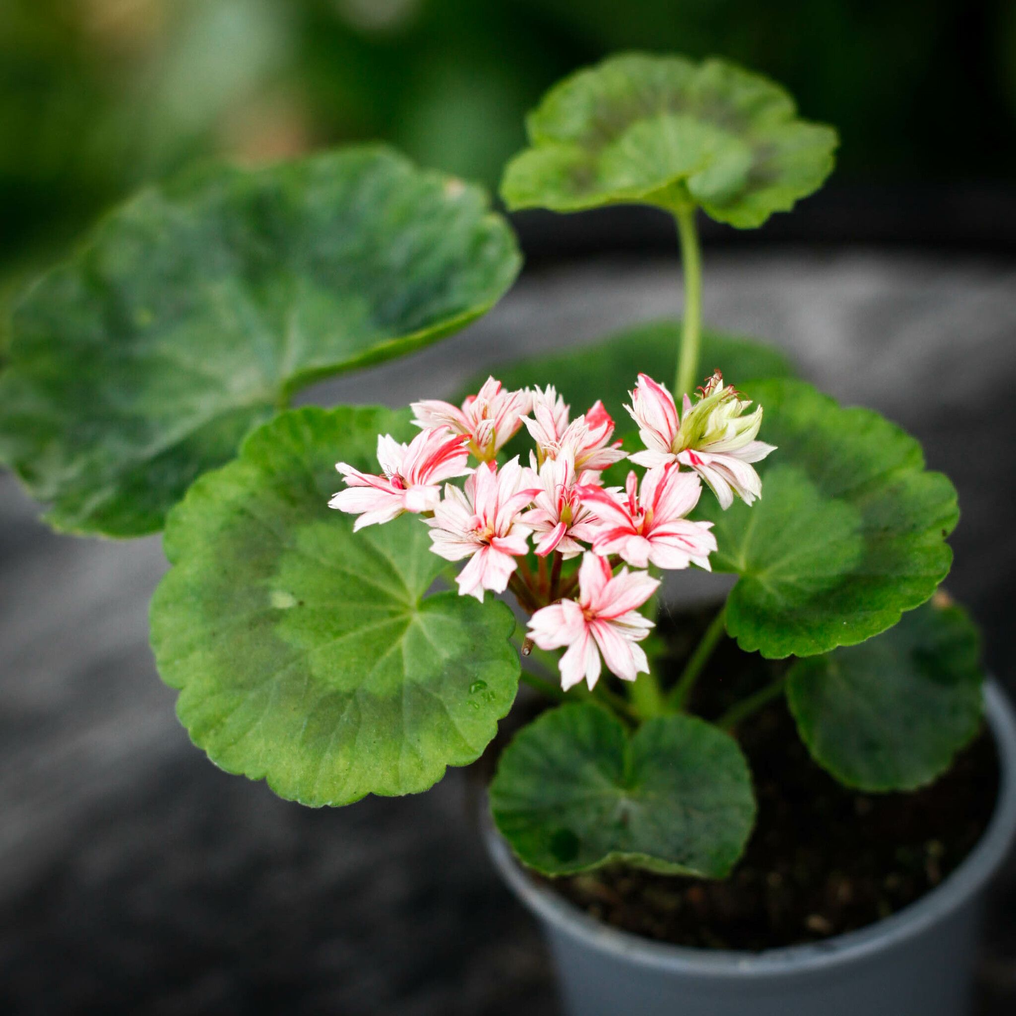 Pelargonium 'Mallorca' – unik zonalpelargon med halvdubbla blommor i eldig färgpalett. Perfekt för soliga platser, kräver jämn fukt och näringsrik jord.