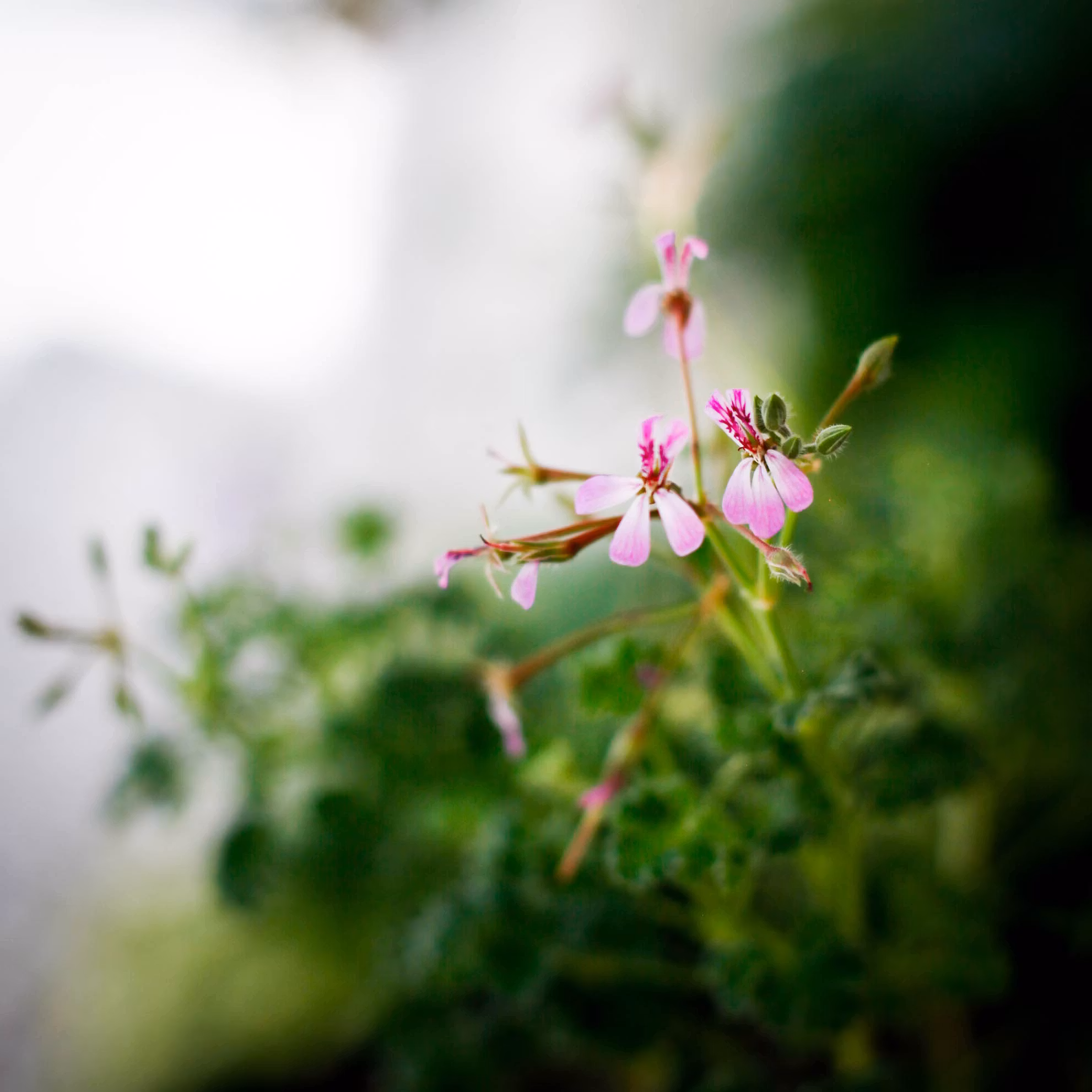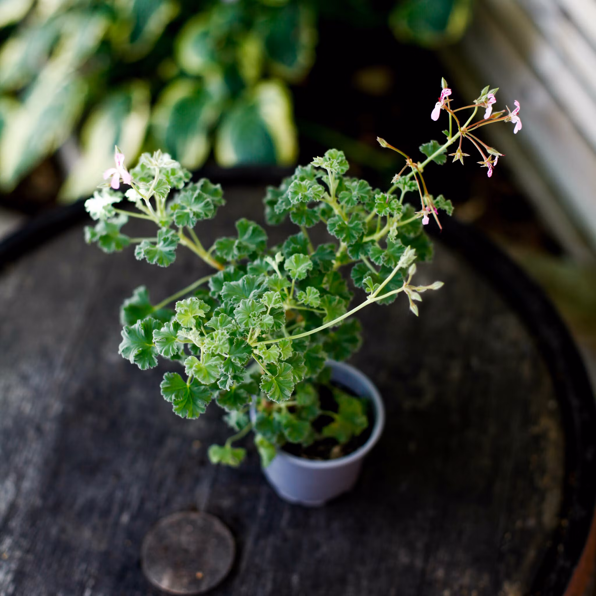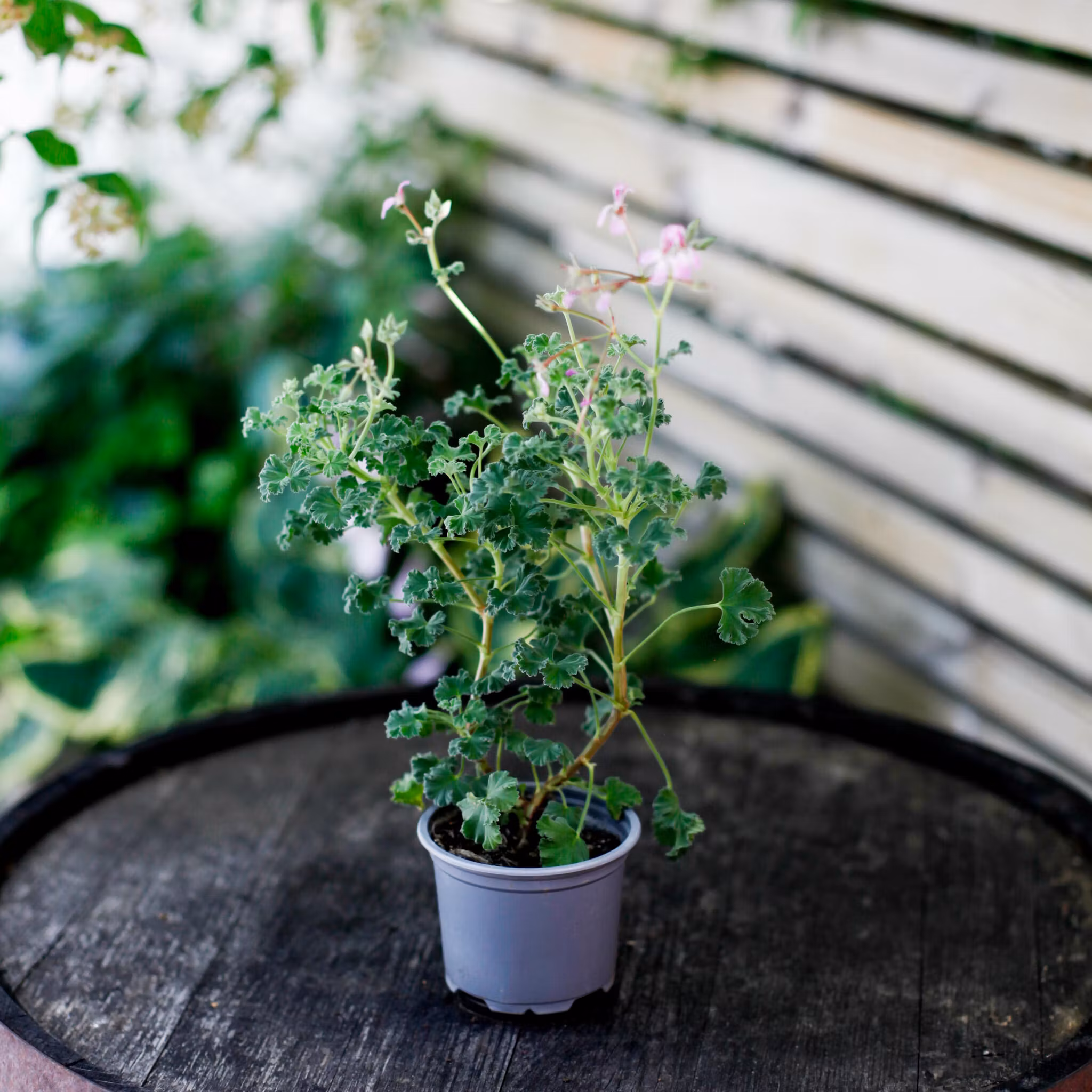 En förtjusande doftpelargon som förgyller ditt hem med sina små, rosalila blommor.