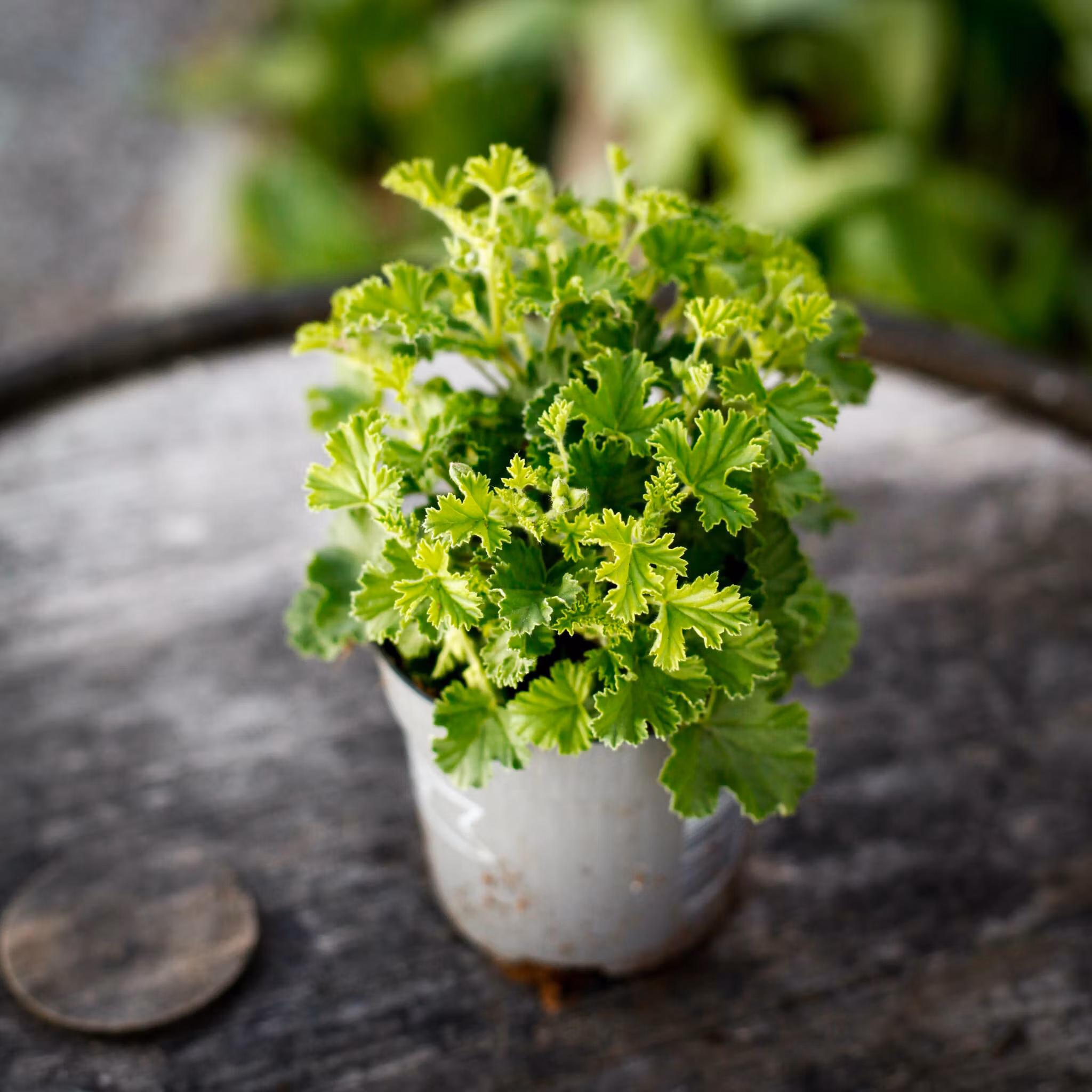 Pelargon 'Nova' - Änglapelargon: Fängslande tvåfärgade blommor och citrondoftande blad som håller mygg borta. Perfekt för fönsterbrädan eller uteplatsen.