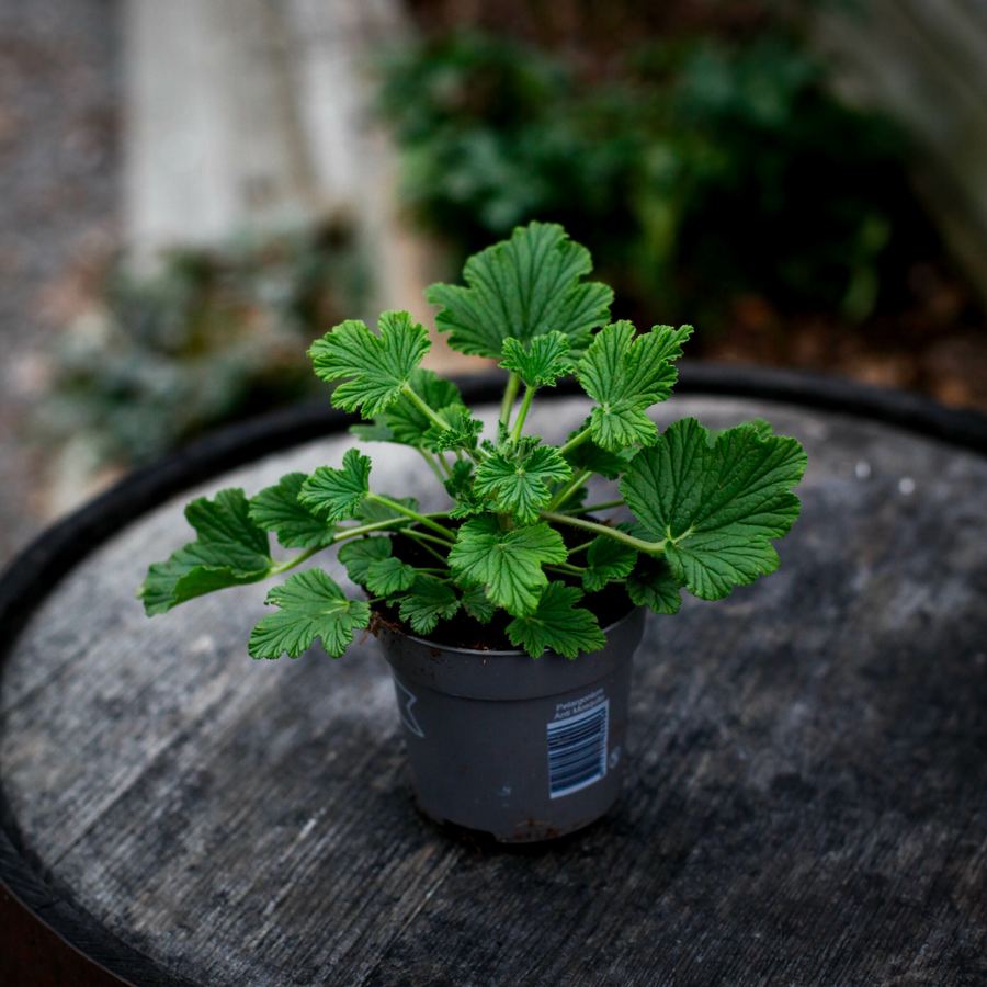 Pelargon 'Orange Fizz' 10,5 cm - Citrusdoft, djuprosa blommor och friskt gröna blad. Perfekt för fönsterbräda eller balkong. Köp hos Klorofyllverket.se!