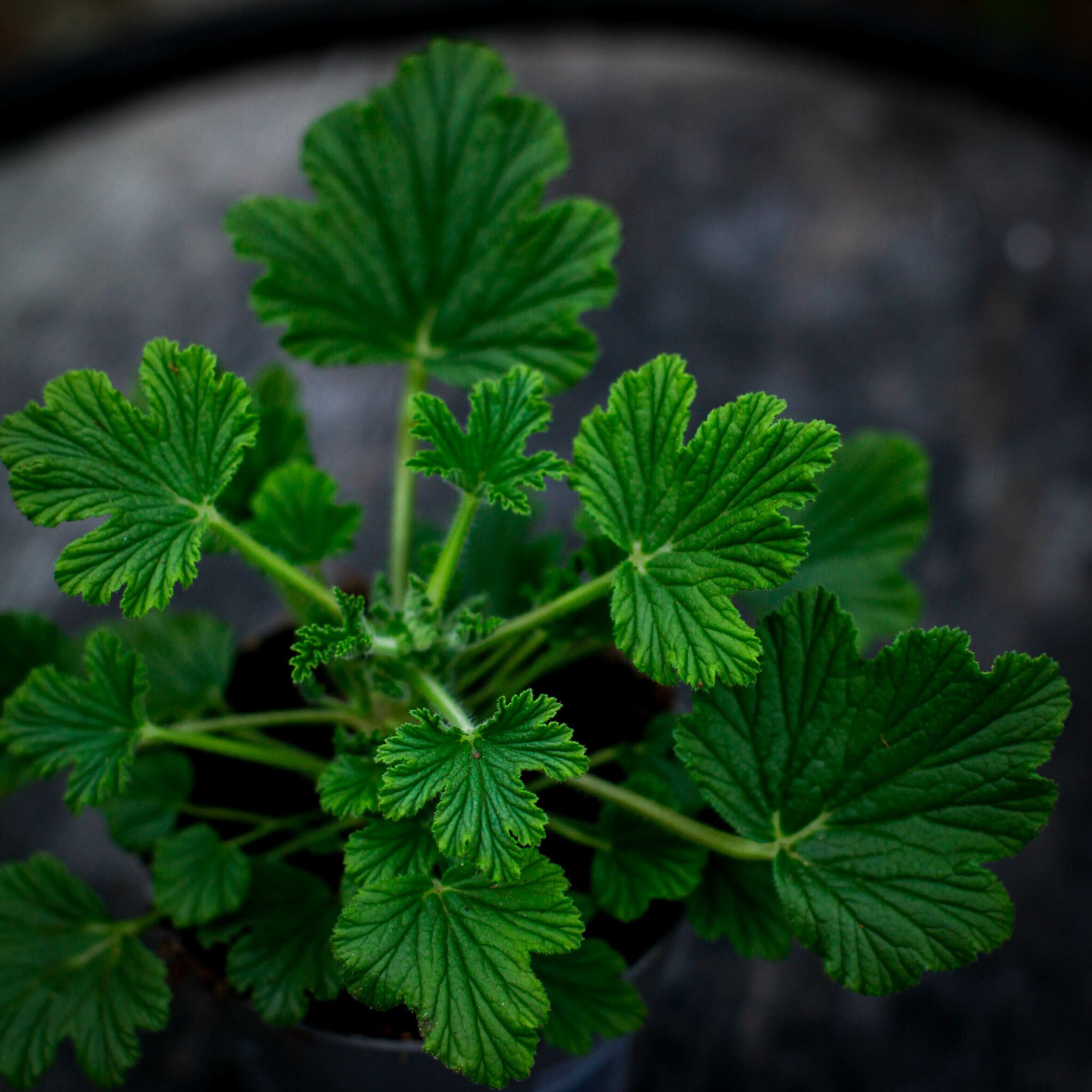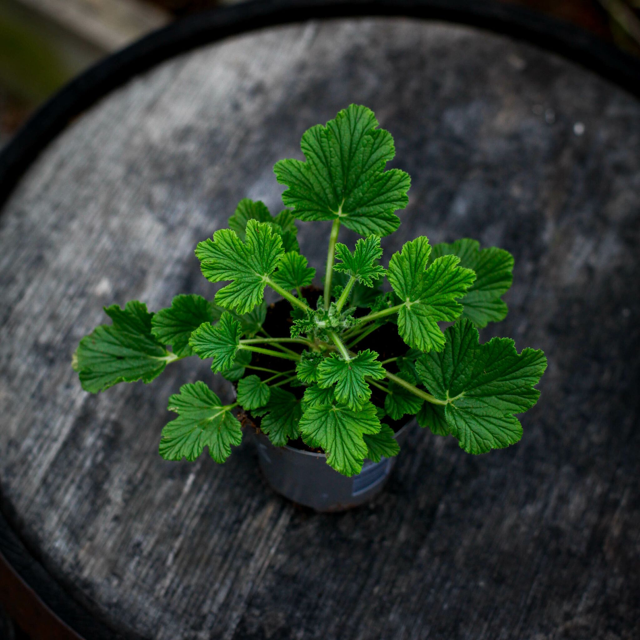 Pelargon 'Orange Fizz' - Citrusdoft, djuprosa blommor och friskt gröna blad. Perfekt för fönsterbräda eller balkong. Köp hos Klorofyllverket.se!