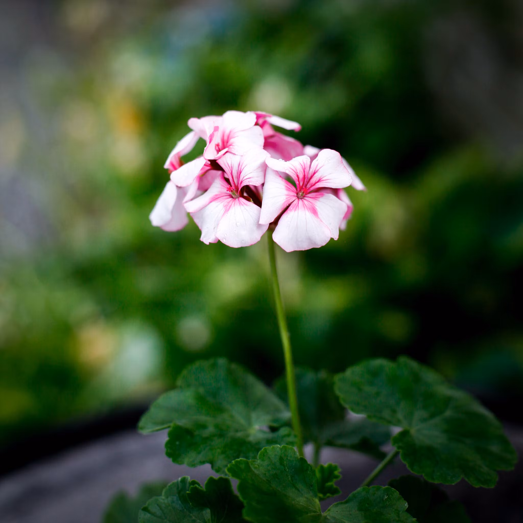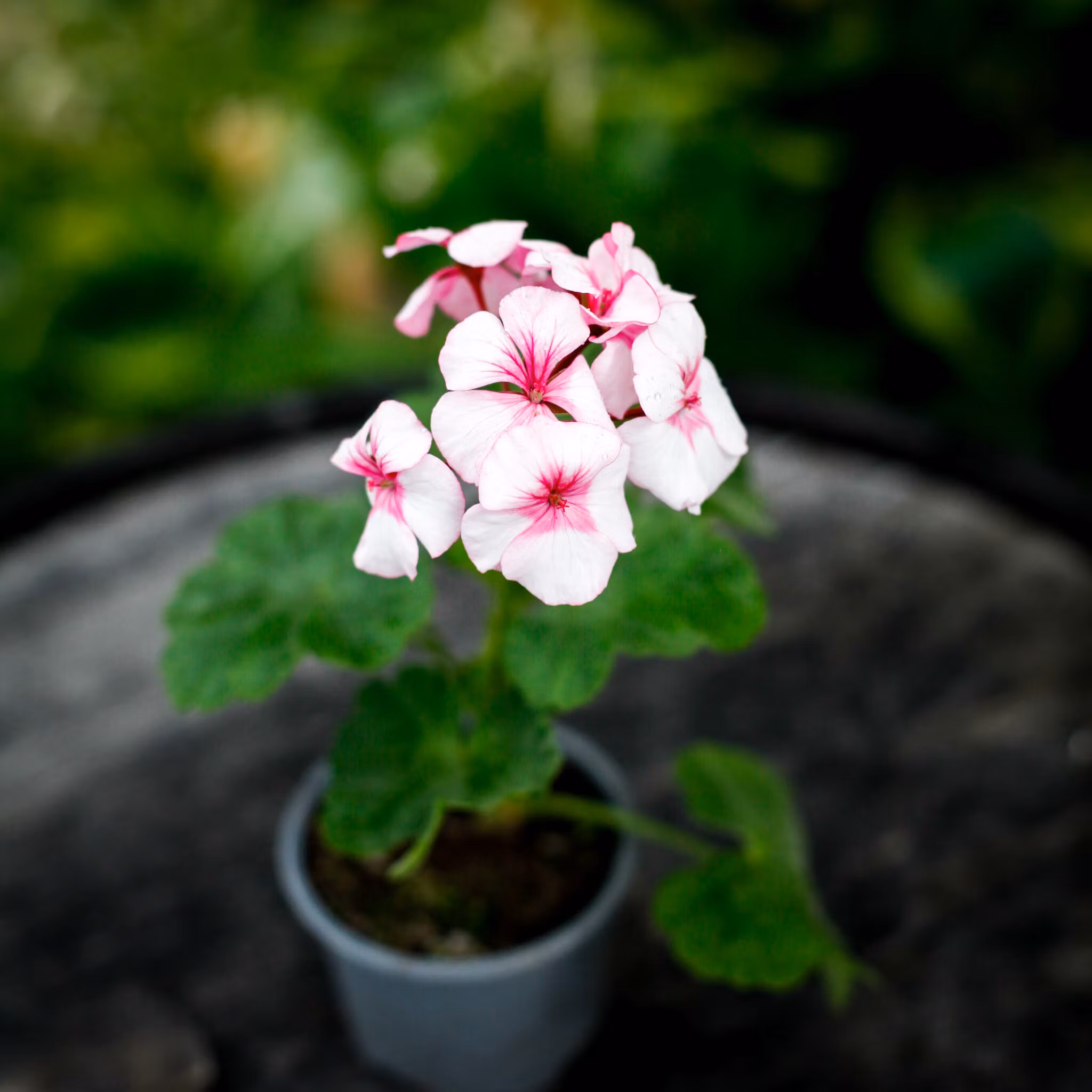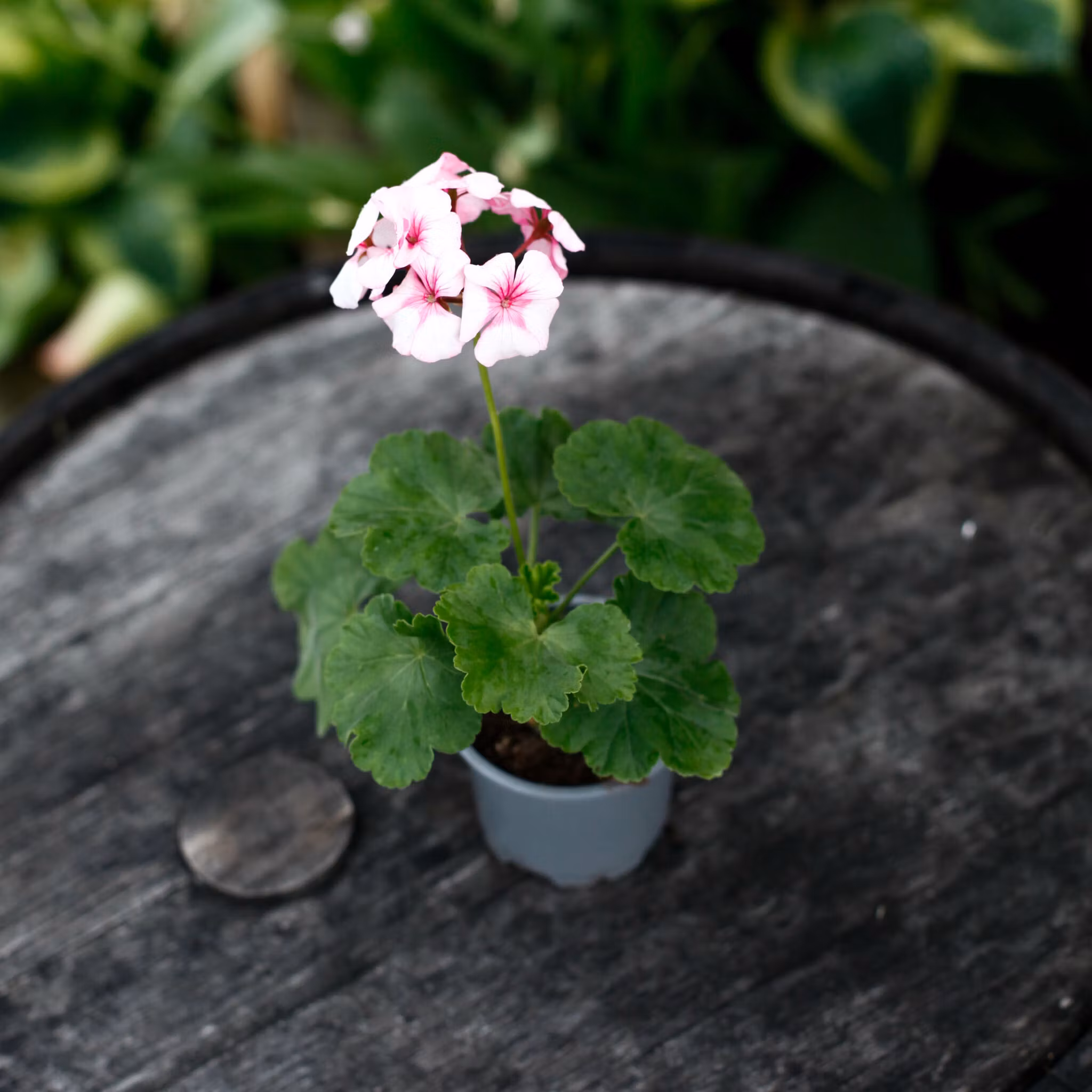 Pelargonium 'Rushmoor Picotee Perfection' – En zonalpelargon med ljust rosa blommor och picotee-effekt. Perfekt för stora krukor och balkonglådor.