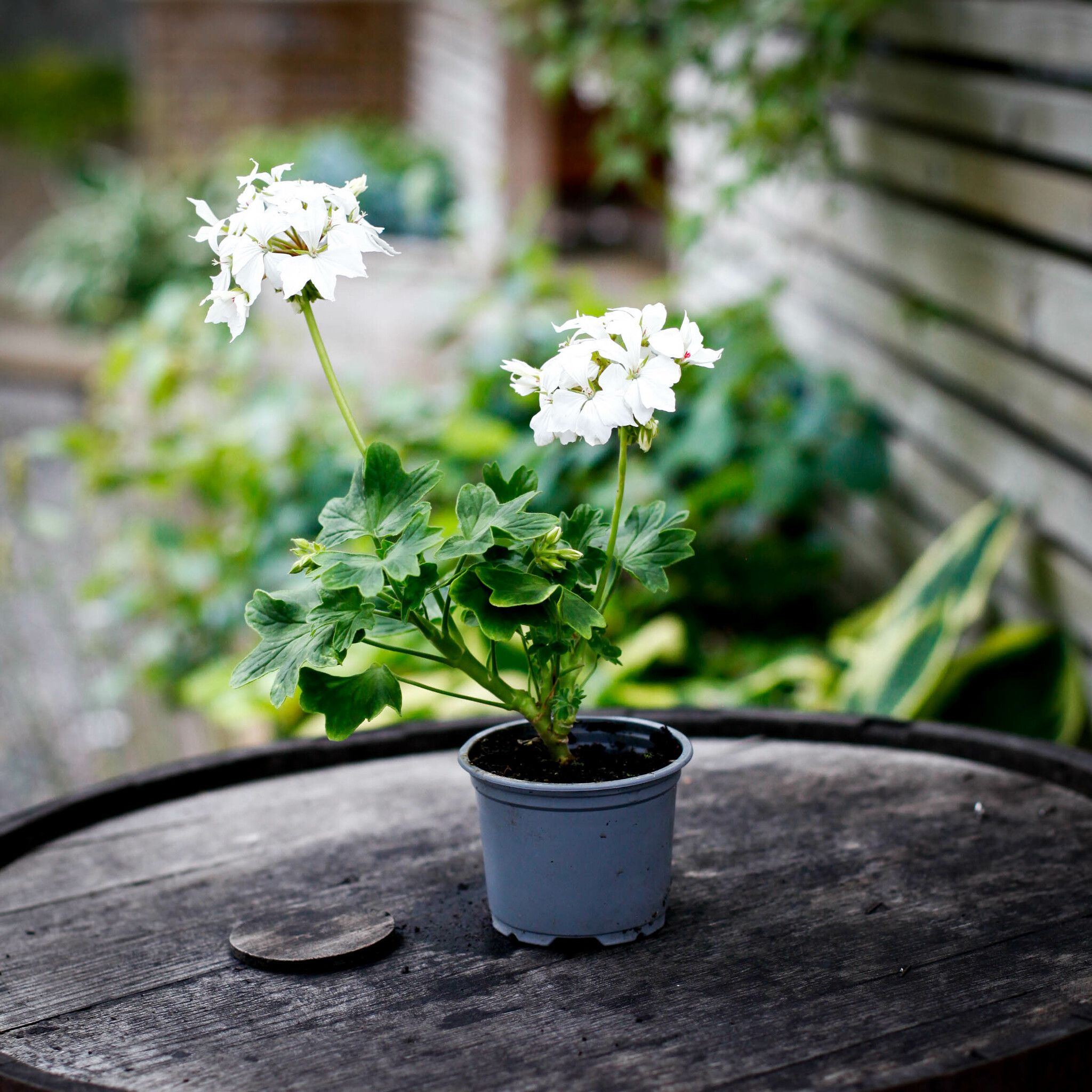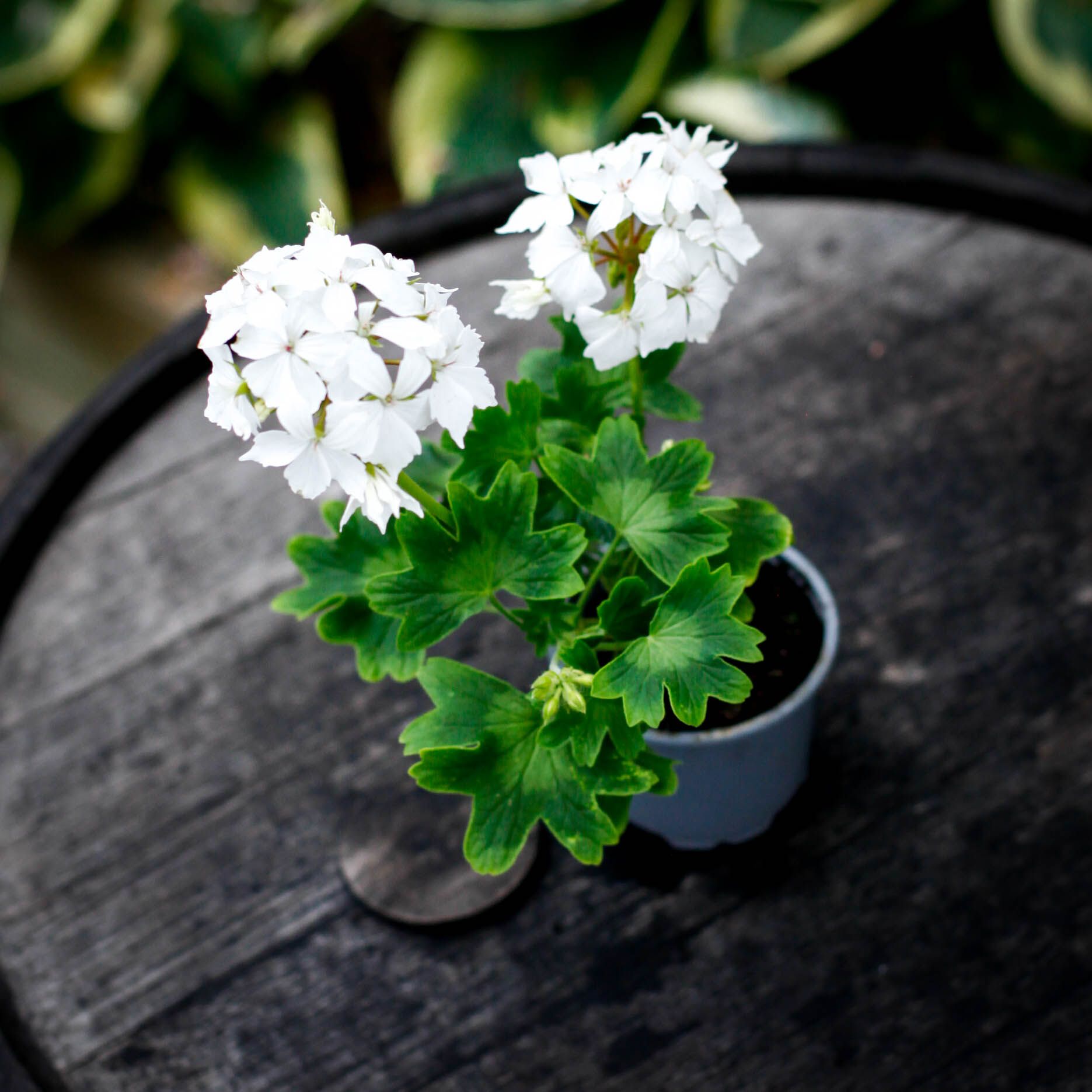 Upptäck Pelargonium 'Summer Twist', en unik stjärnpelargon med vita flikiga blommor och dekorativa blad. Köp nu på Klorofyllverket.se.