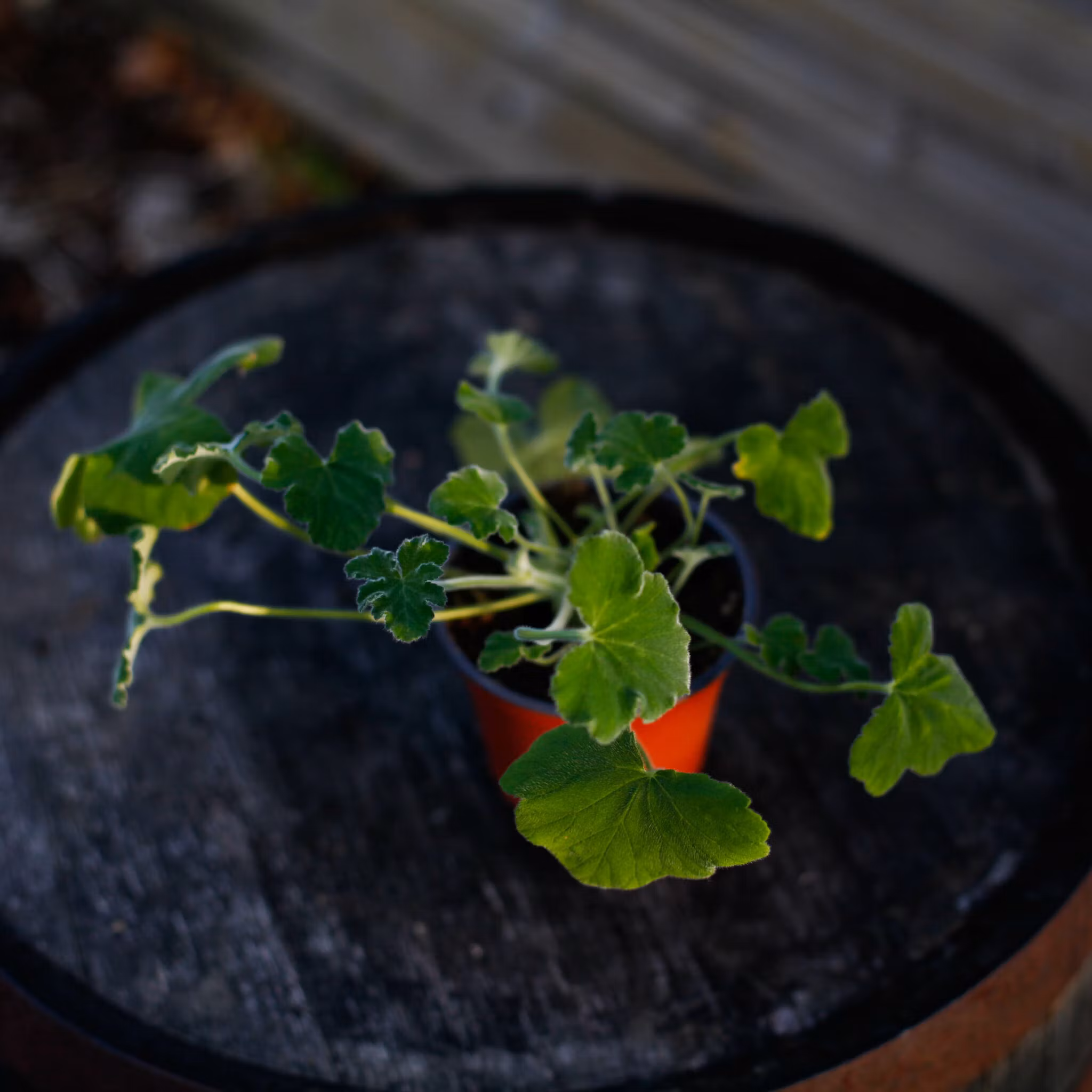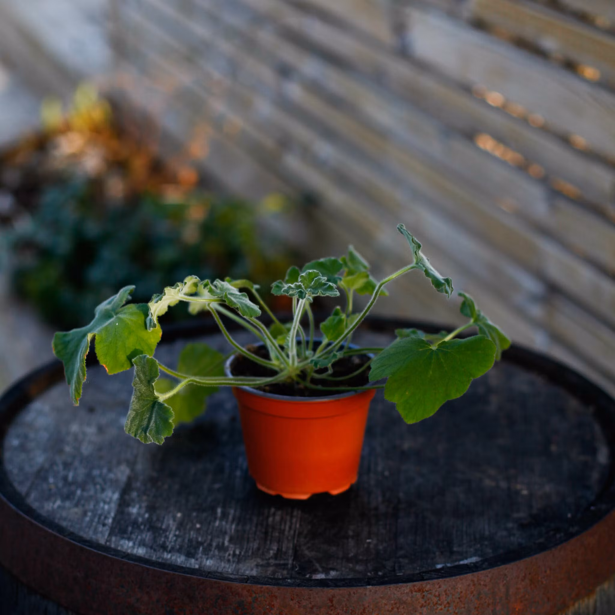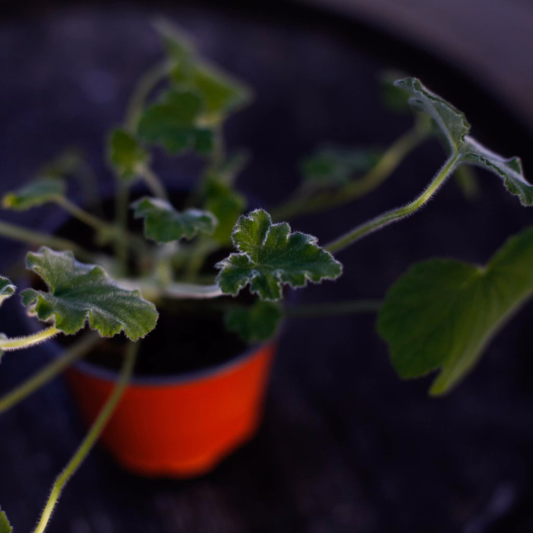 Ljus: Pelargonium tomentosum trivs bäst i halvskugga till lätt sol. Placera den gärna i ett ljust fönster eller på en skuggig plats utomhus för att undvika att bladen bränns av stark sol.