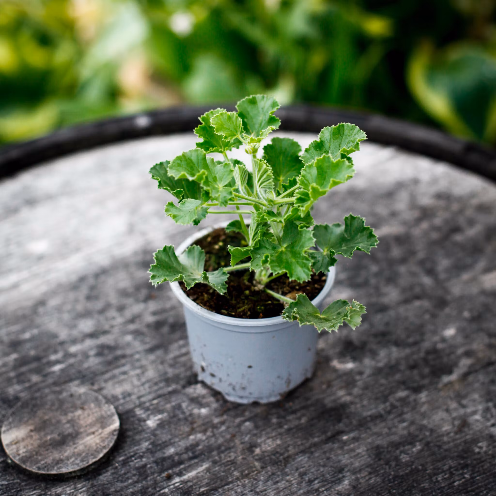 Pelargonium 'Torento' - Doftpelargon med Coca-Cola-doft, lilarosa blommor. Perfekt för fönsterbrädan eller balkongen. Beställ online hos Klorofyllverket.se.