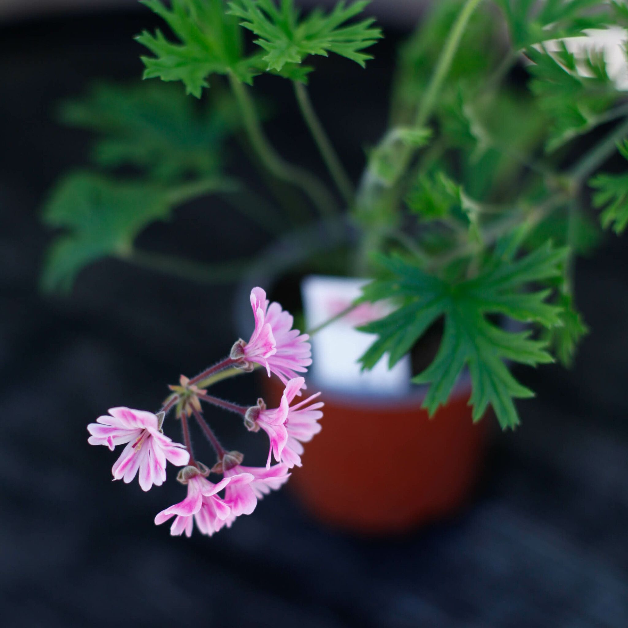Unik Pelargonium 'Diana' 8cm, med fransiga blommor. Perfekt flikiga blad, ljust läge & sparsam vattning. Skapa din drömträdgård med oss!
