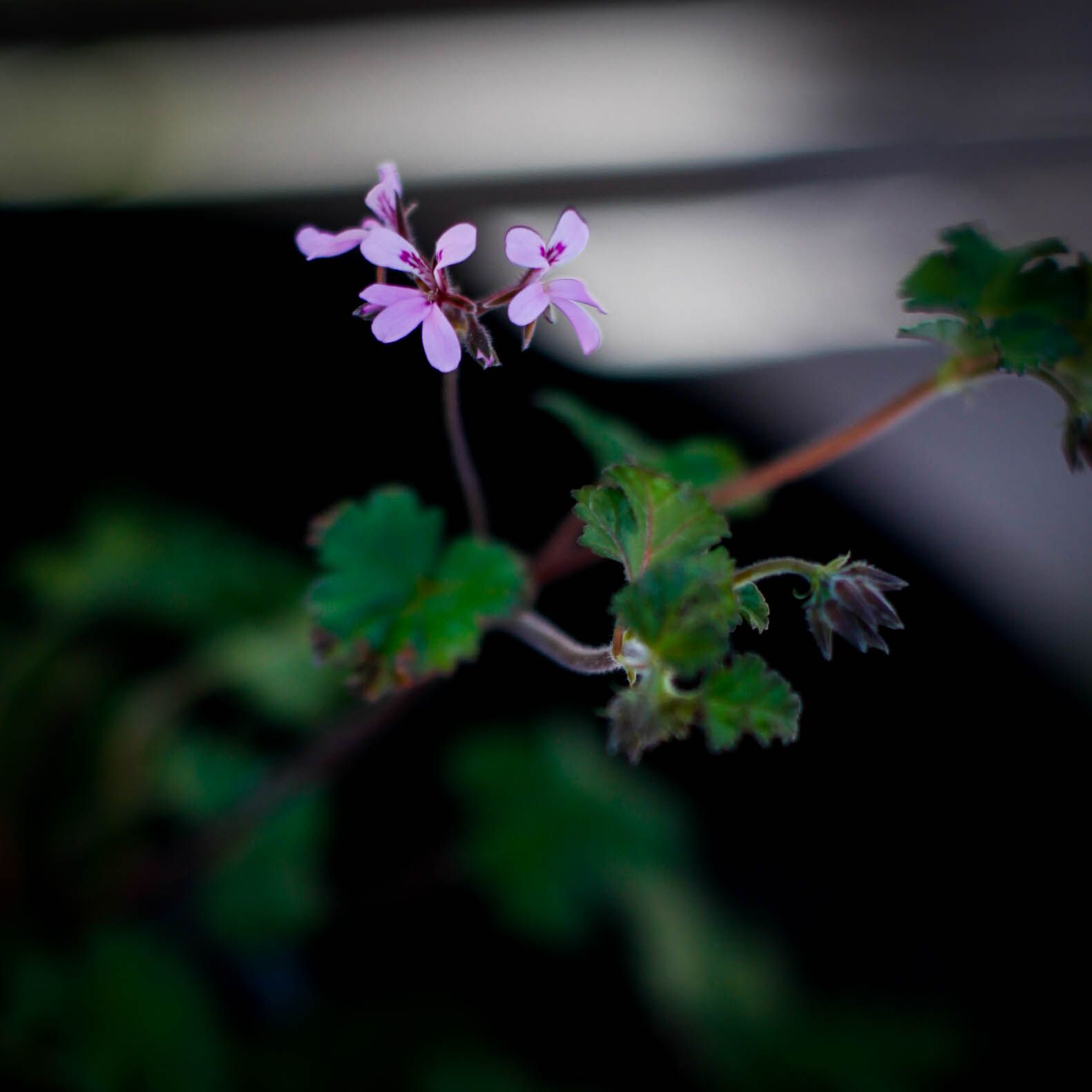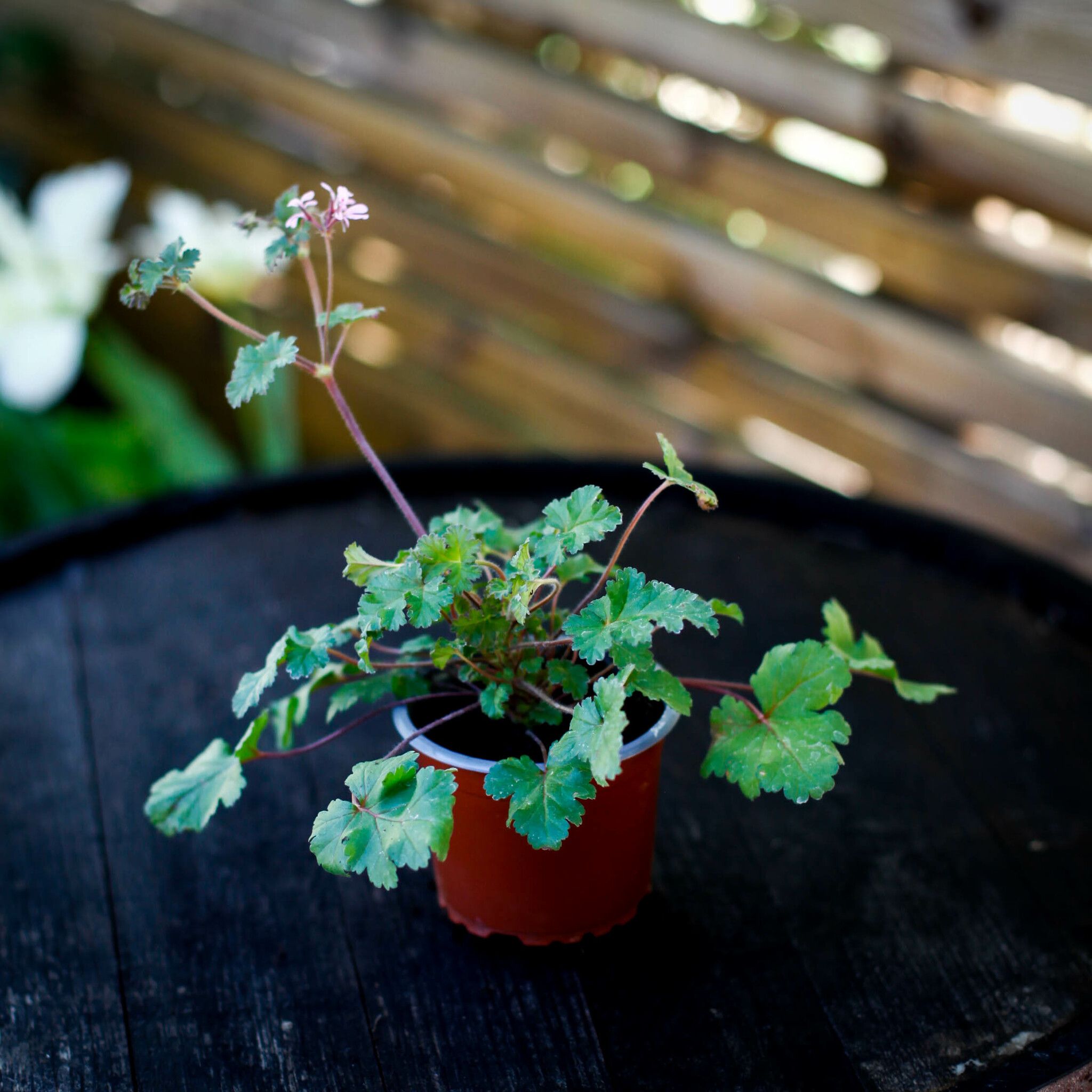 Pelargonium x Lavender Lass: En förtrollande primärhybrid med lavendellila blommor och lätt behårade blad, perfekt för fönsterbrädan. Skönhet i enkelhet.