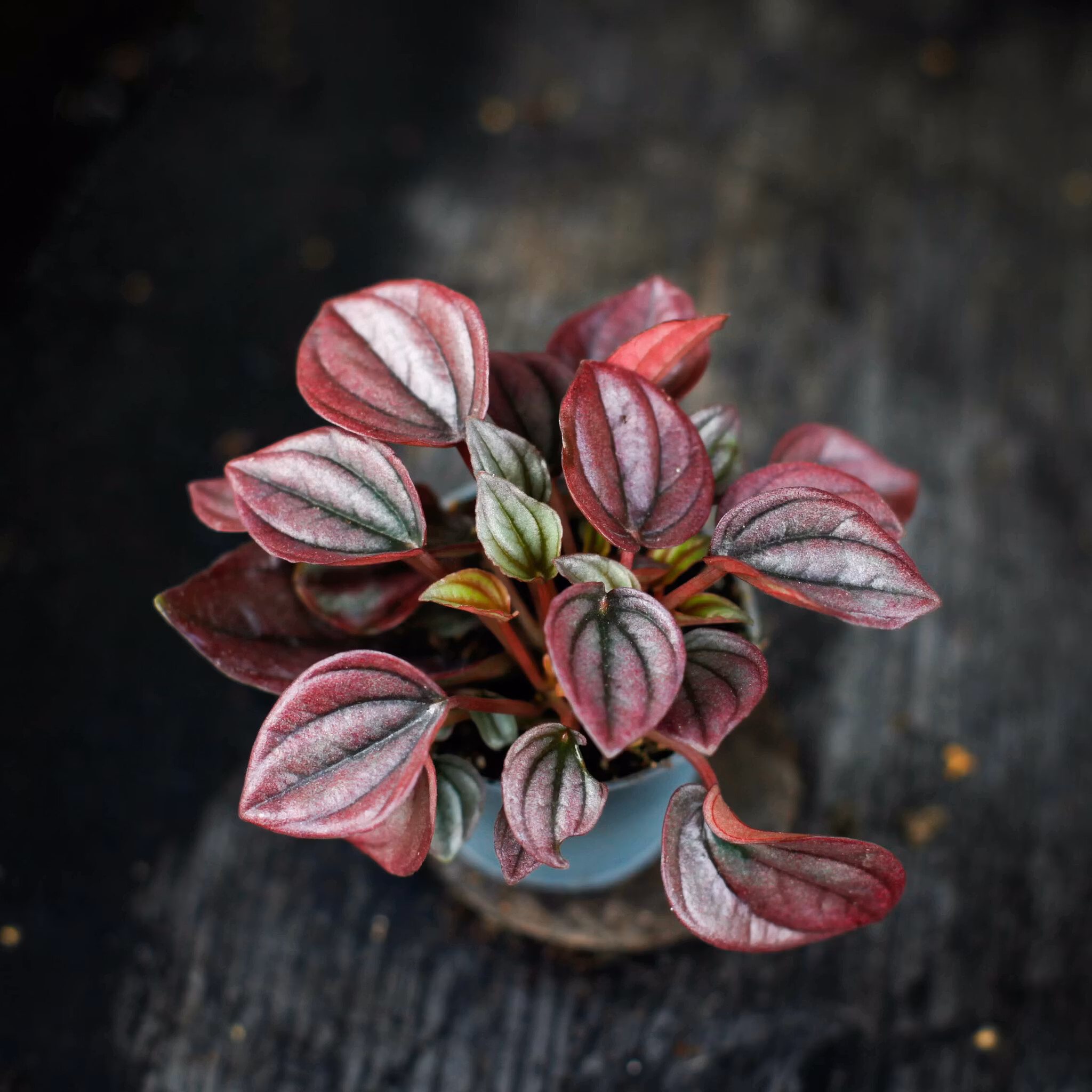 Peperomia 'Cayenne' är en dekorativ växt som kännetecknas av sina glänsande mörkgröna blad och rödaktiga stjälkar. Den växer långsamt och kompakt, vilket gör den till ett utmärkt val för mindre utrymmen och som en del av en växtsamling.