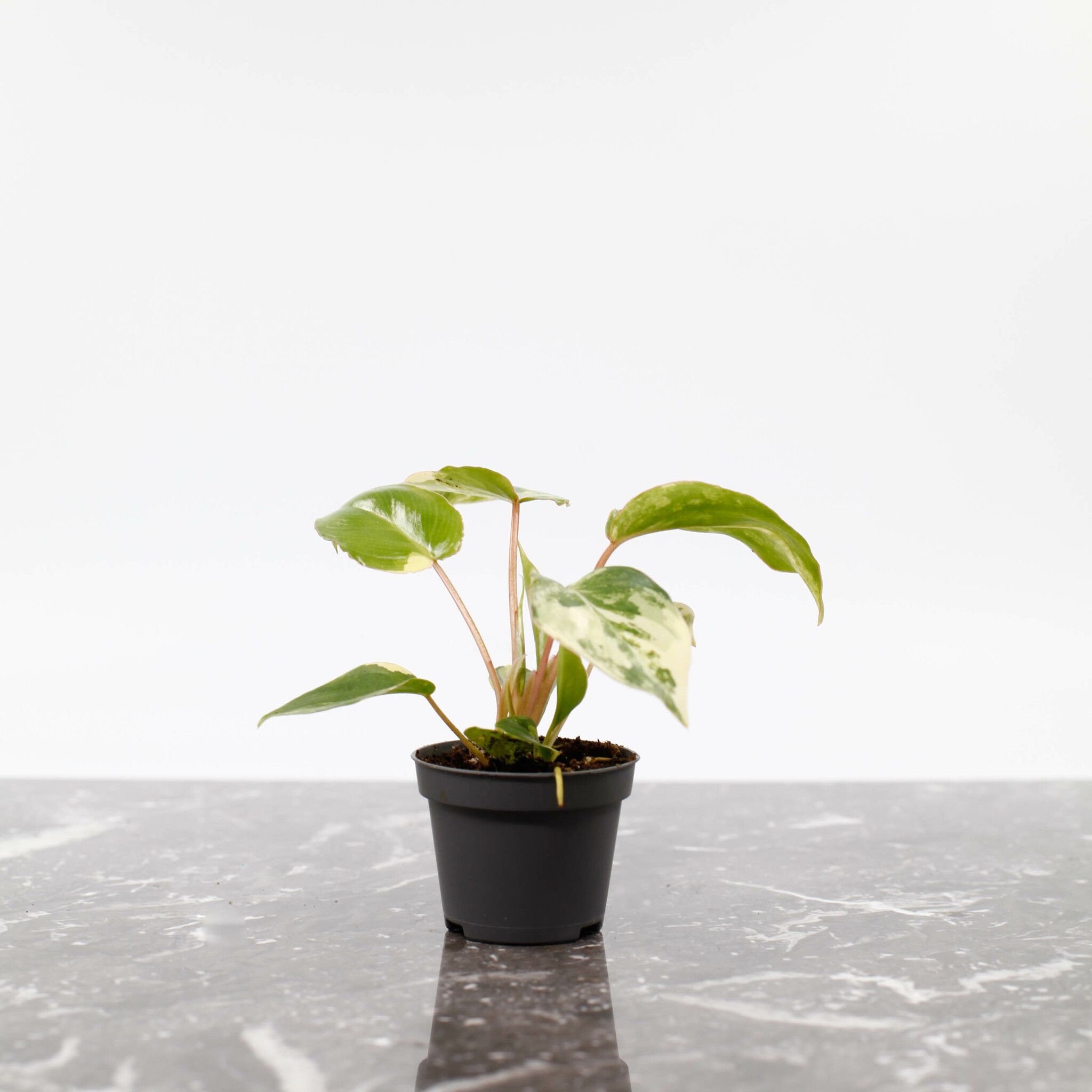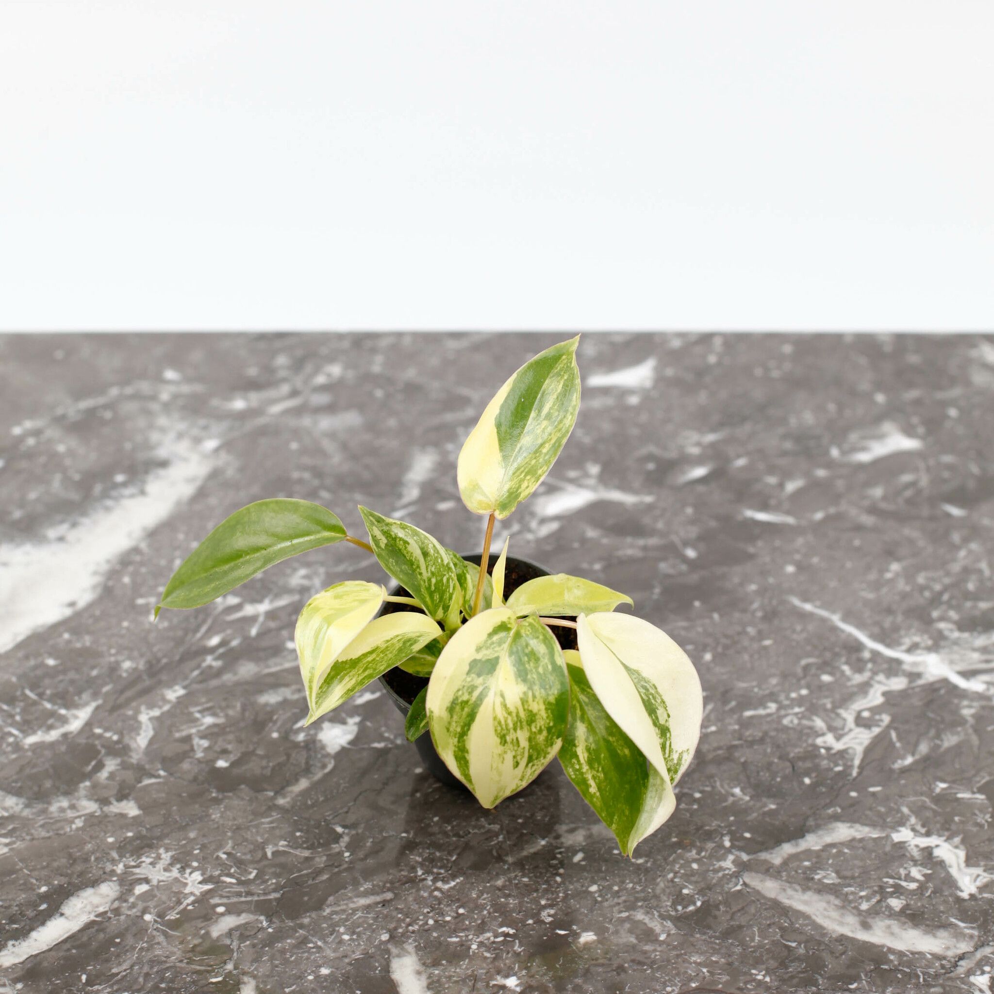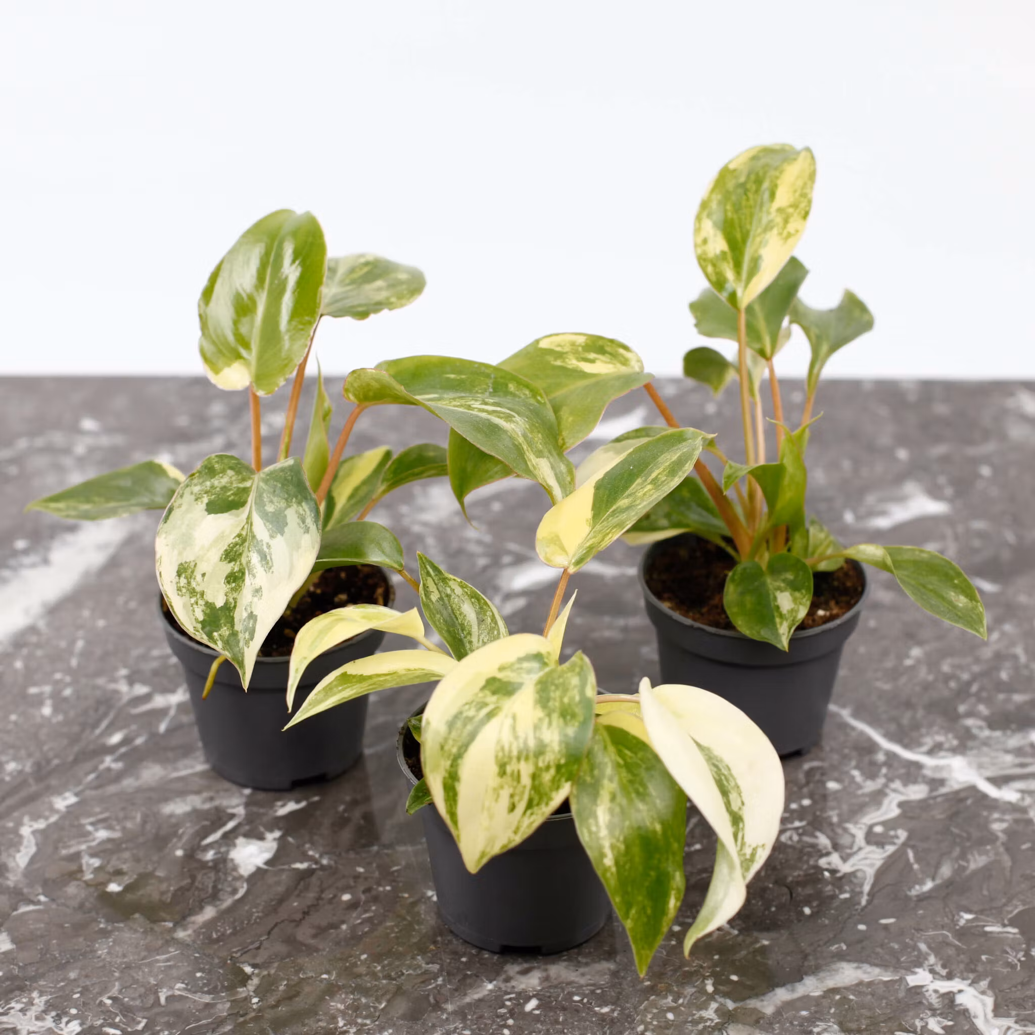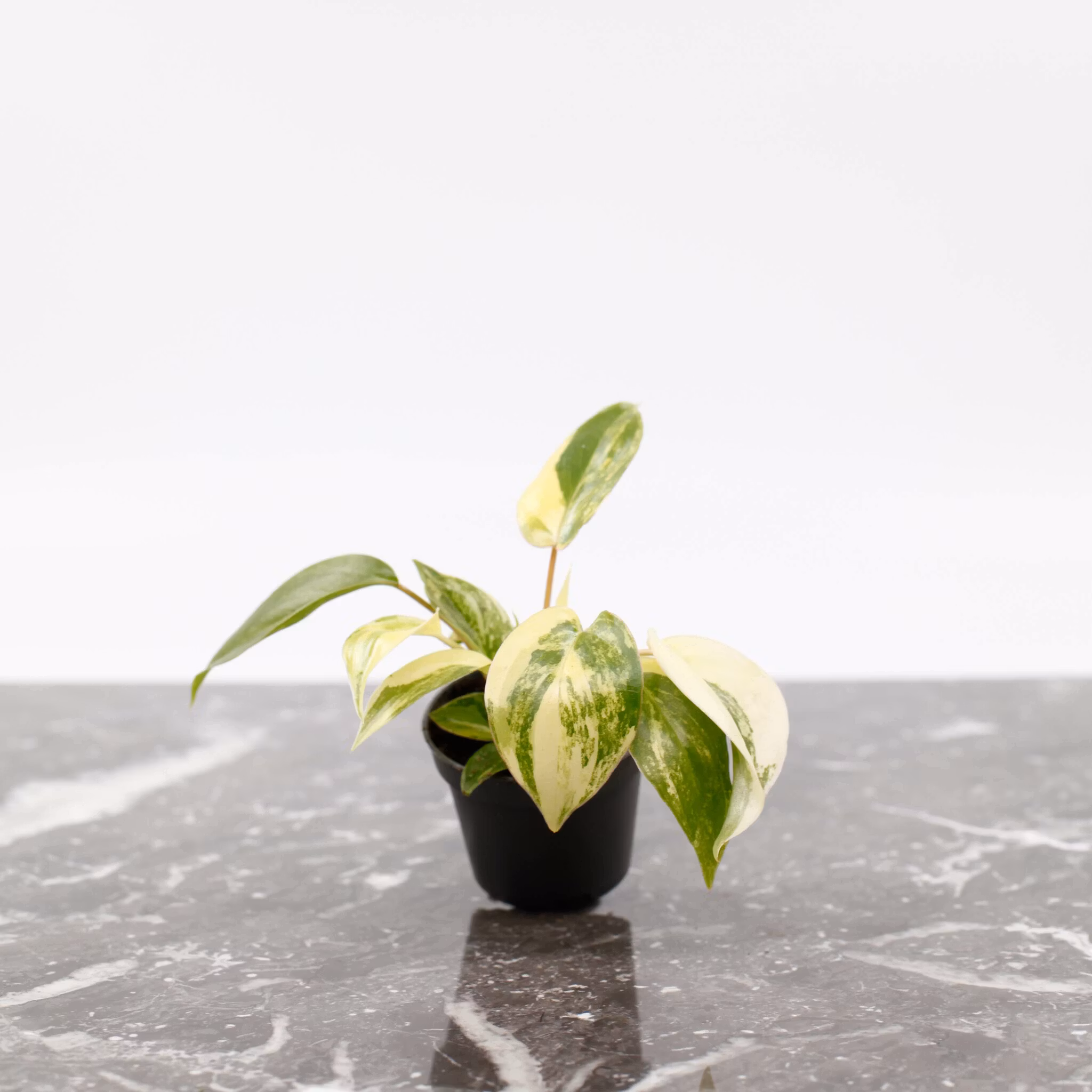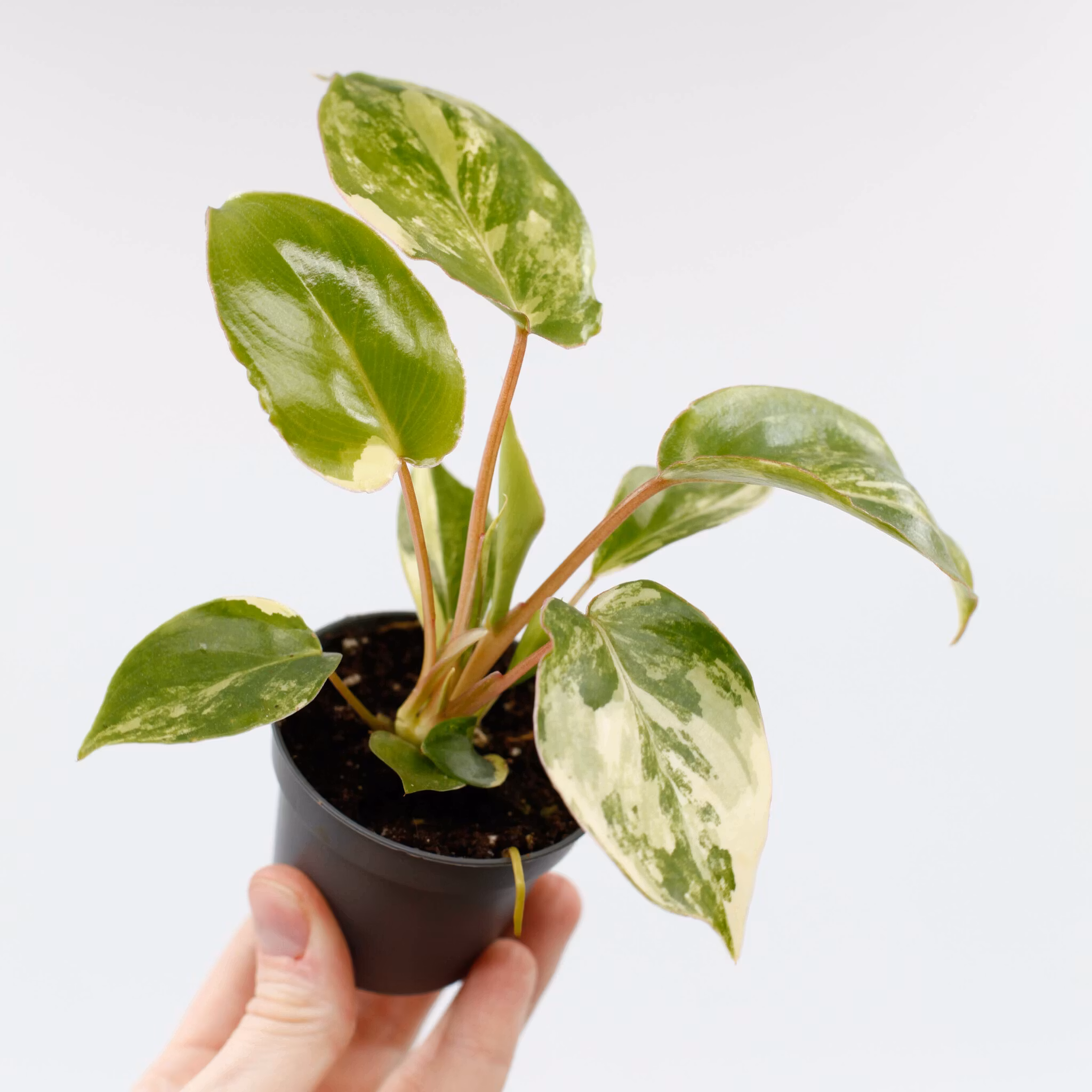 Exotisk Philodendron 'Burle Marx Variegata'. 6 cm, Perfekt för indirekt ljus. Skapa en grön oas hemma med denna sällsynta pärla!