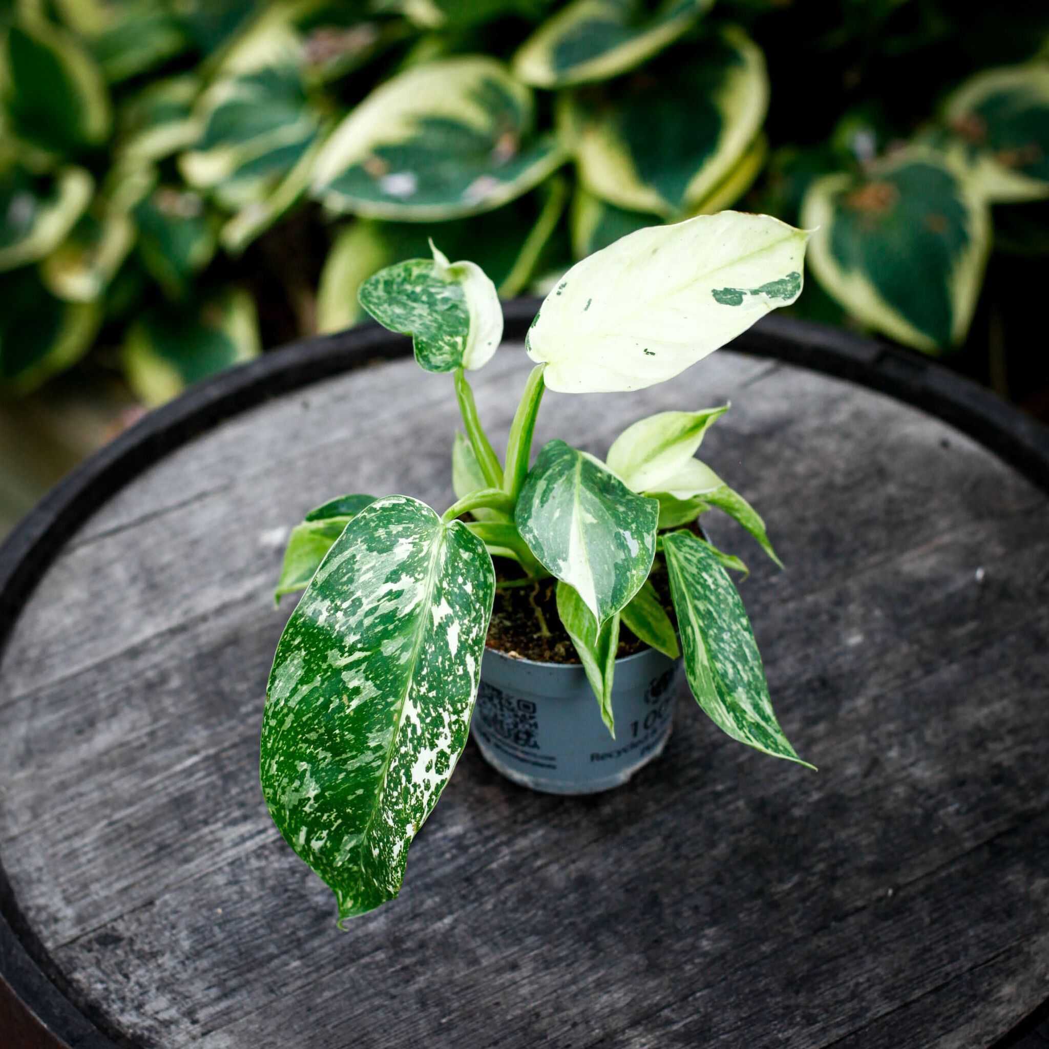 Philodendron 'Jose Buono' är en spektakulär och sällsynt växt som tillhör Philodendron-släktet och är känd för sina vackra, mönstrade blad. Med sin unika kombination av gröna, vita och ibland gulaktiga färger på bladen, är denna växt en perfekt inredningsdetalj för den som vill ha något iögonfallande och stilfullt .
