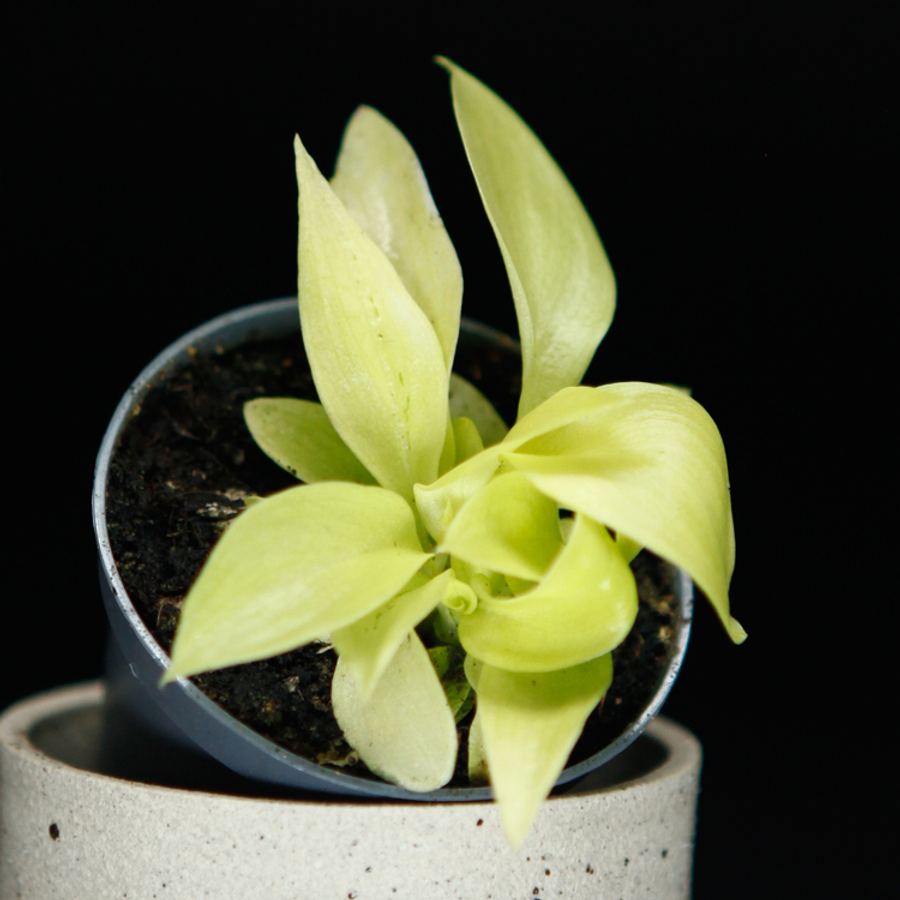 Philodendron 'Malay Gold' är en hybridväxt som är känd för sina imponerande blad och sin förmåga att ge ett tropiskt utseende i inomhusmiljöer. Dess vackra gulaktiga blad gör den till en favorit bland växtälskare som letar efter en ovanlig växt med livfull färg och lättskött karaktär.