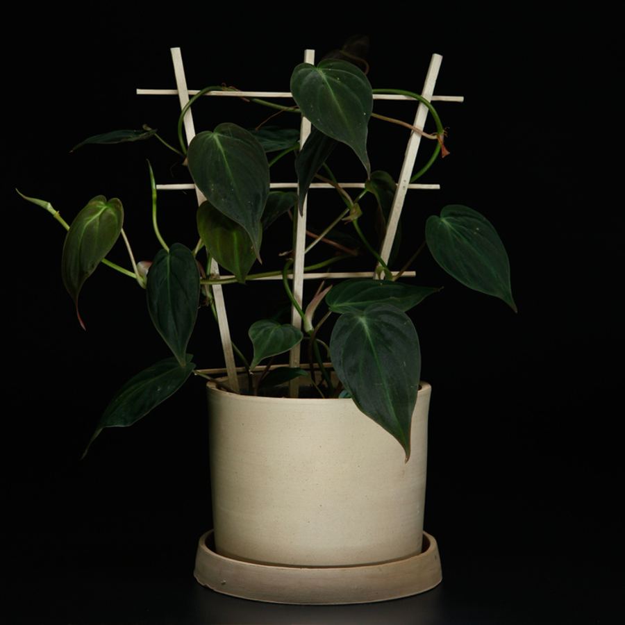Philodendron micans är en epifyt, vilket betyder att den växer på andra växter i naturen snarare än i marken. På en spaljé får den möjlighet att visa sitt naturliga klätterbeteende, vilket ger ett tropiskt och exotiskt utseende. Genom att ge den rätt förutsättningar, som ett bra stöd och korrekt skötsel, kommer din Philodendron micans att frodas och bli en grön prydnad i ditt hem.