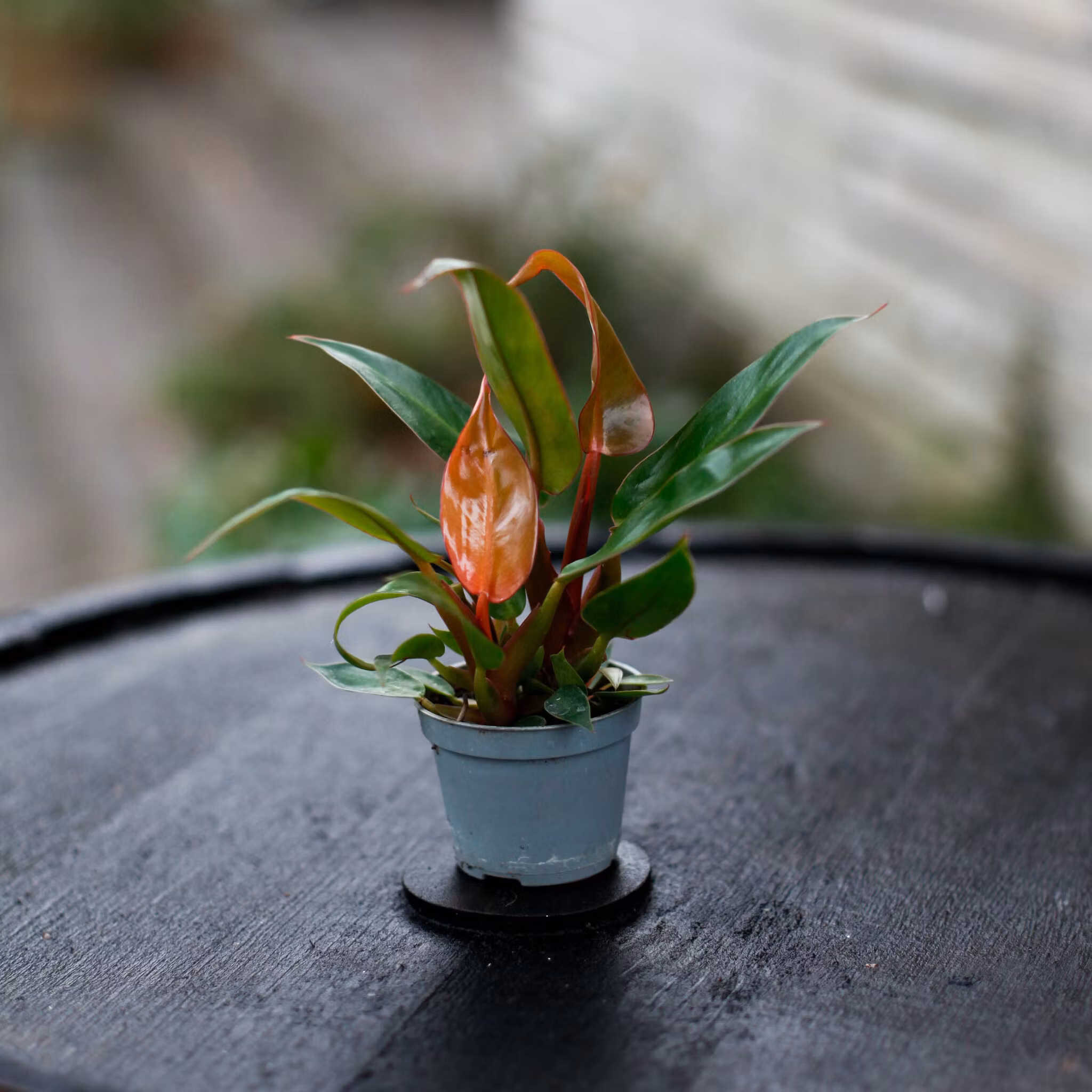 Philodendron 'Prince Of Orange' 6cm – En ovanlig skönhet med orange och gula blad. Perfekt för ljusa rum utan direkt solljus. Beställ nu! 🌿
