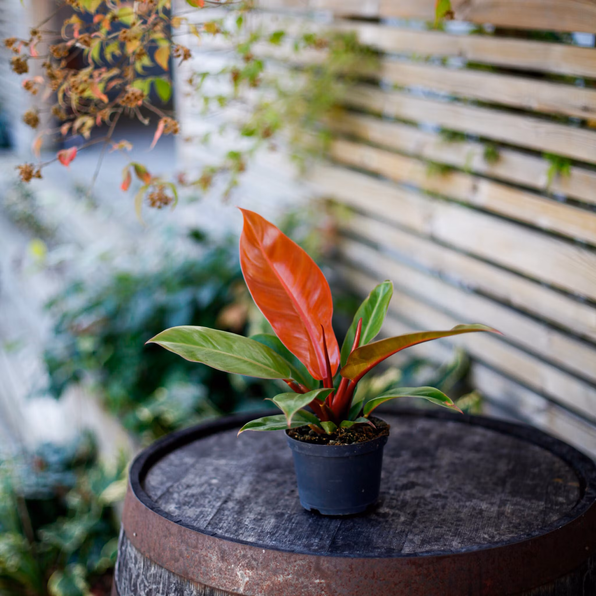 Philodendron 'Prince of Orange' 12cm, är en färgstark och lättskött växt som lyser upp ditt hem med sina spektakulära, orangea blad. Perfekt för inomhusdjungeln