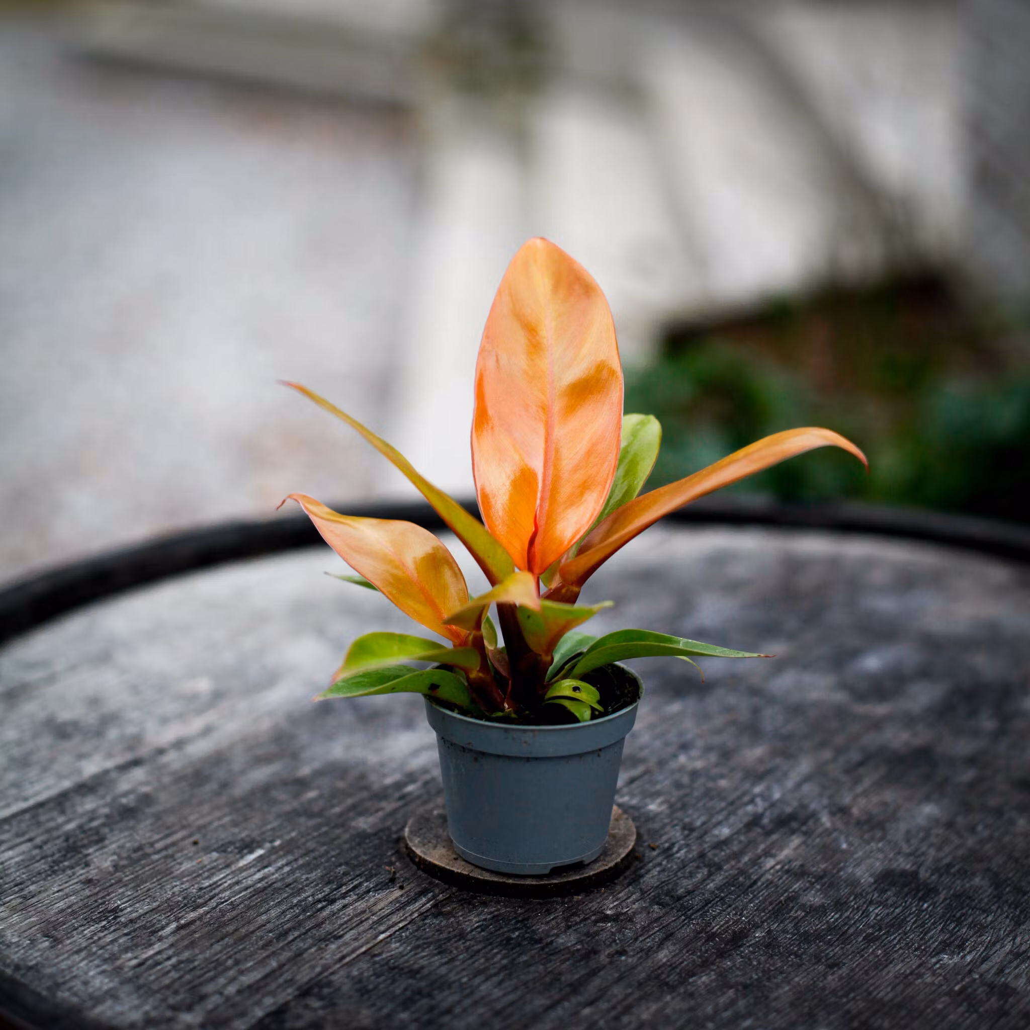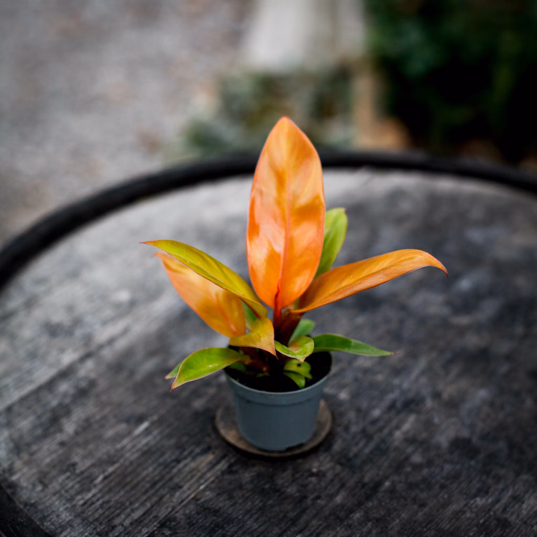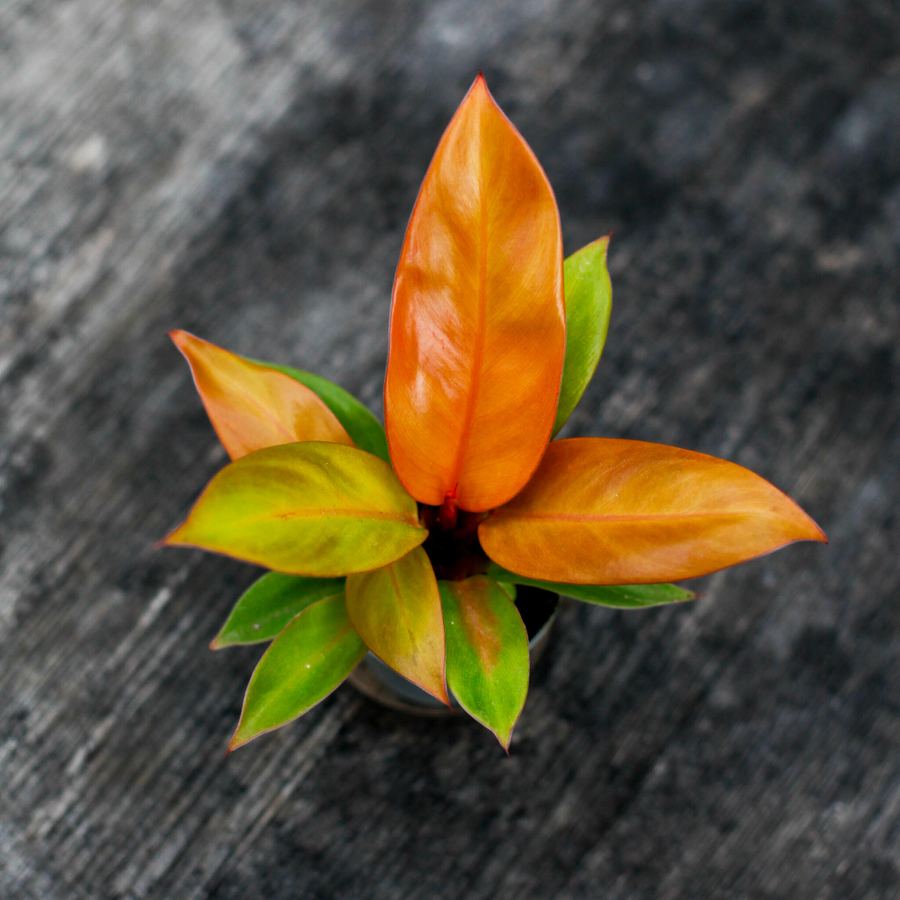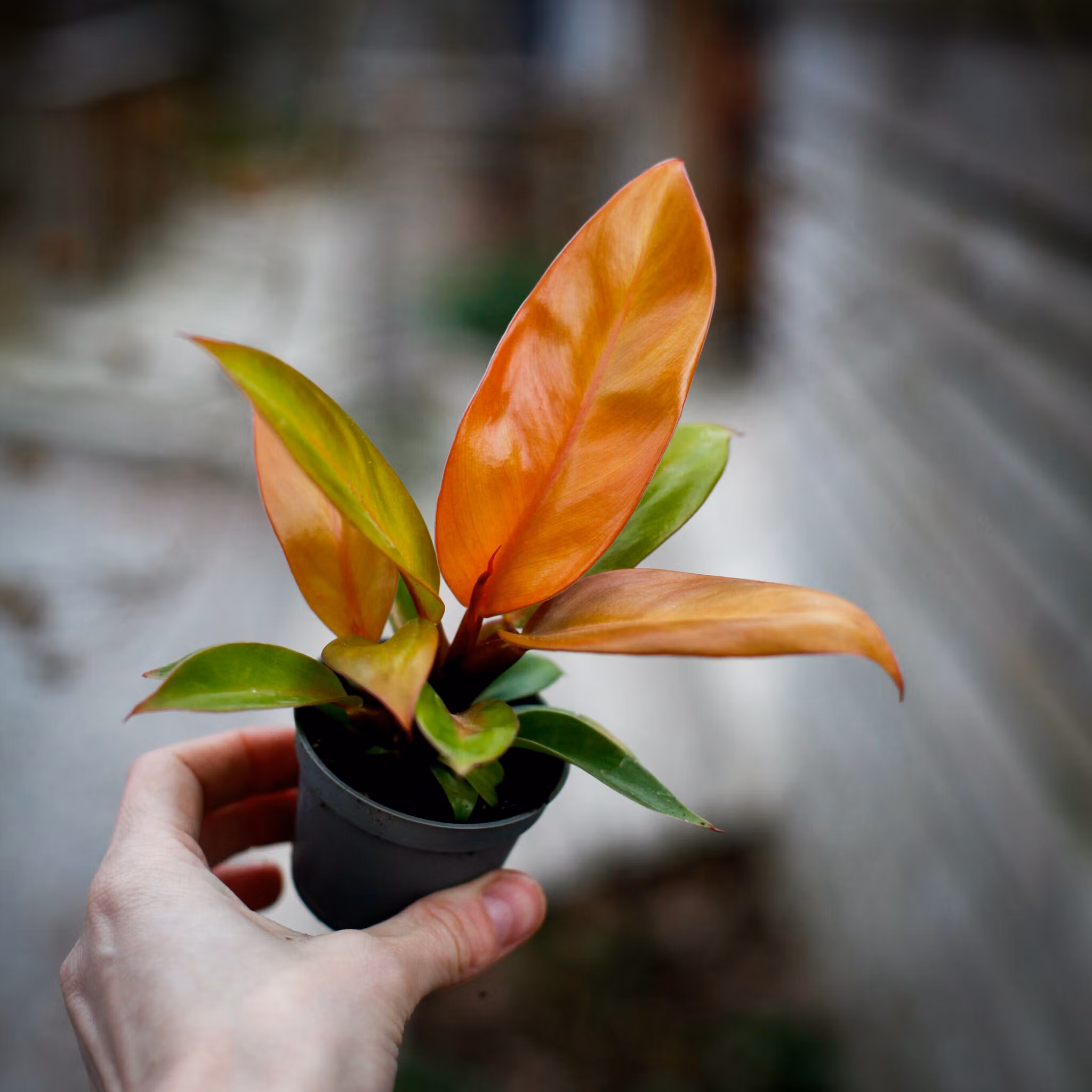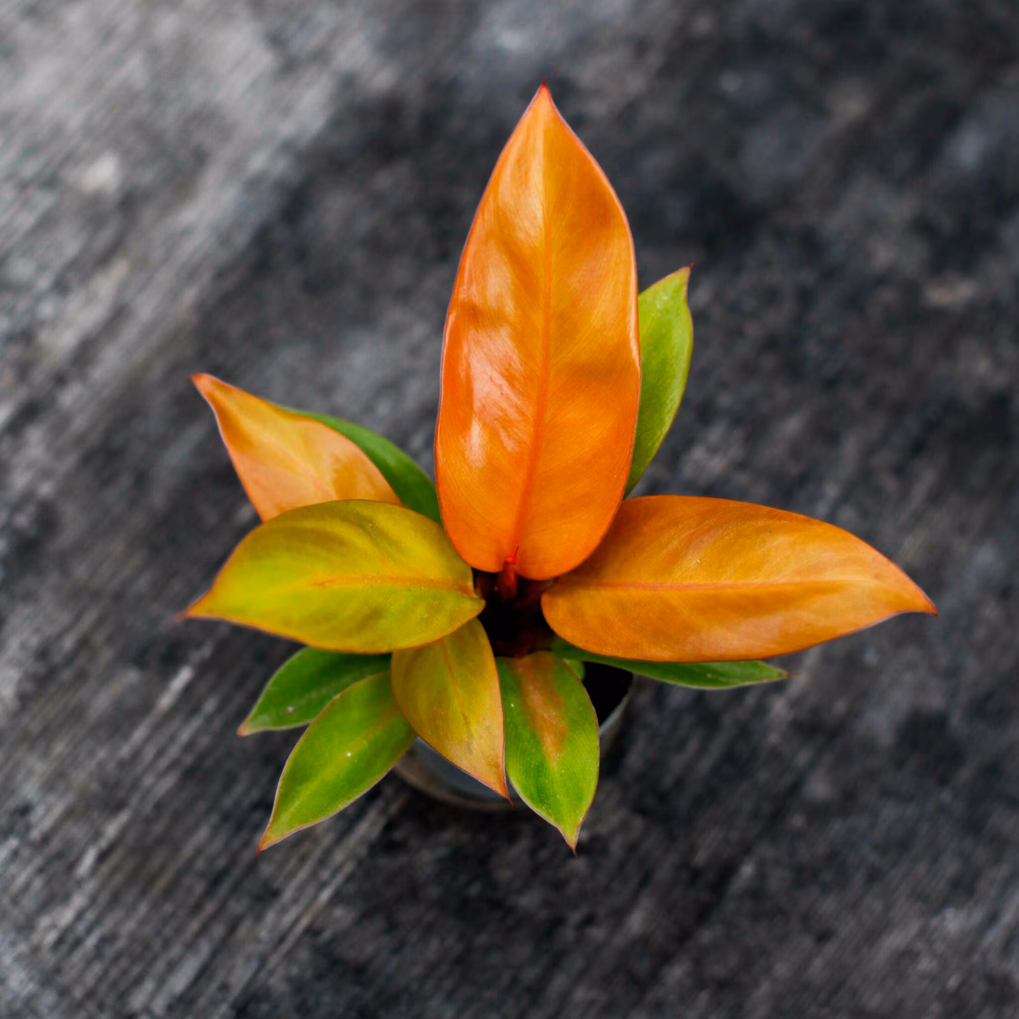 Philodendron 'Prince Of Orange' 6 cm – En ovanlig skönhet med orange och gula blad. Perfekt för ljusa rum utan direkt solljus. Beställ nu! 🌿