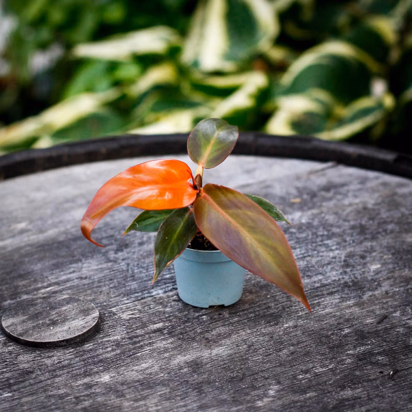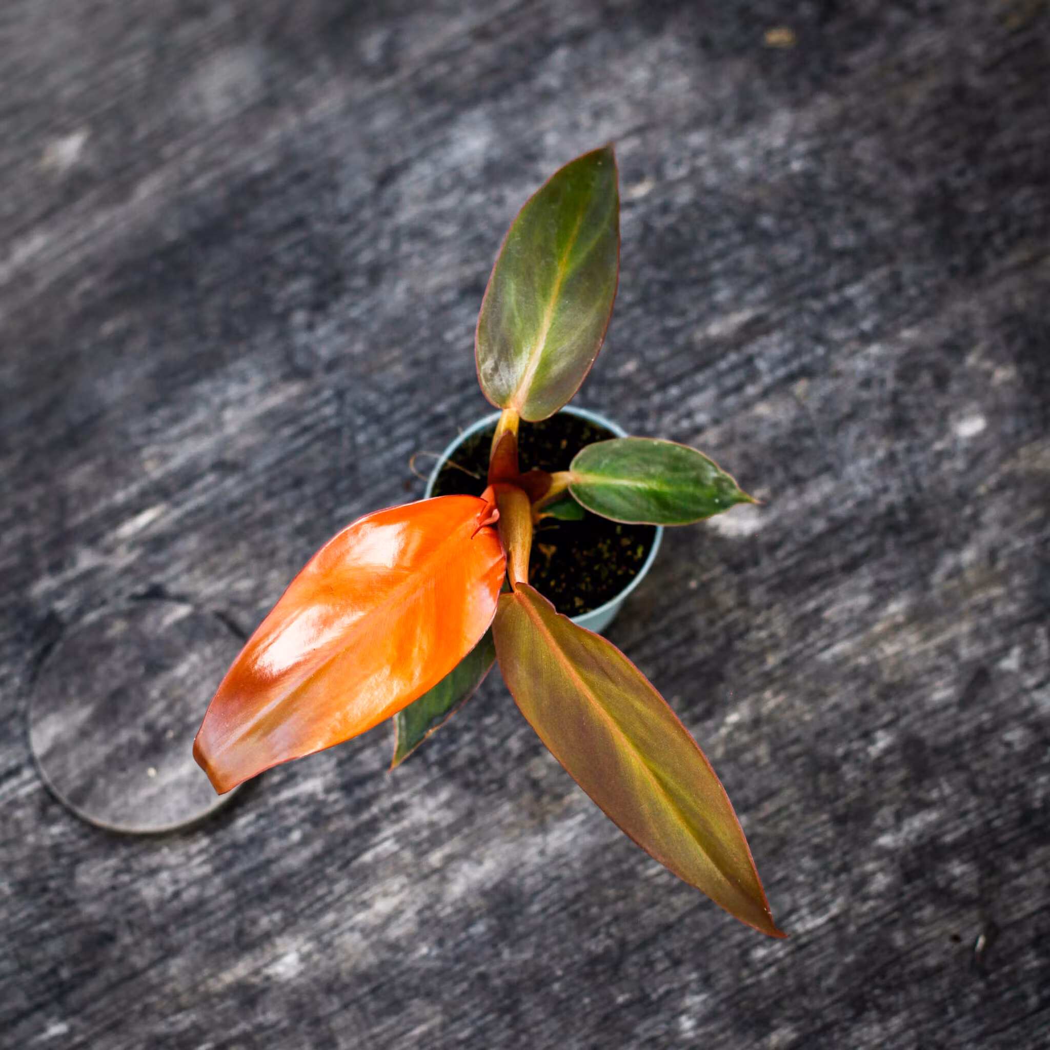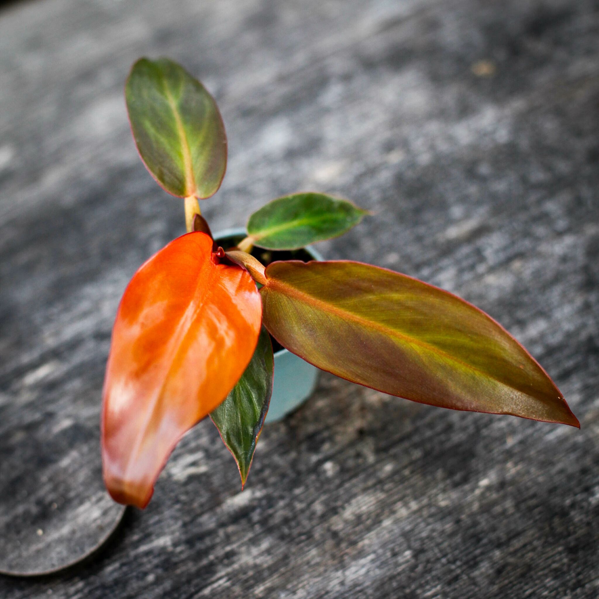 Philodendron 'Red Sun' 6cm är en klättrande växt med blad som skiftar från rött till grönt. Perfekt för färgstarka Aroids-älskare! Placera i ljus-halvskugga.