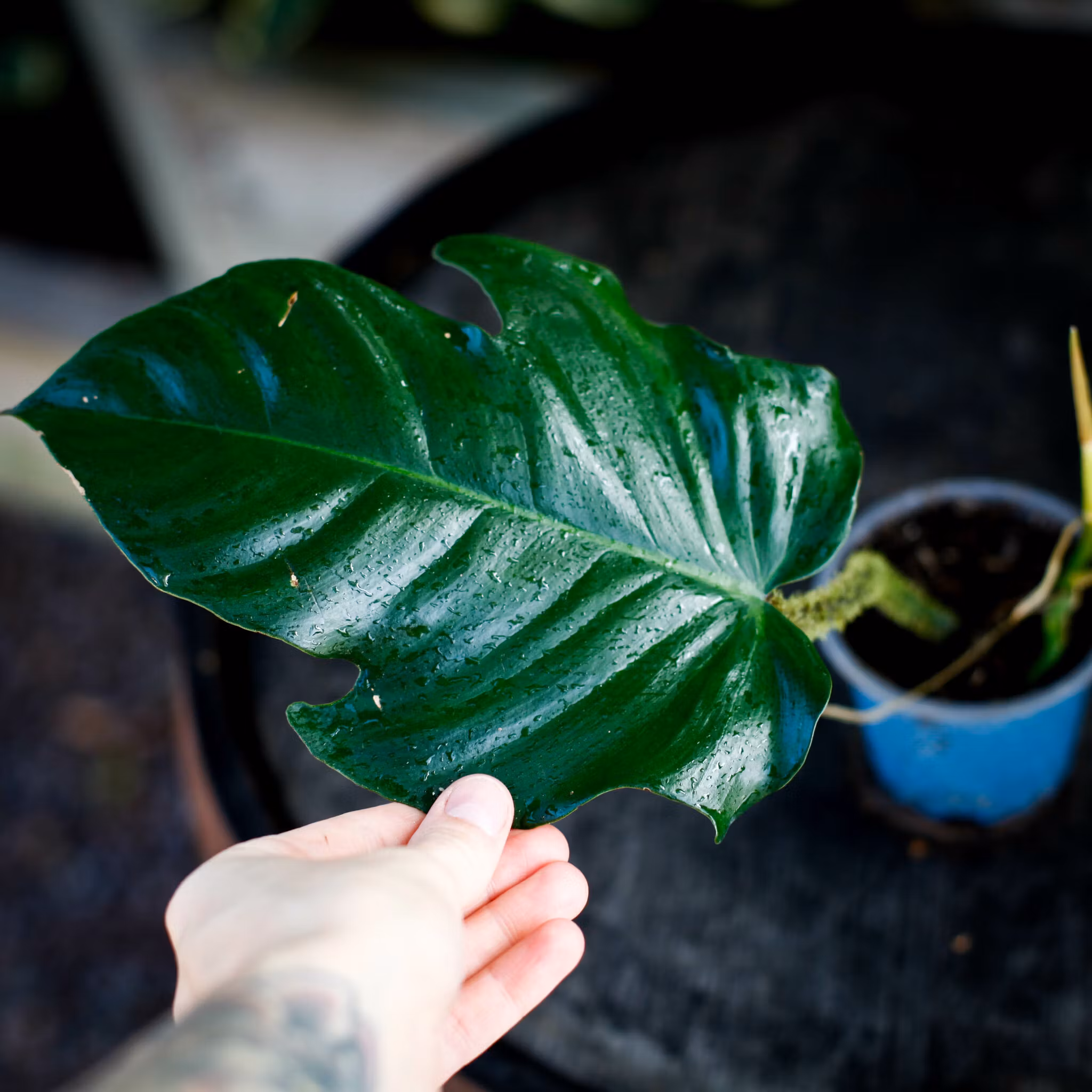 Philodendron squamiferum nr.2 - Mossranka Otroligt cool växt med röda ludna stjälkar och flikiga blad