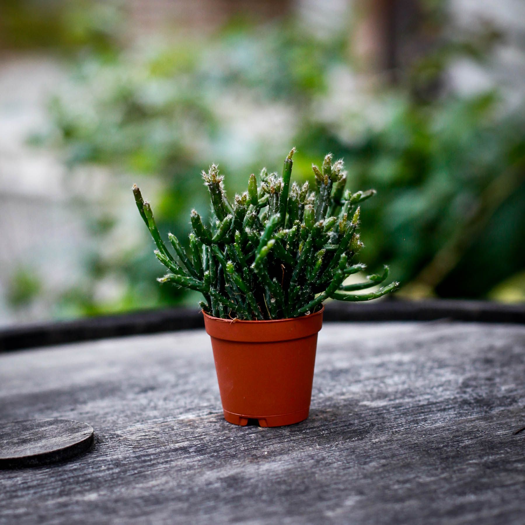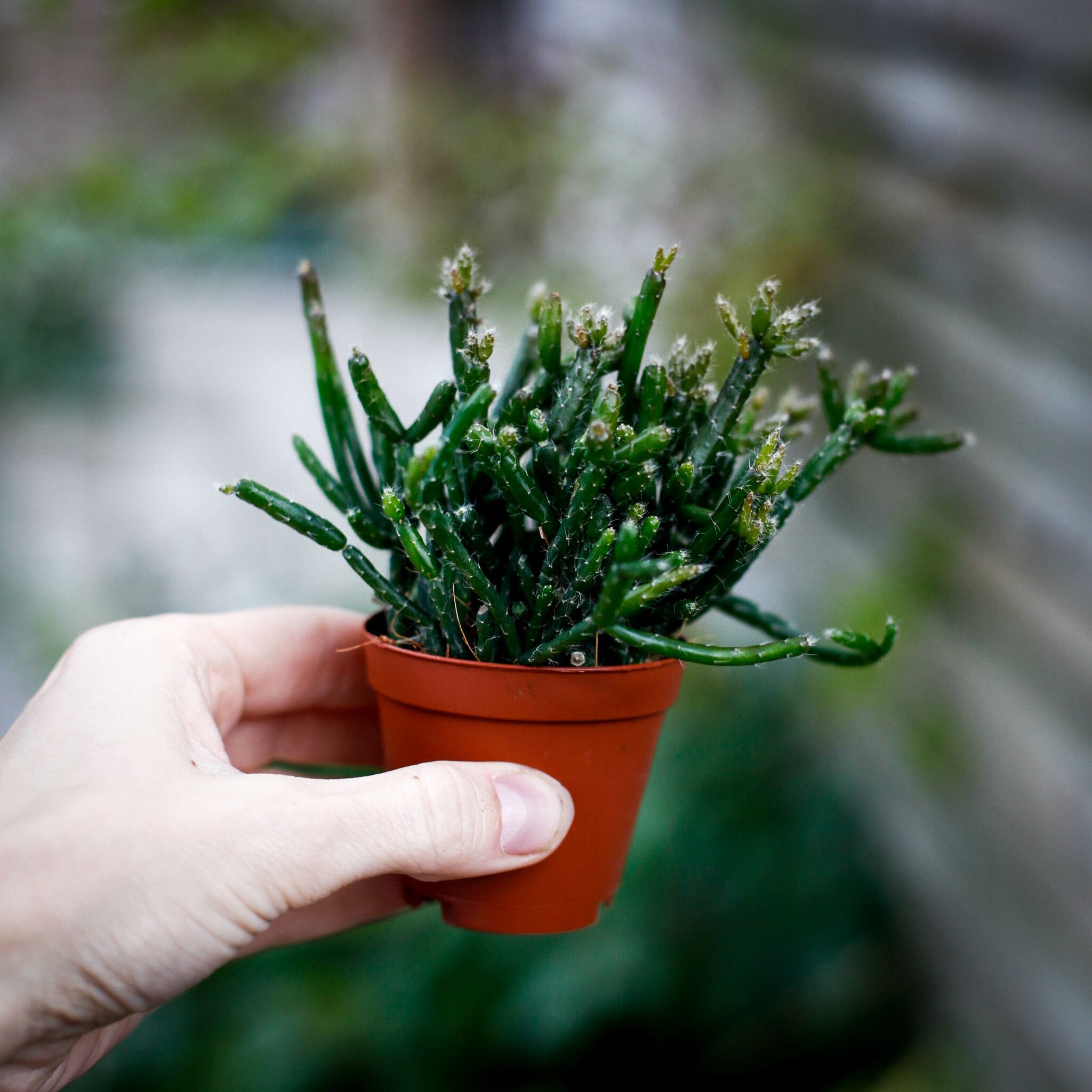 Rhipsalis burchellii, även känd som mistelkaktus, är en epifytisk kaktus idealisk för inomhusmiljöer. Perfekt i ampel med sina hängande, gröna skott.