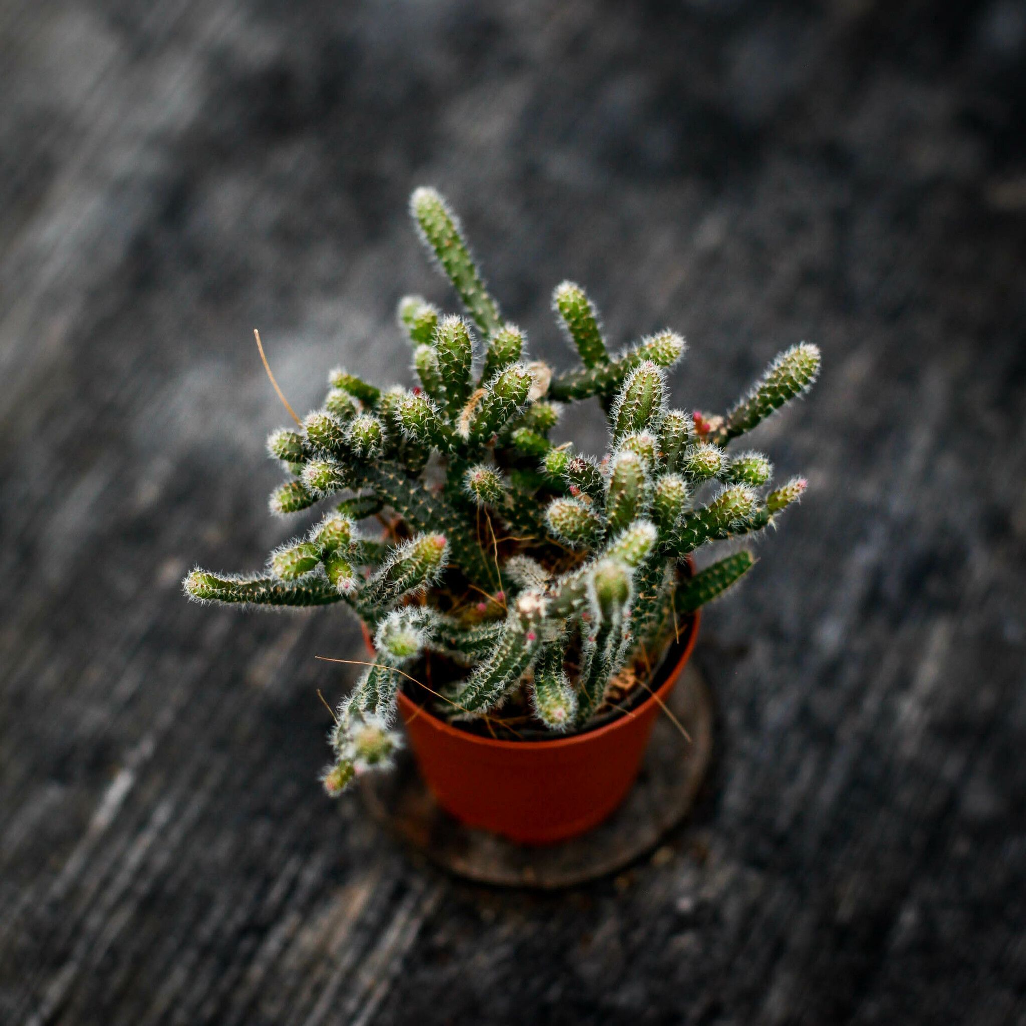 Rhipsalis 'Horrida' - en unik korallkaktus med buskigt utseende och lättskötta egenskaper. Perfekt för tropisk charm i hemmet. Köp hos Klorofyllverket.se.