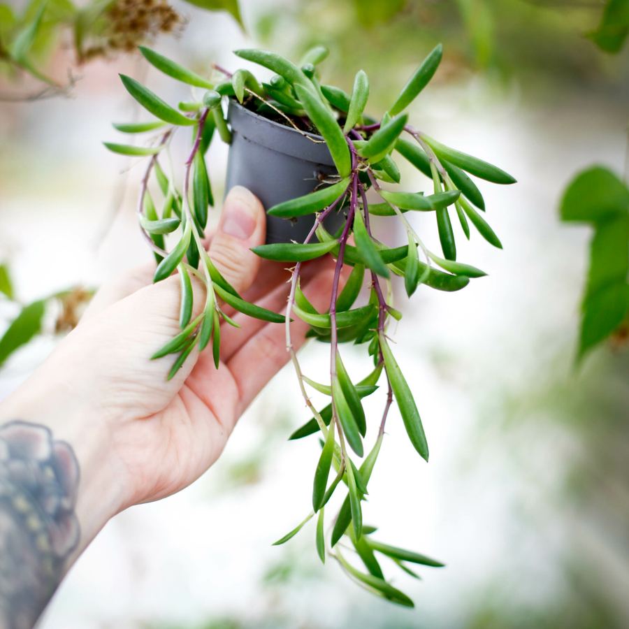 Senecio 'Purple Flush' är ett lättskött och dekorativt tillskott till alla växtsamlingar, med sina unika purpurfärgade stjälkar och suckulenta blad. Den passar utmärkt som en del av ett suckulentarrangemang eller som en solitär i en stilren kruka.