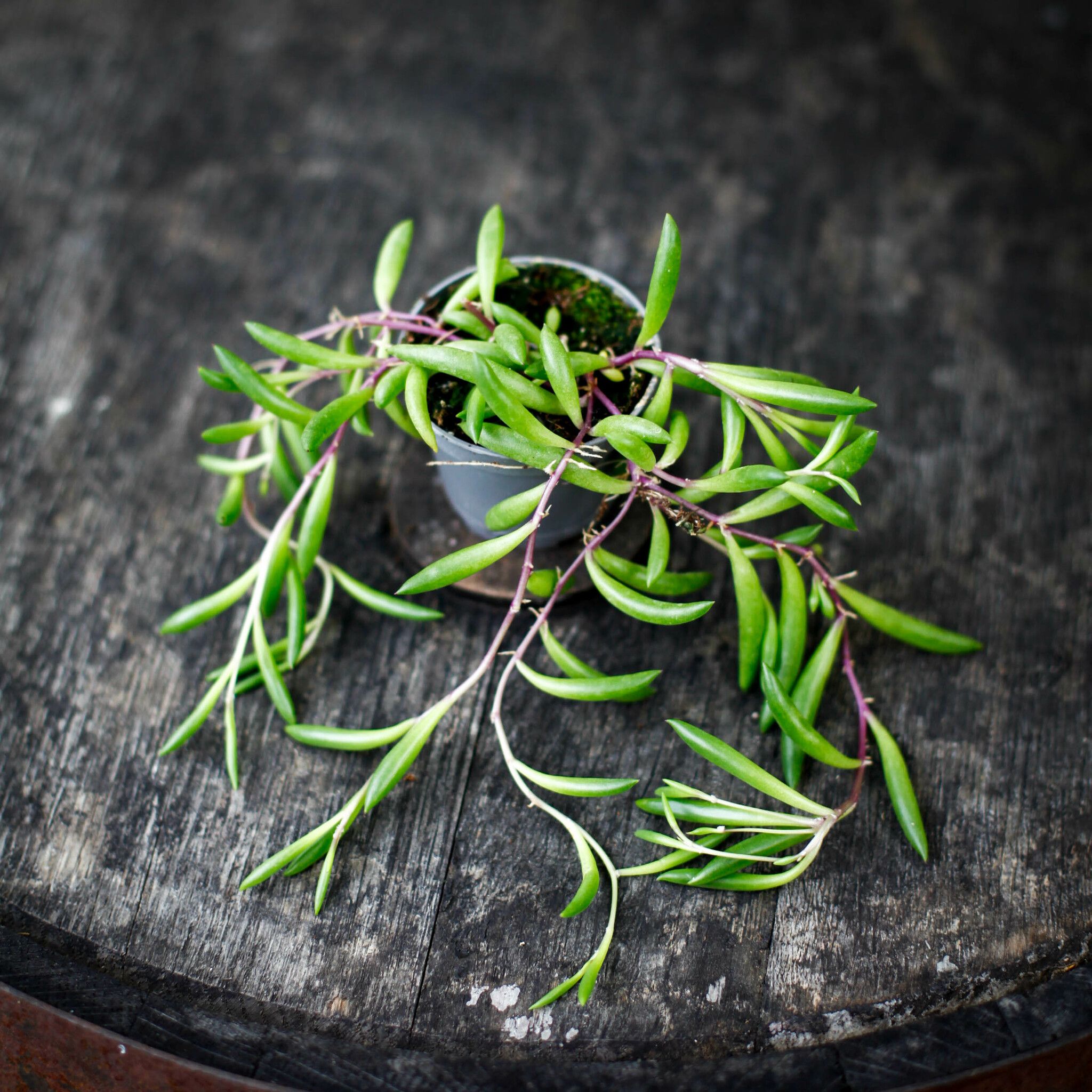 Senecio 'Purple Flush' är ett lättskött och dekorativt tillskott till alla växtsamlingar, med sina unika purpurfärgade stjälkar och suckulenta blad. Den passar utmärkt som en del av ett suckulentarrangemang eller som en solitär i en stilren kruka.