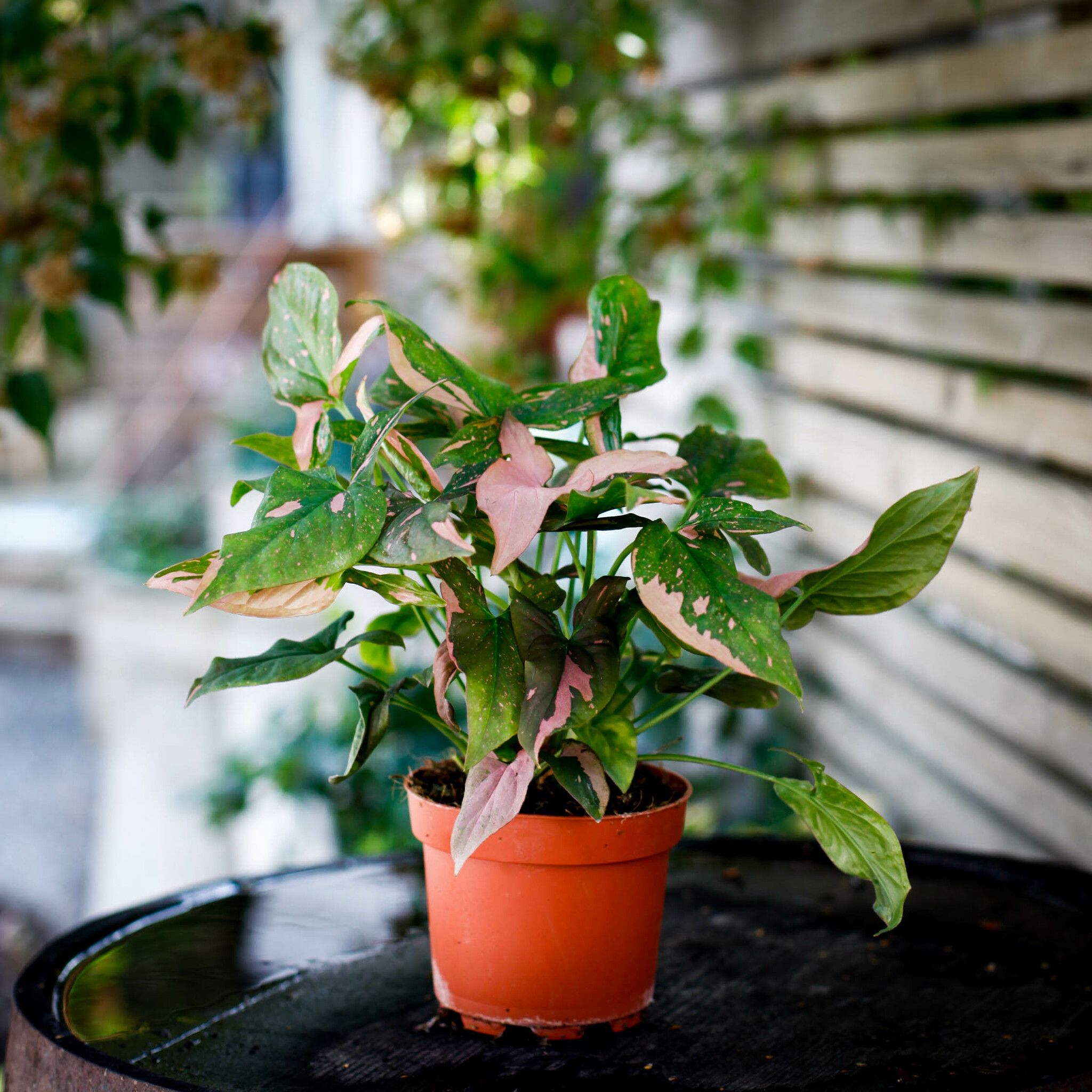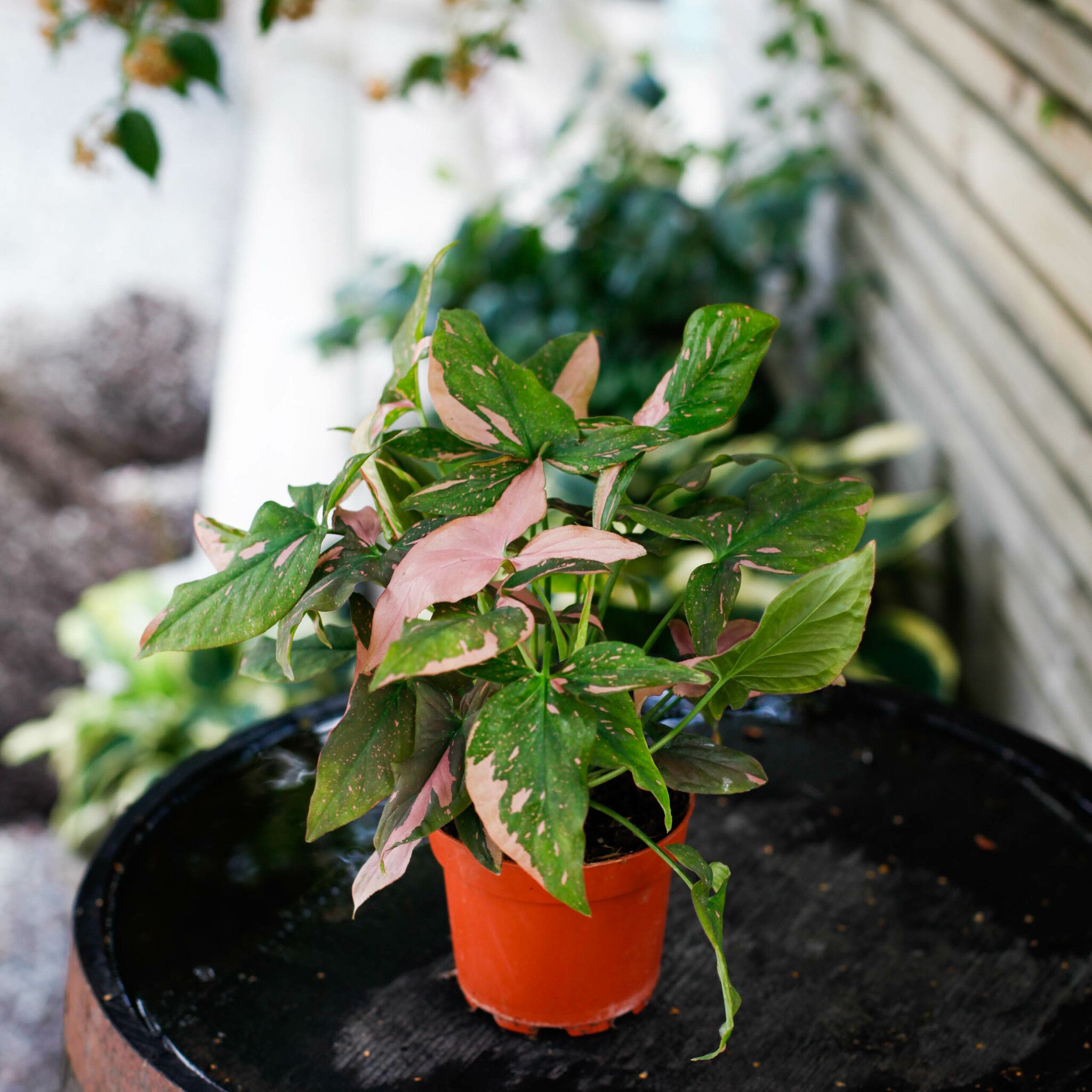 Syngonium 'Pink Splash' är en iögonfallande växt känd för sina dekorativa blad som är en vacker blandning av grönt, rosa och vitt. De hjärtformade bladen ger ett tropiskt uttryck och skapar en livlig atmosfär i alla rum. Denna variant av Syngonium är perfekt för den som vill addera färg och stil till sitt hem utan att behöva mycket underhåll. Med sitt kompakta växtsätt och den färgstarka bladverket gör den sig bra både i små och stora inomhusmiljöer.