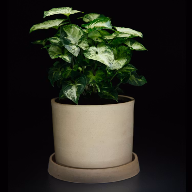 Syngonium 'Pixie' är en småväxt variant av den populära Syngonium, känd för sina dekorativa, hjärtformade blad som ofta har en vacker färgförändring från grön till ljusrosa eller vit när de mognar. Den kompakta storleken gör den perfekt för mindre utrymmen, samtidigt som den tillför en tropisk känsla till alla inomhusmiljöer. Den är lättskött och gör sig bra i både hängande krukor eller på hyllor där den kan sprida sina vackra, mönstrade blad.