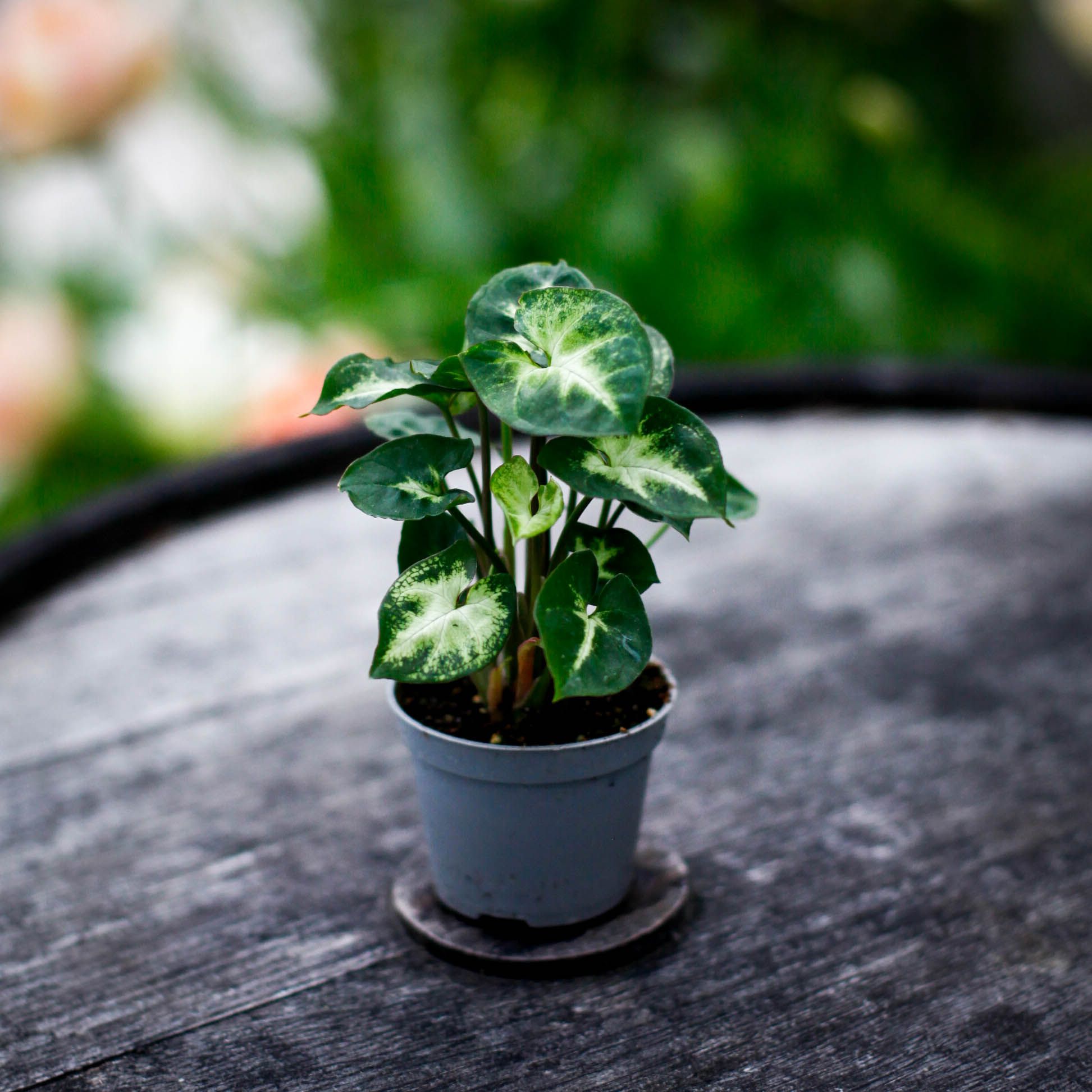 Syngonium 'Pixie' är en kompakt och charmig sort av syngonium med ett friskt, grönt bladverk och ett nätt växtsätt. Dess små, pilformade blad i ljusgrönt med krämvita fält ger ett livfullt intryck trots växtens blygsamma storlek. Perfekt för mindre utrymmen, växtgrupper eller som söt dekoration i bokhyllan.