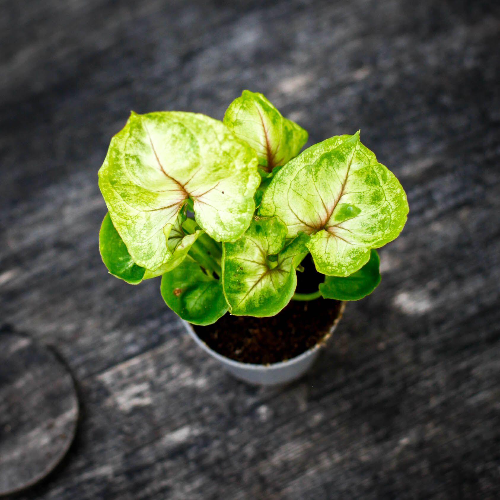 Syngonium 'Sunshine' – En tropisk skönhet med ljusa blad i gult och grönt. Perfekt för inomhusmiljöer, lätt att sköta samt föröka. Beställ nu!