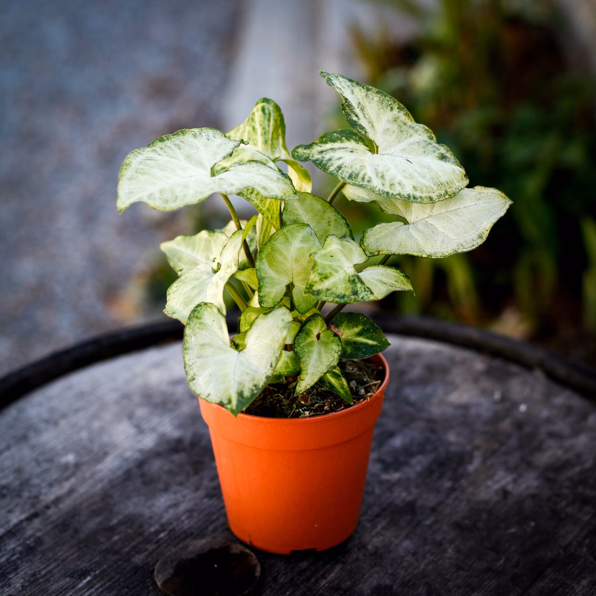 Syngonium 'White Butterfly' - 12cm kruka. Lättskött, rankar med tiden och förbättrar luftkvaliteten. Elegant skönhet och enkel skötsel.