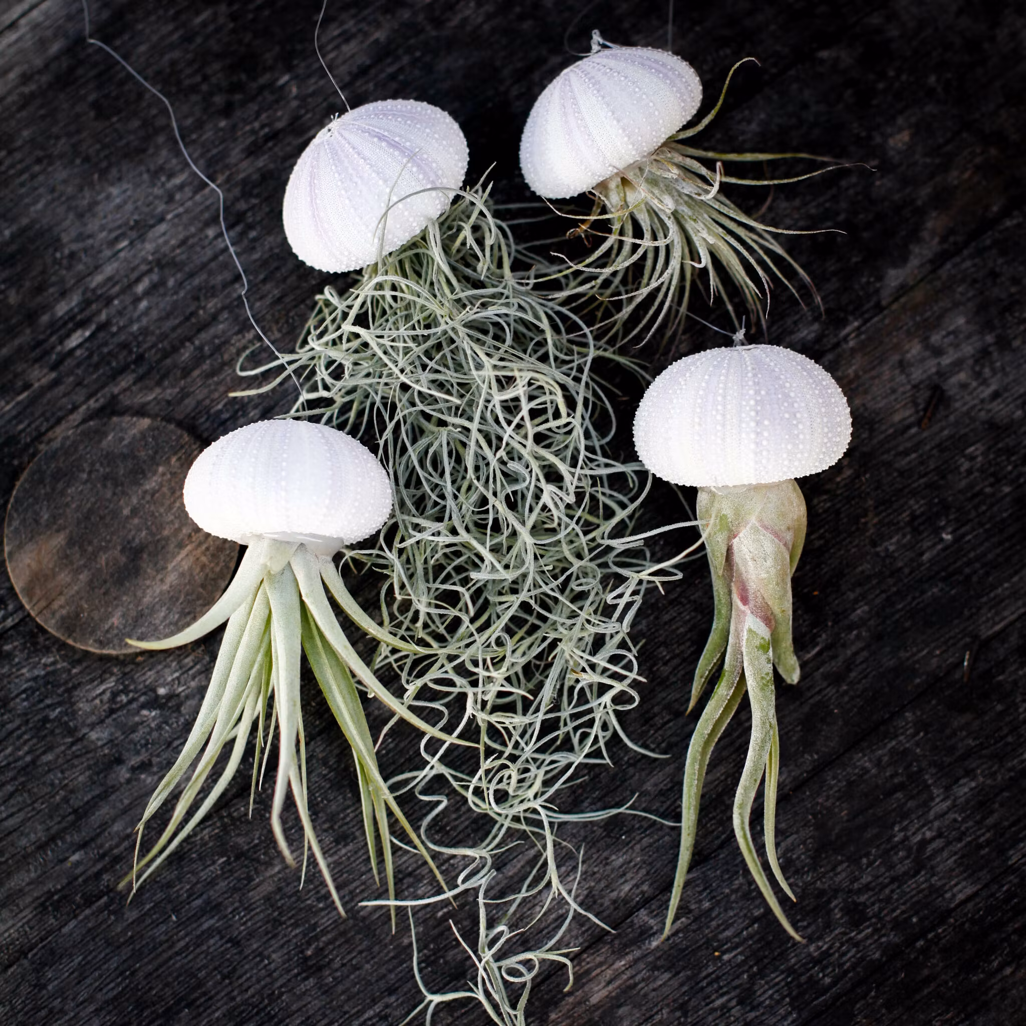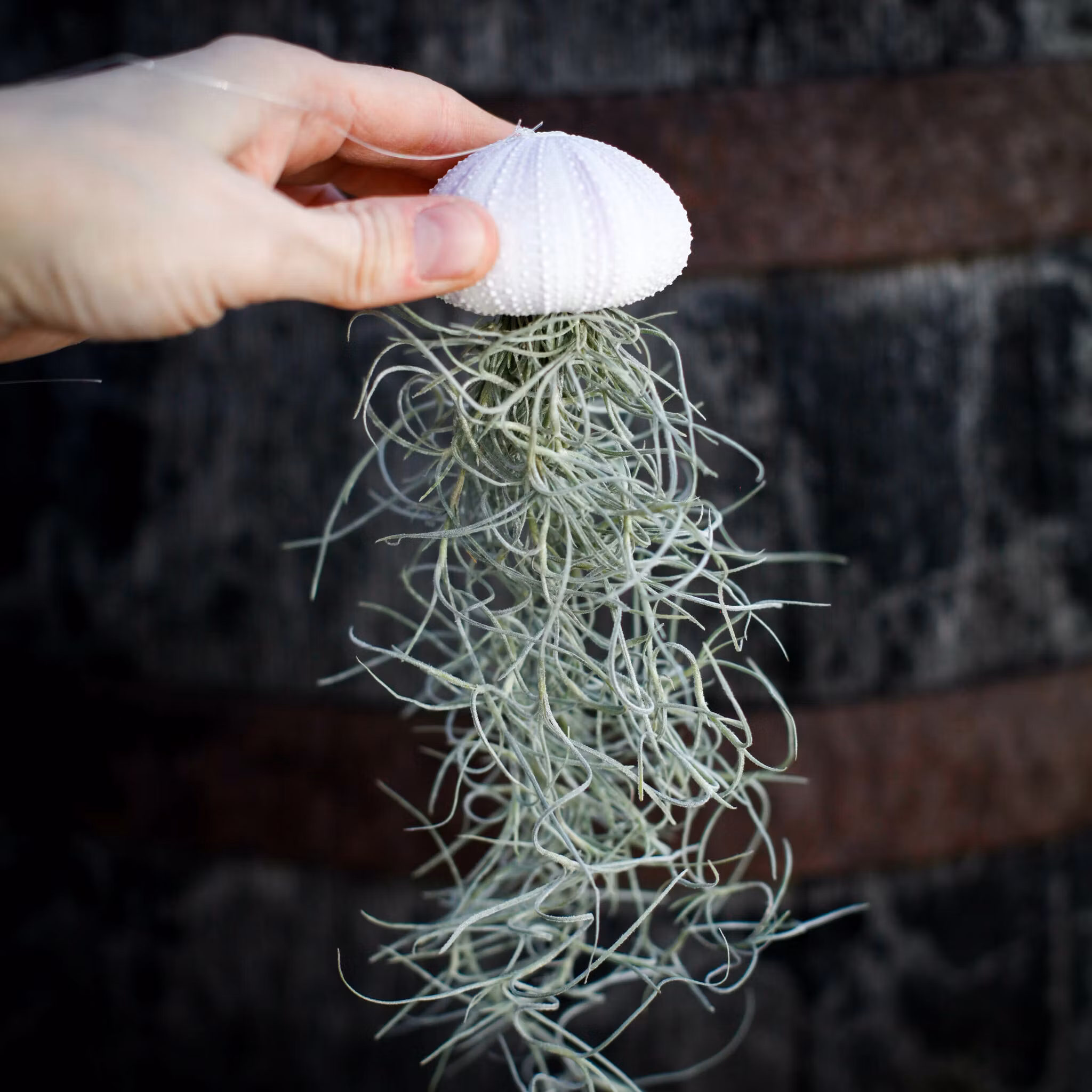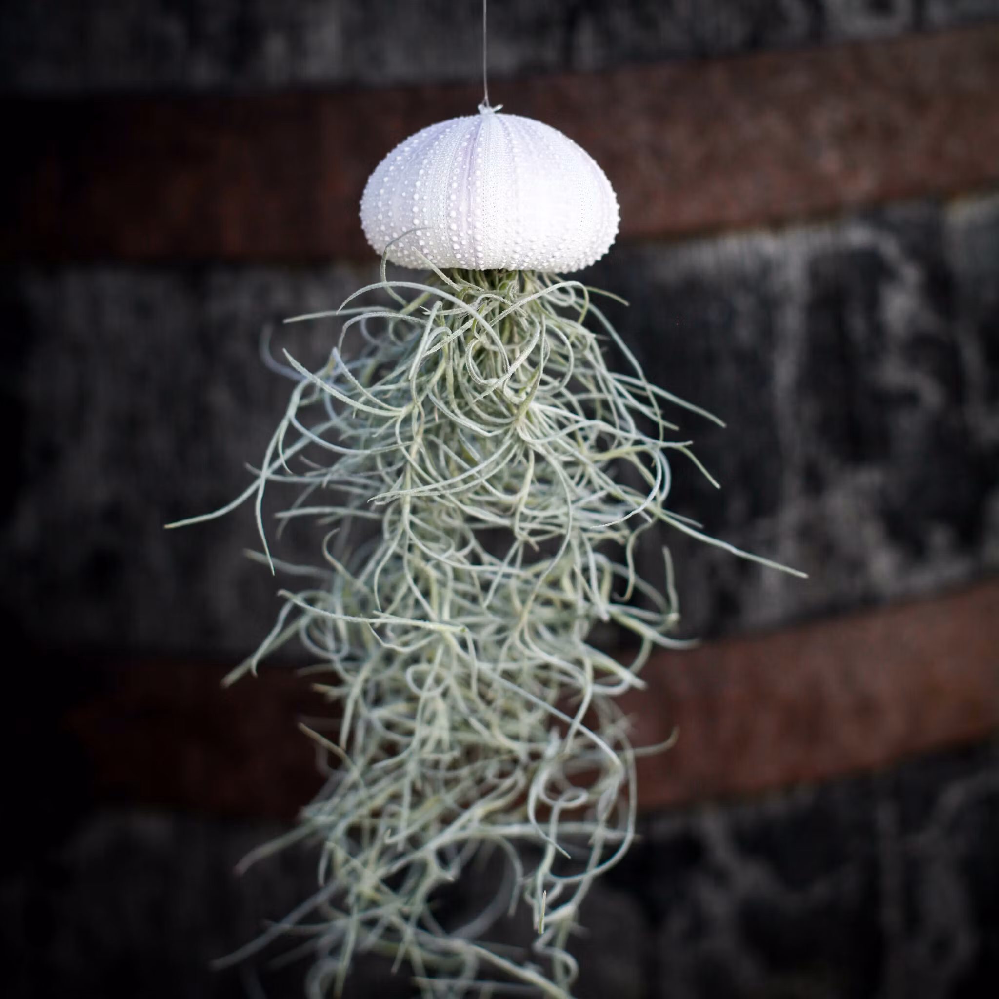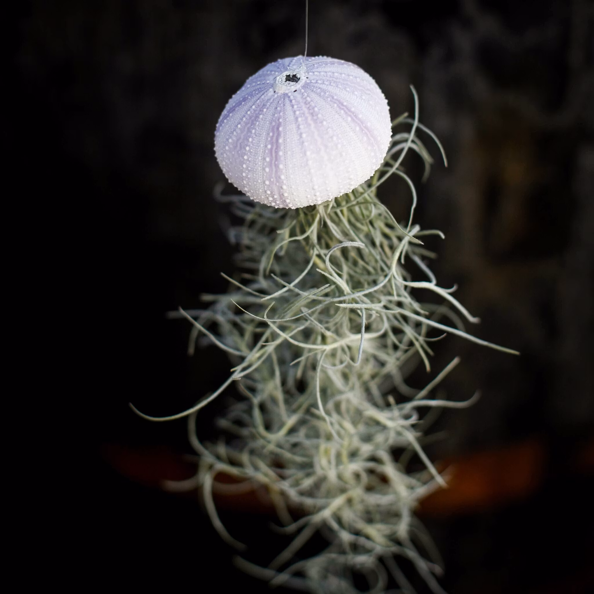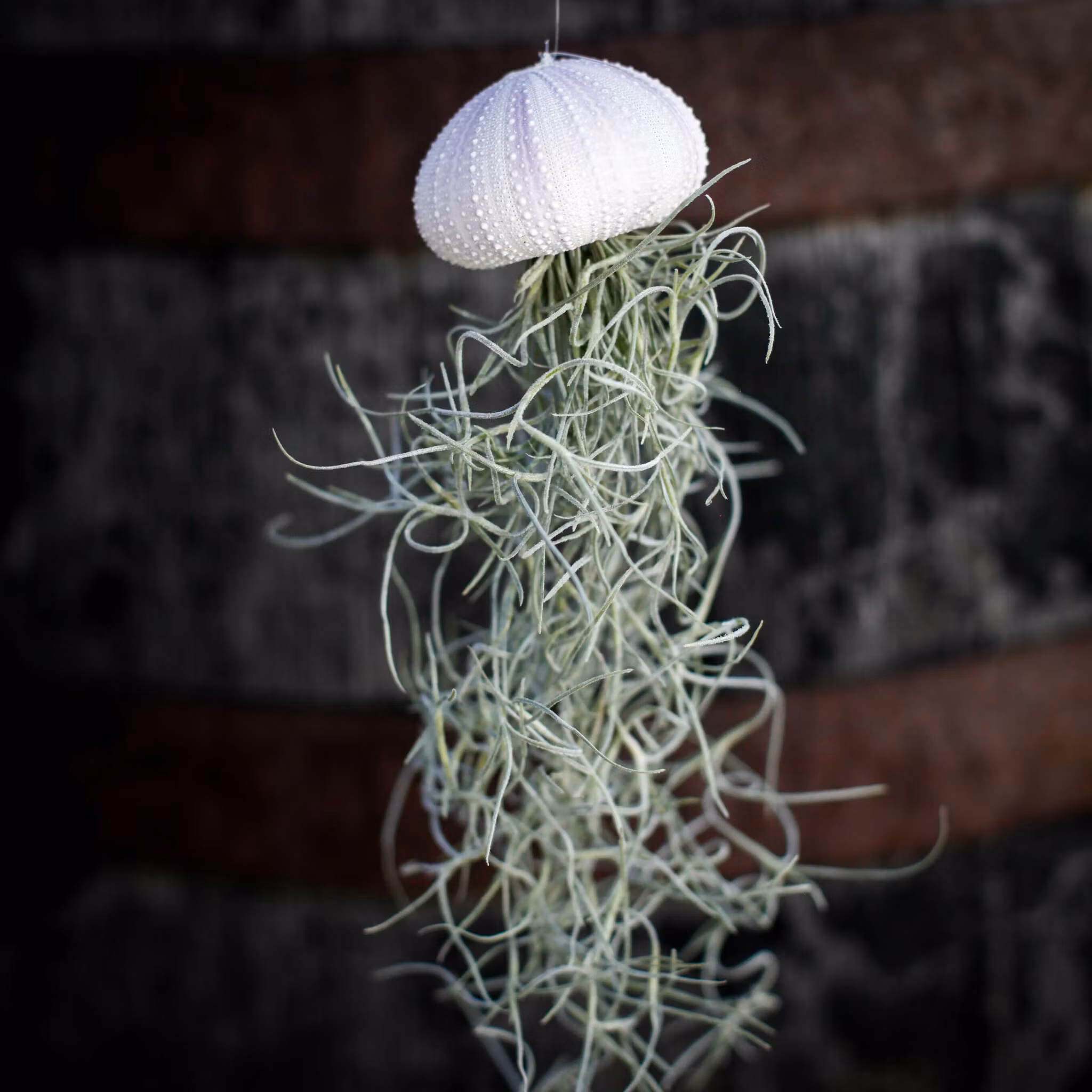 Med Tillandsia i sjöborreskal får du en vacker, levande dekoration som tycks sväva fritt i luften – en perfekt detalj för alla som älskar stilren, naturlig inredning!