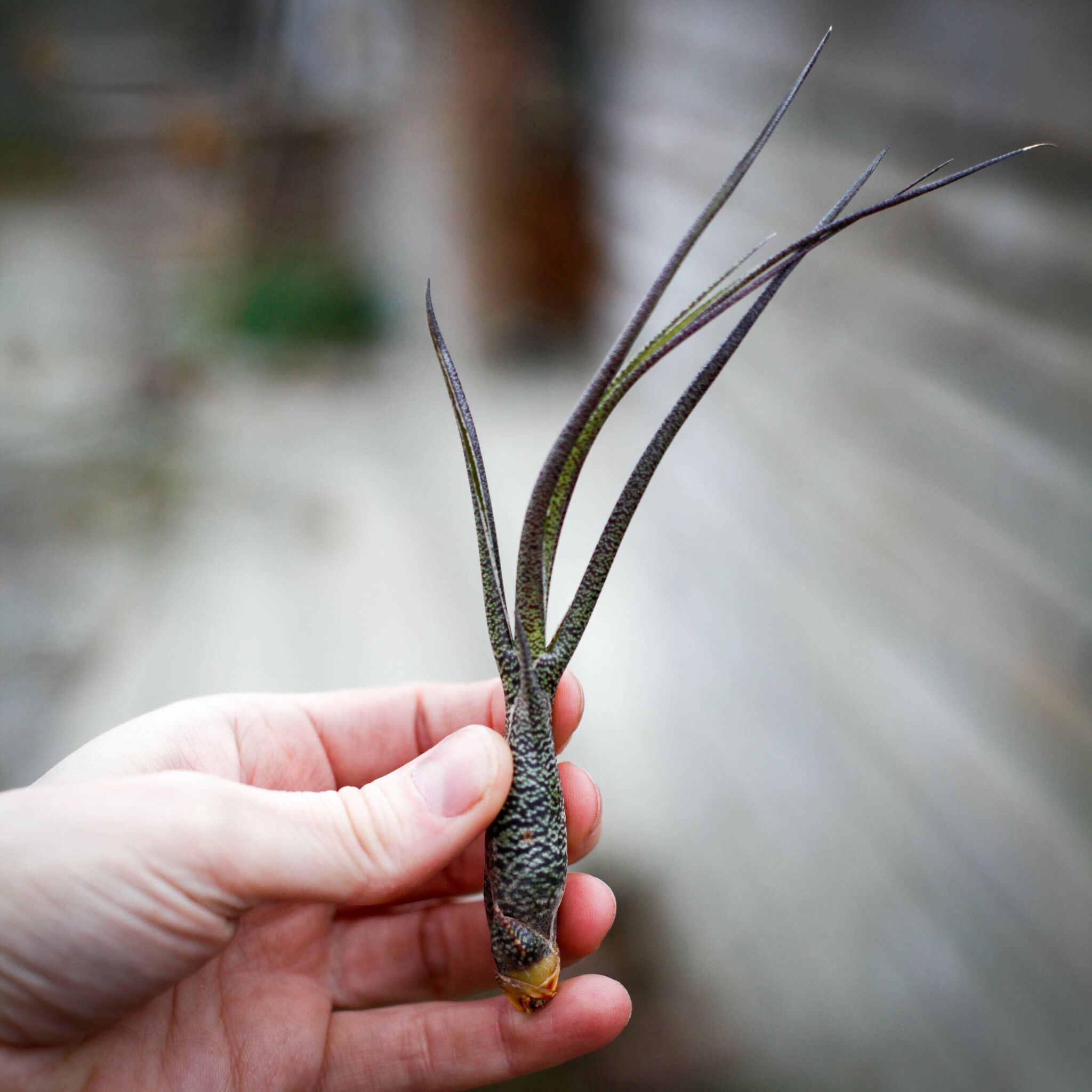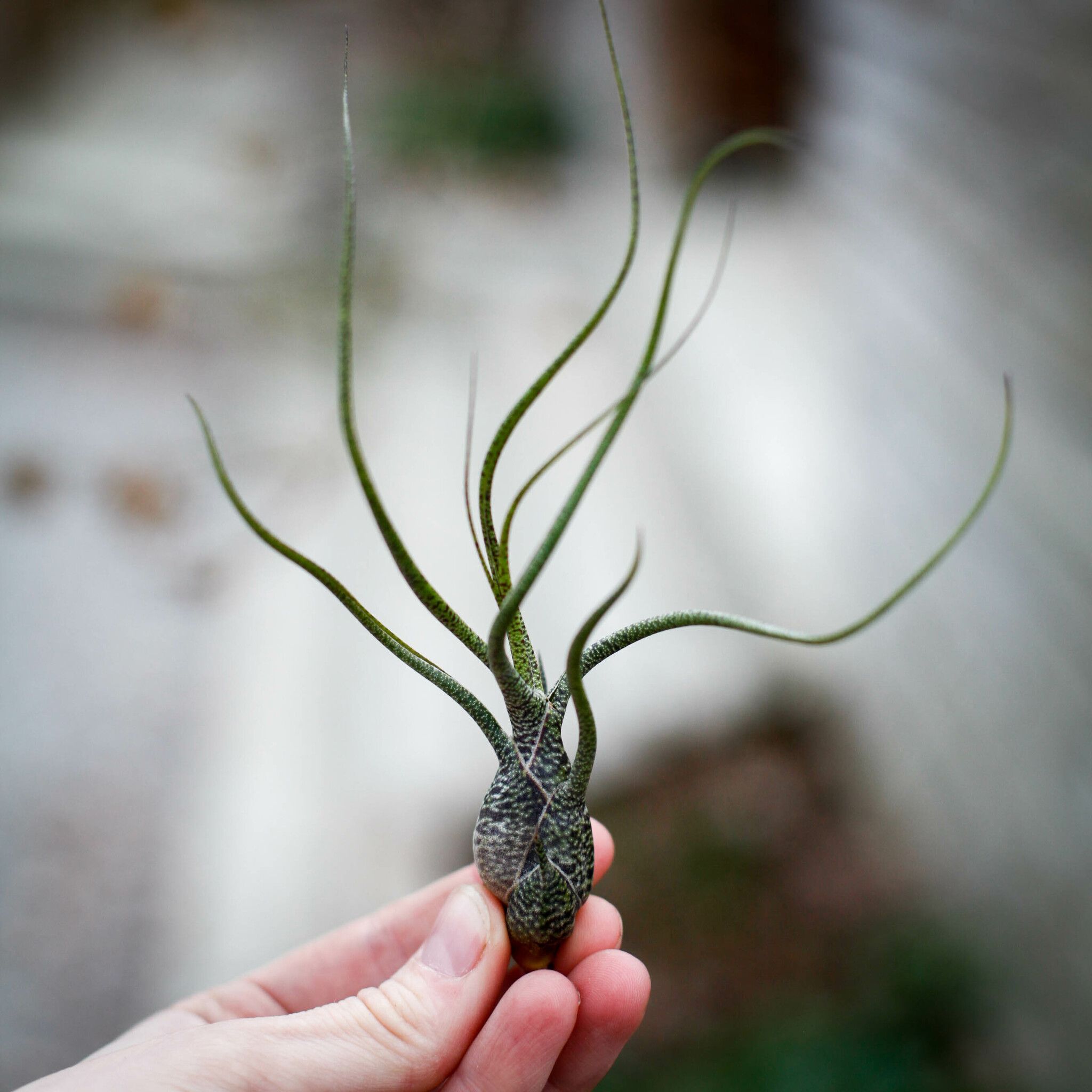 Tillandsia butzii är en fantastisk luftväxt som tillhör familjen Bromeliaceae och är känd för sina unika, smala blad och eleganta, silverfärgade yta. Den här växten är perfekt för dem som vill ha en tropisk touch i hemmet utan att behöva ge mycket uppmärksamhet, då den är lättskött och kräver minimalt med vatten. Dess minimalistiska och graciösa utseende gör den till en utmärkt dekoration för alla typer av inredningar.