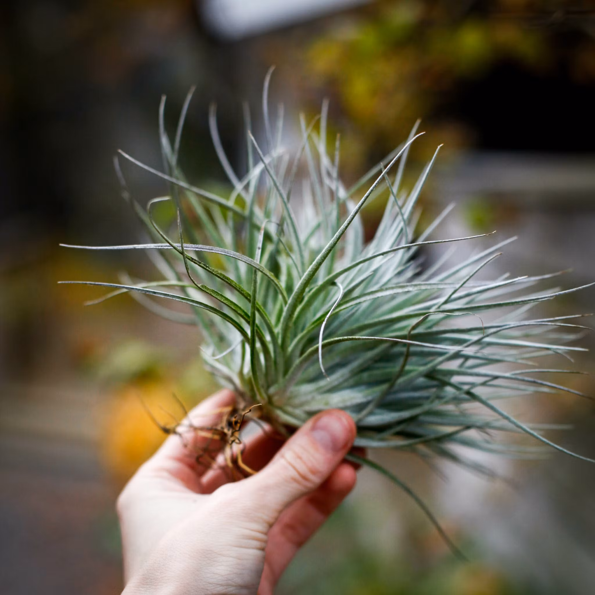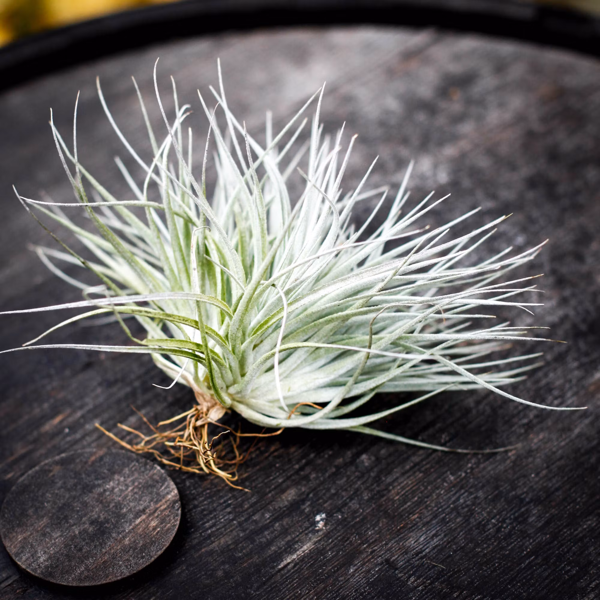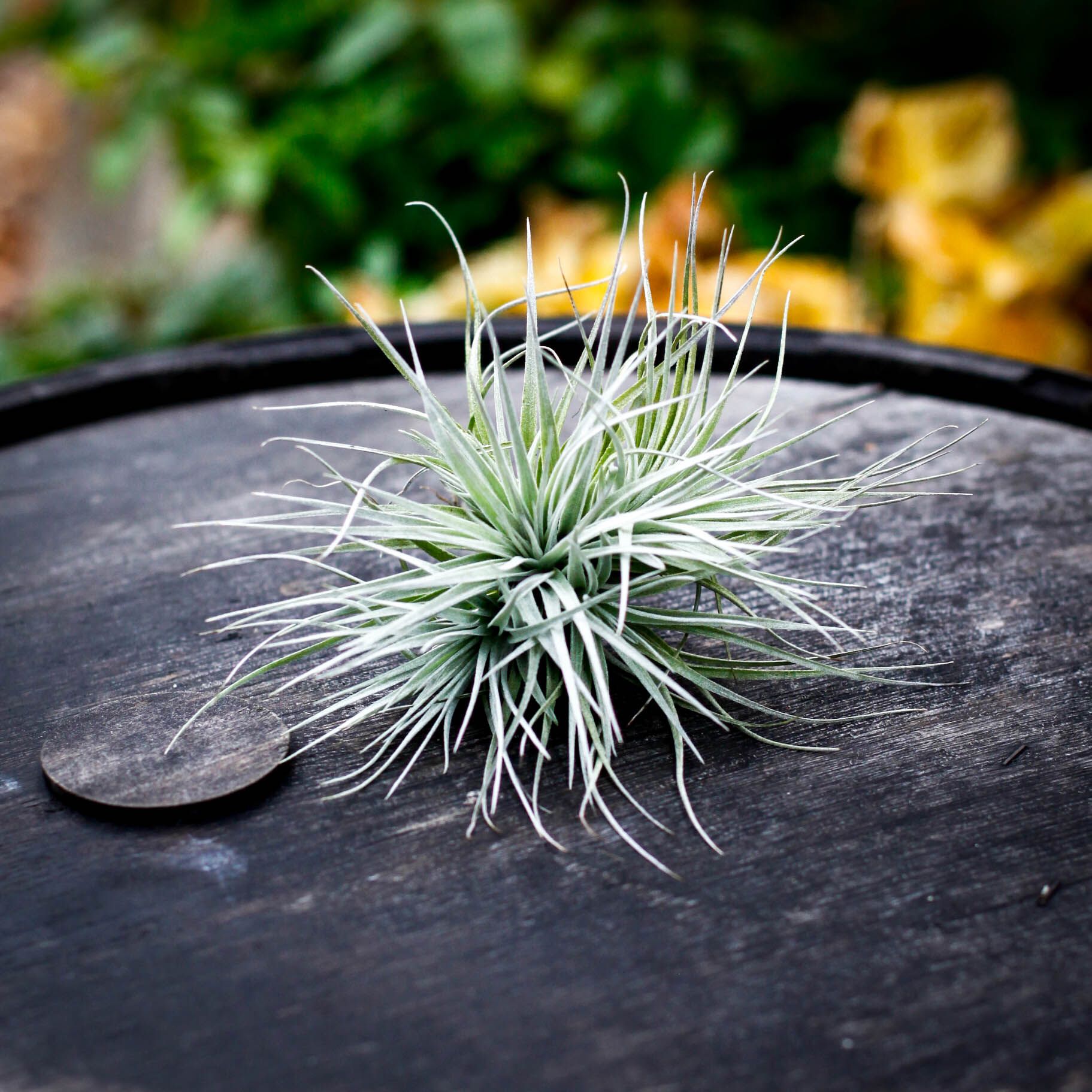 Tillandsia 'Cotton Candy' är en epifytisk luftplanta med silvergröna blad och rosa blomax. Perfekt för glaskupor och hängande arrangemang. Köp hos Klorofyllverk