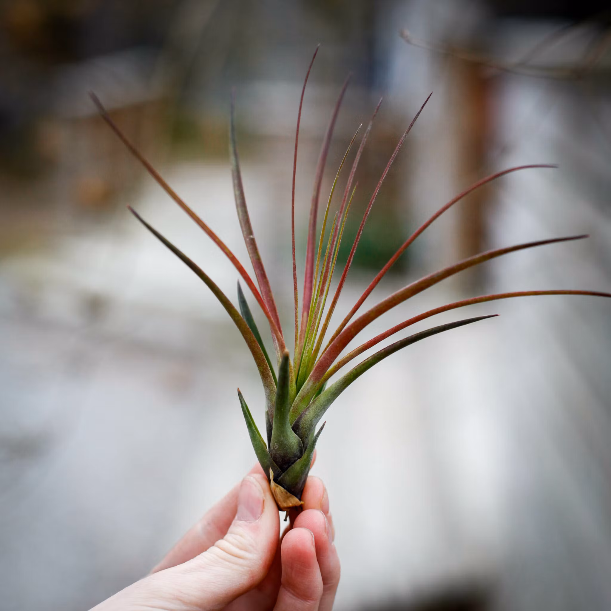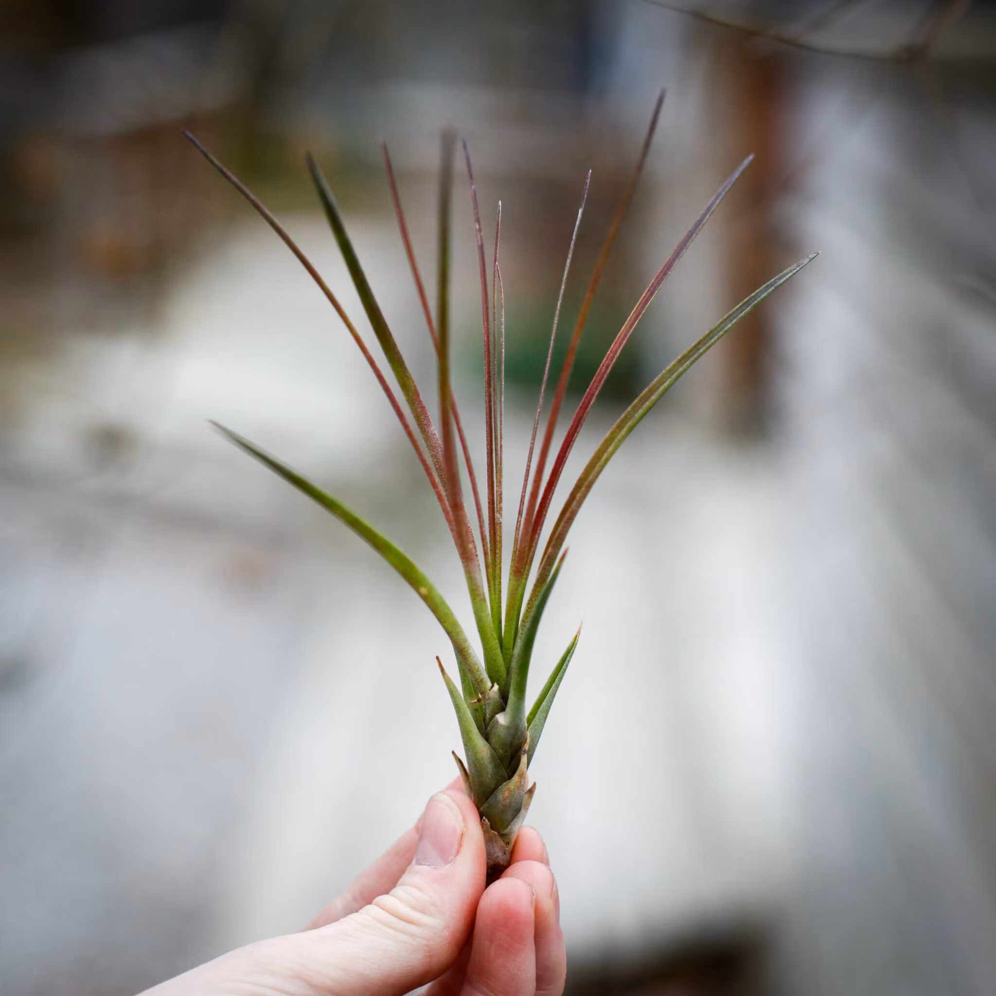 Tillandsia melanocrater 'Röd' är en spektakulär luftväxt som tillhör den unika släktena Tillandsia, också kända som luftpumlor eller luftväxter. Denna växt är särskilt beundrad för sina vackra rödaktiga blad som förvandlar sig till en iögonfallande röd färg under blomningsperioden. Med sin fascinerande form och livfulla färg är den ett perfekt tillskott till varje inomhusmiljö och en favorit bland växtälskare som söker något unikt.