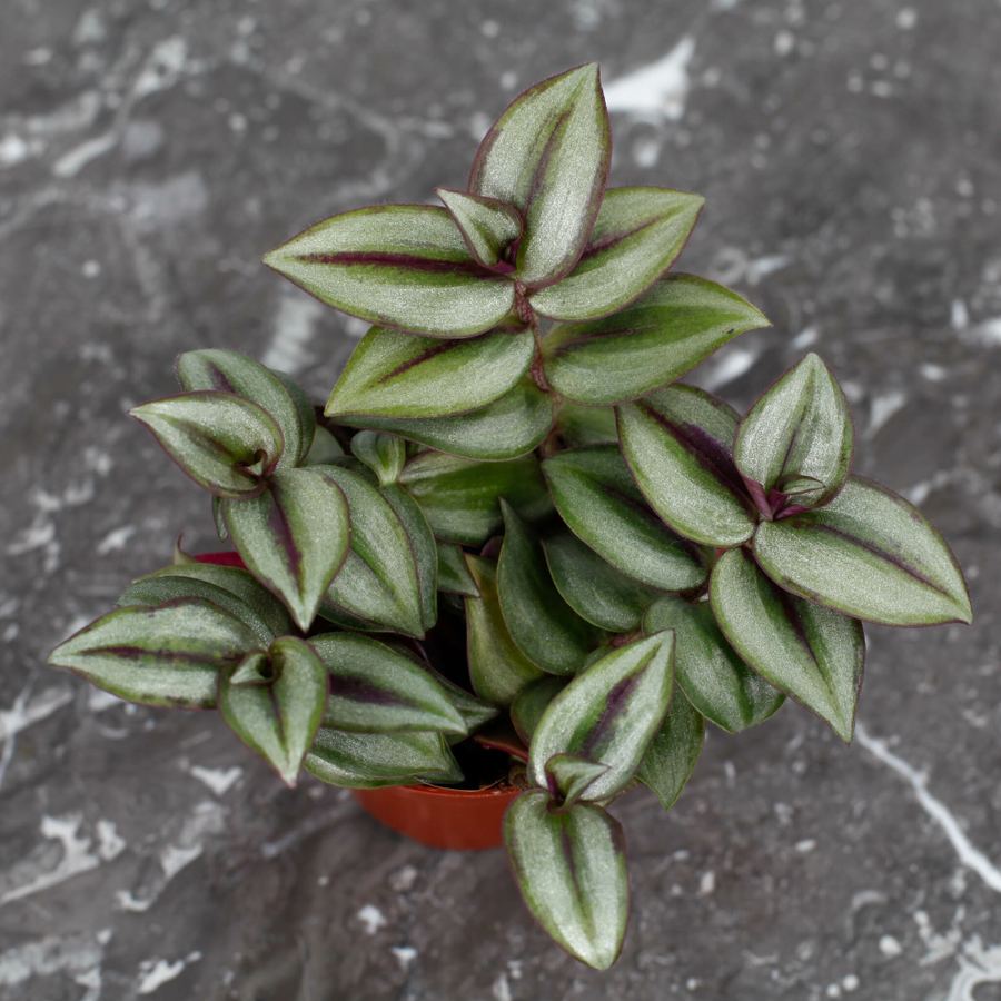 Tradescantia 'Pink Joy' 8 cm, en lila/silvrig skönhet, är lättskött och snabbväxande. Perfekt för nybörjare, den skapar en livfull atmosfär i ditt hem.