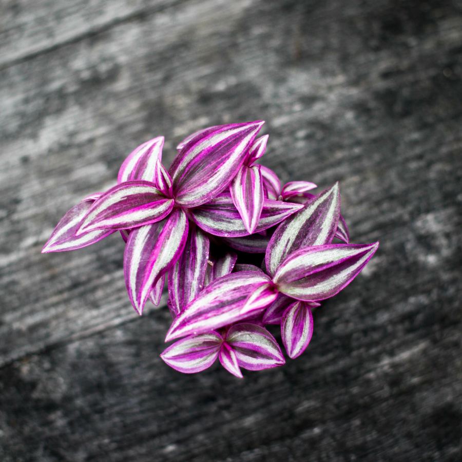 Upptäck Tradescantia 'Pink Paradise' 6 cm, hos Klorofyllverket. Med sina rosa-lila blad är den perfekt för nybörjare och skapar en färgsprakande atmosfär.