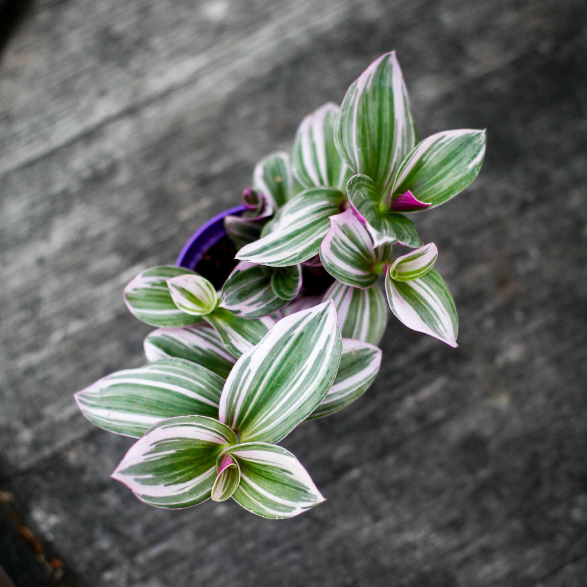 Tradescantia albiflora 'Nanouk' 7 cm, är en lättskött och snabbväxande skvallerreva med dekorativa randiga blad i grönt, vitt och rosa. Perfekt för halvskugga!