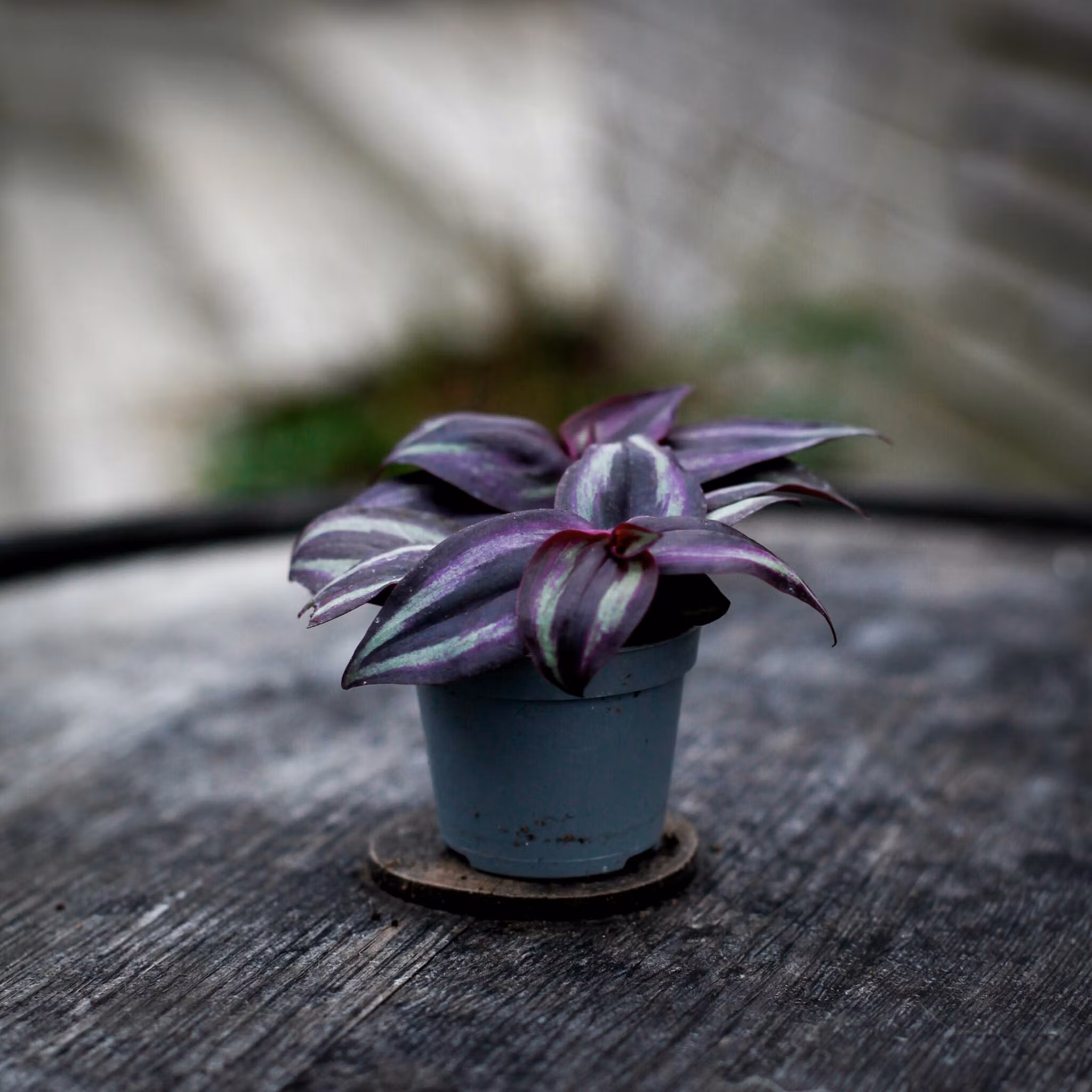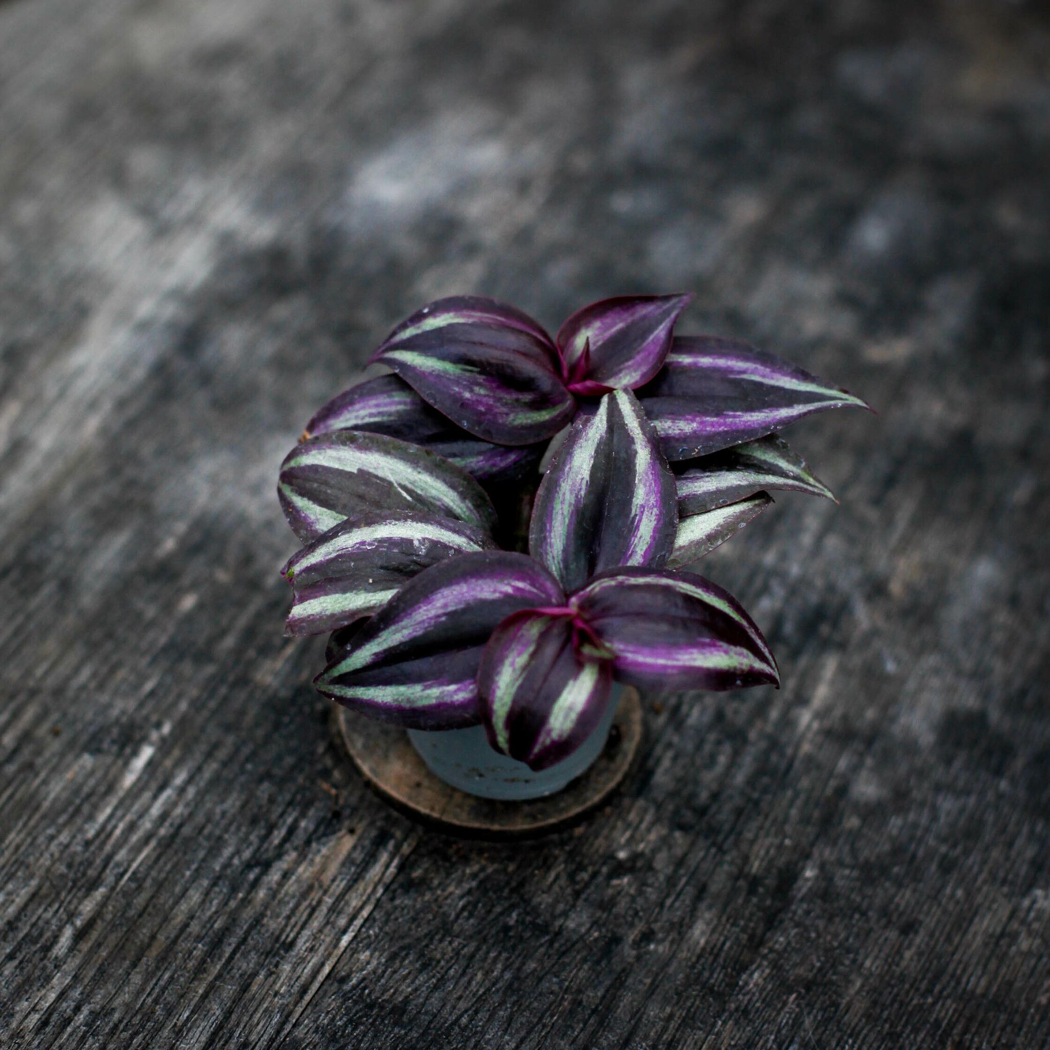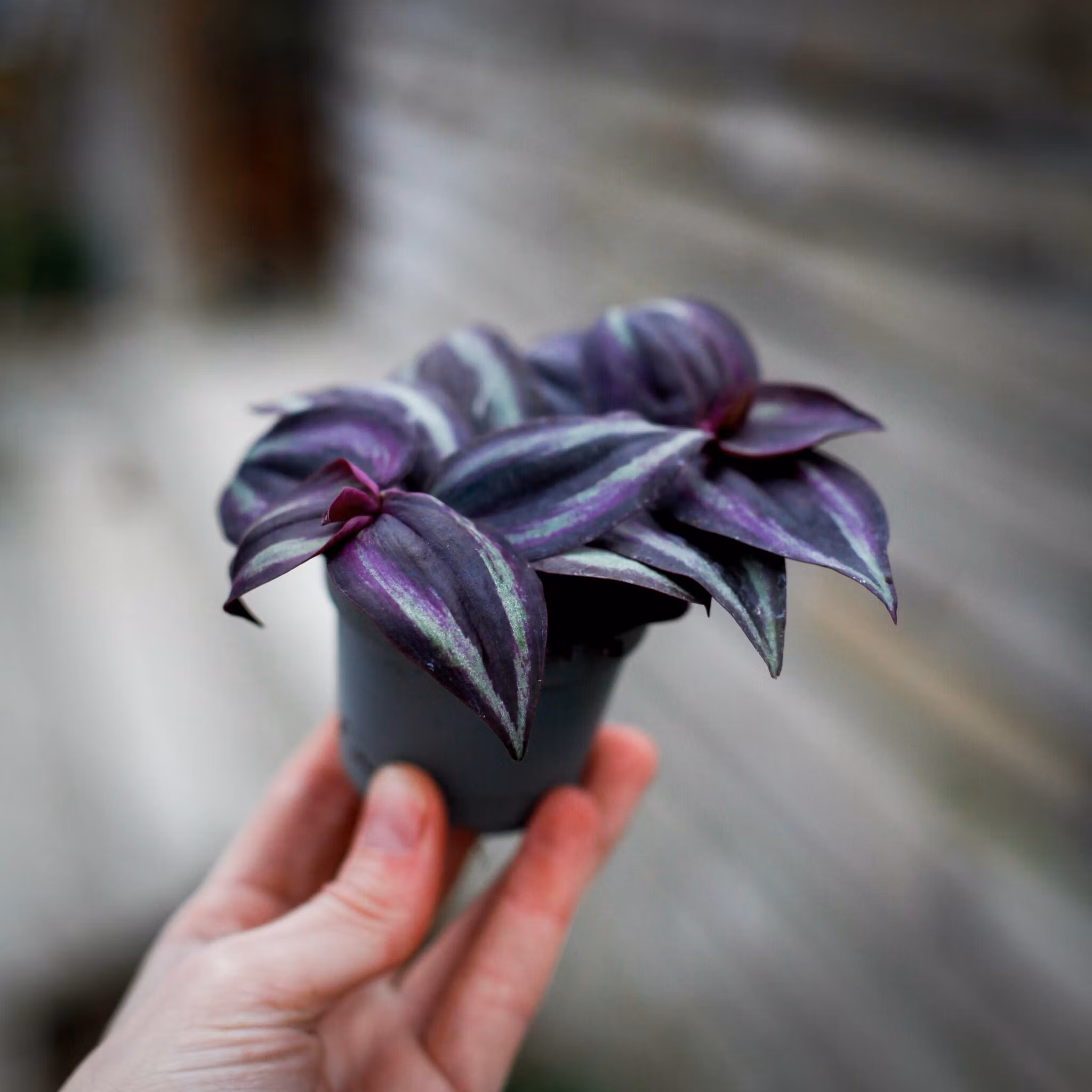 Tradescantia 'Purple Joy' är en fantastisk växt med djupvioletta och glänsande blad. Den är känd för sitt livliga utseende och passar perfekt som en dekorativ växt i både moderna och klassiska inomhusmiljöer.