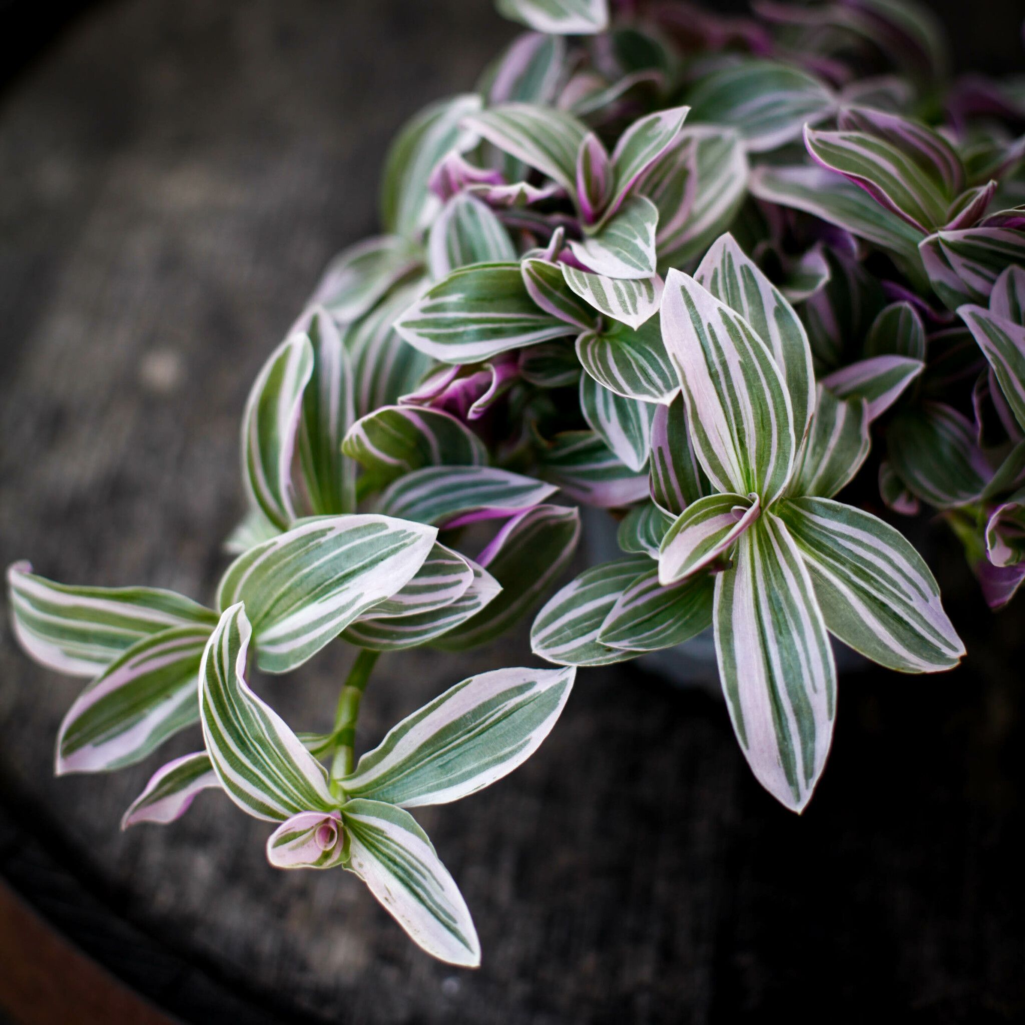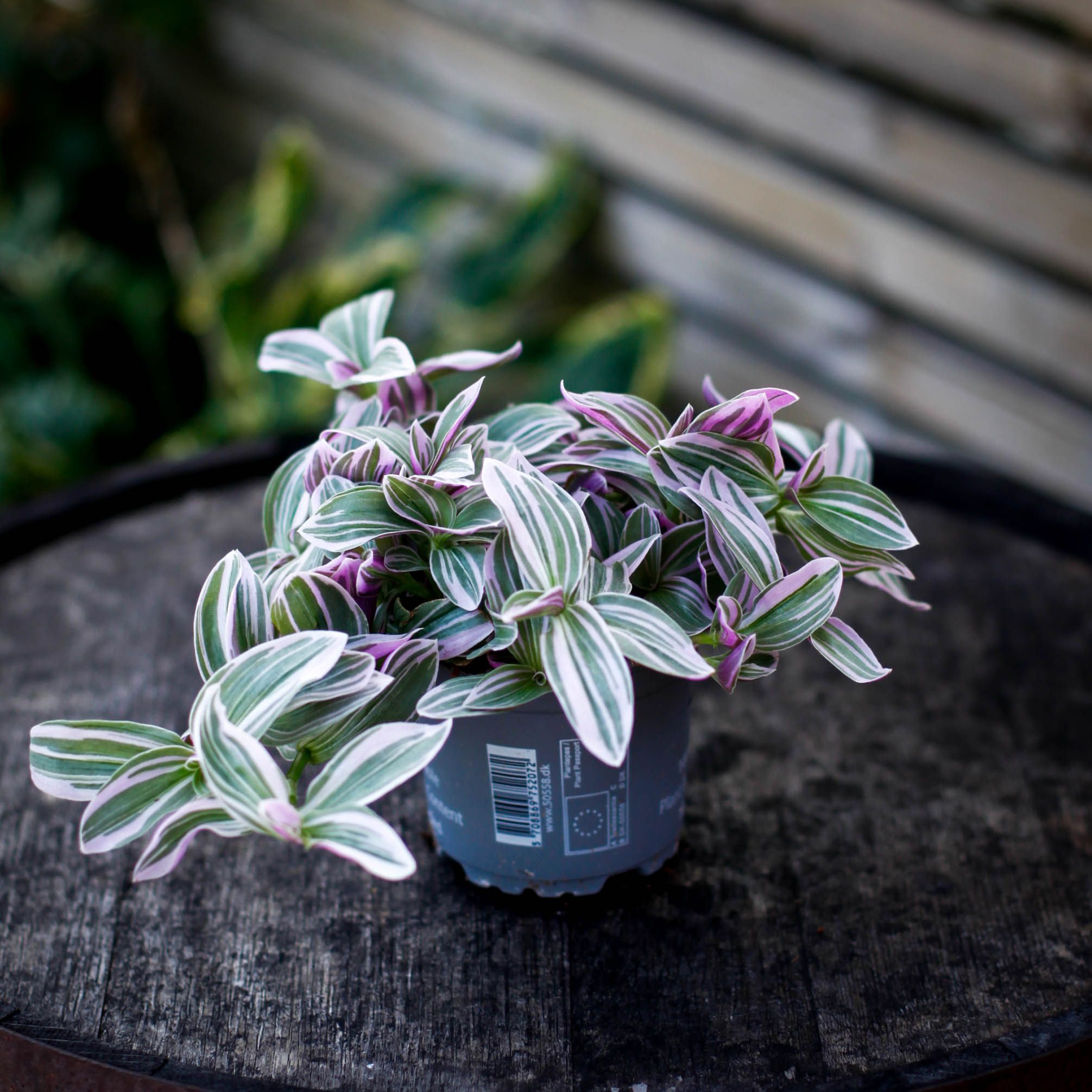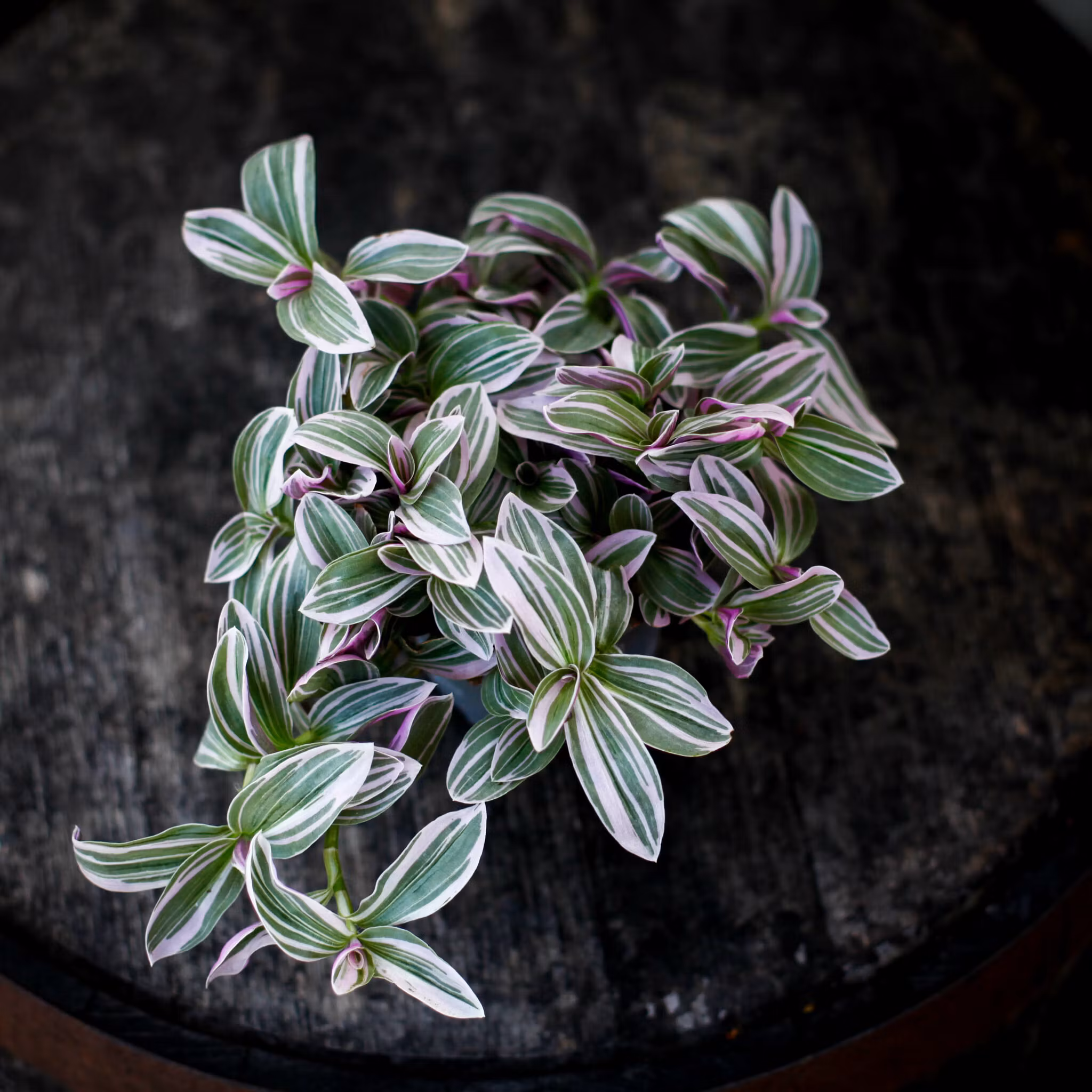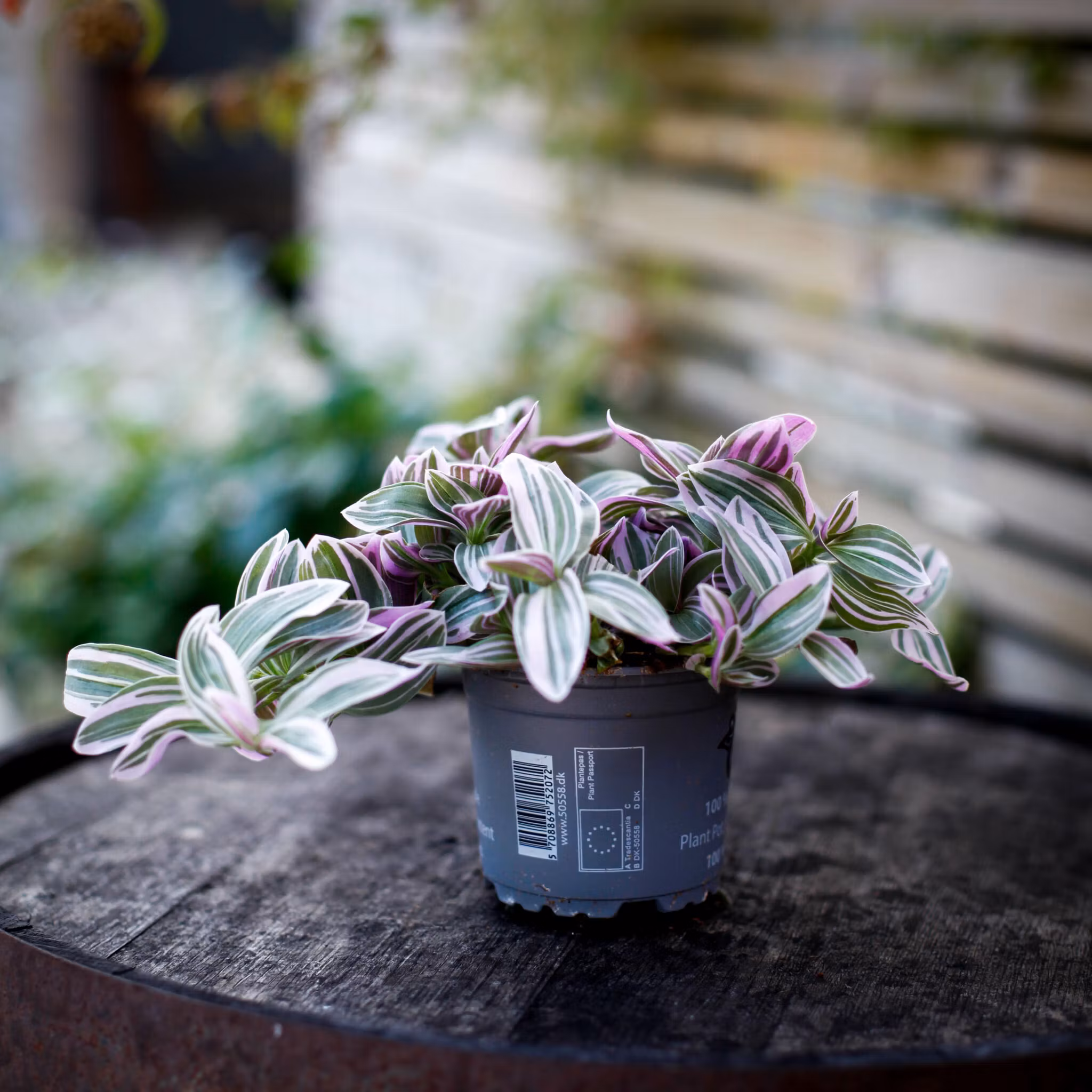 Upptäck Tradescantia 'Sweetness' 10.5 cm, – en färgsprakande och lättskött växt som ger liv åt ditt hem med sina rosa, lila och gröna blad. Perfekt för amplar!