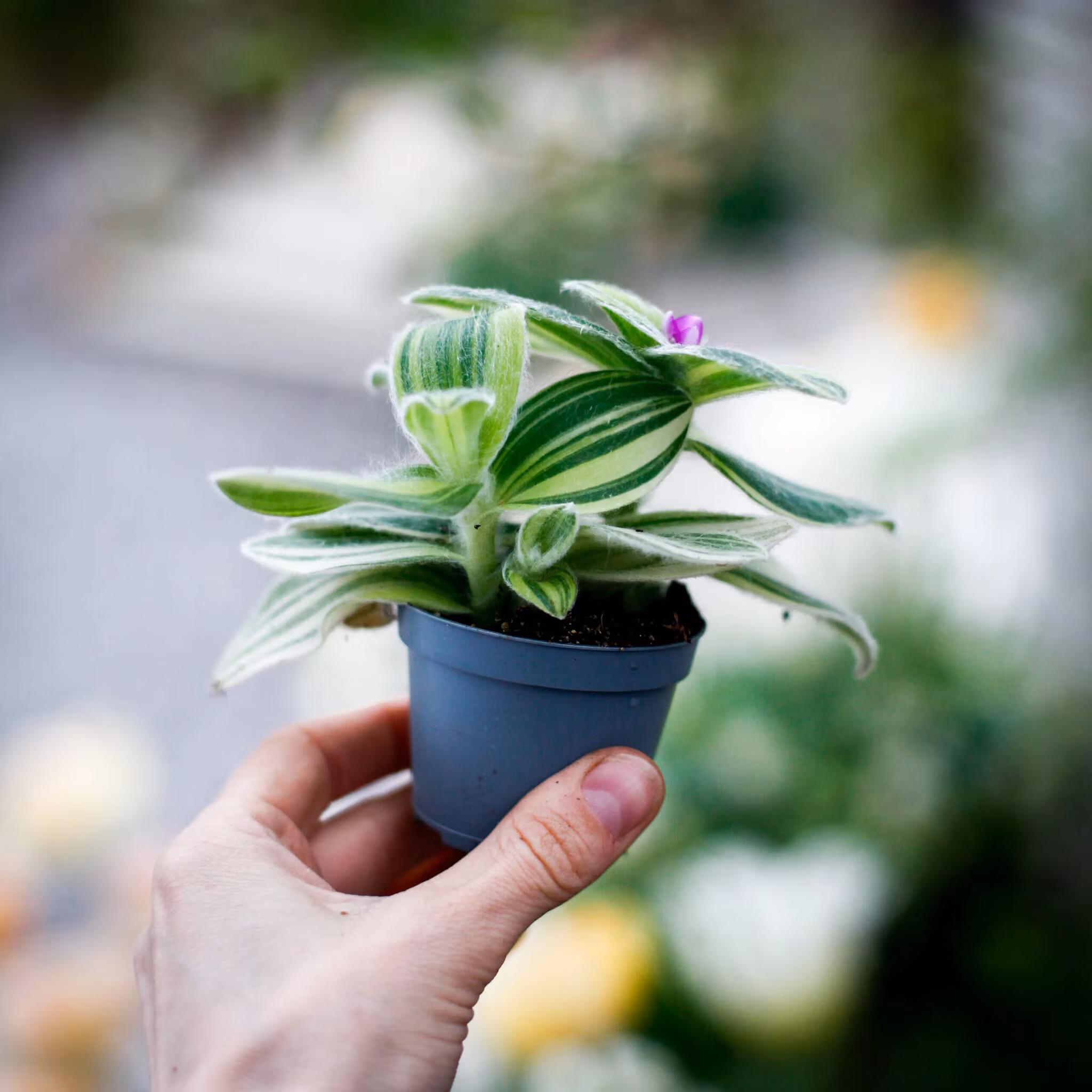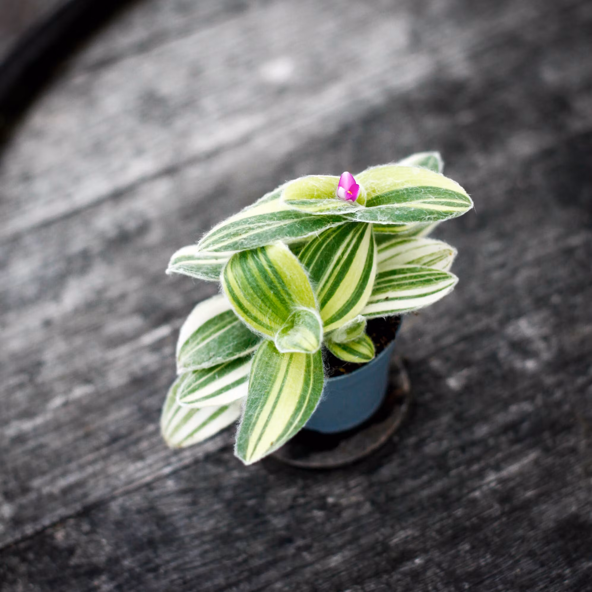 Tradescantia sillamontana 'Variegata'6 cm - Skvallerreva. En luden grön vit skönhet, lättskött & snabbväxande.