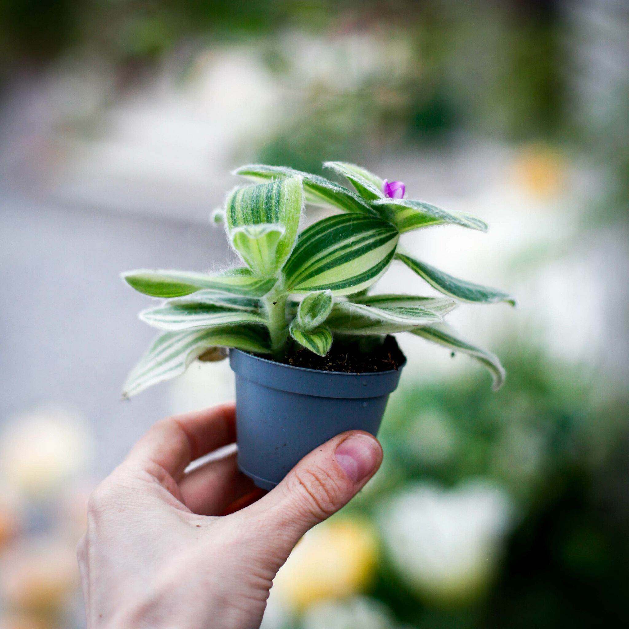 Tradescantia sillamontana kommer ursprungligen från Mexiko och är anpassad till torra förhållanden. Den ludna ytan fungerar som ett naturligt skydd mot stark sol och uttorkning. 'Variegata'-sorten är mer ovanlig och eftertraktad för sin brokiga färgteckning, vilket gör varje planta unik.