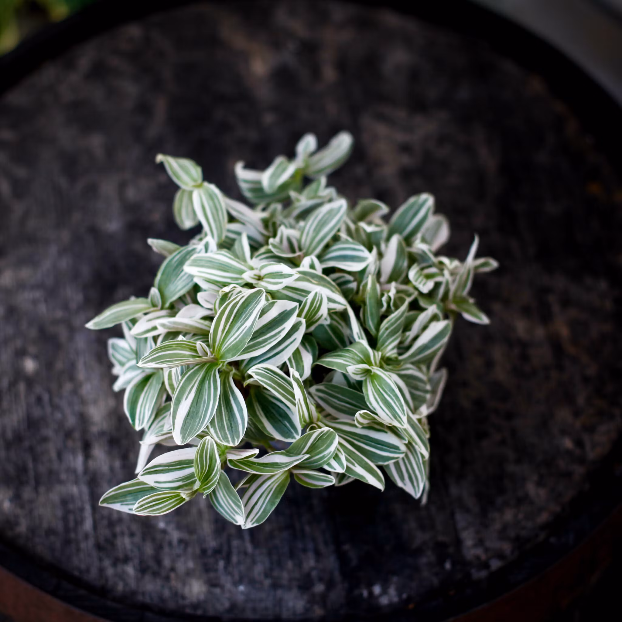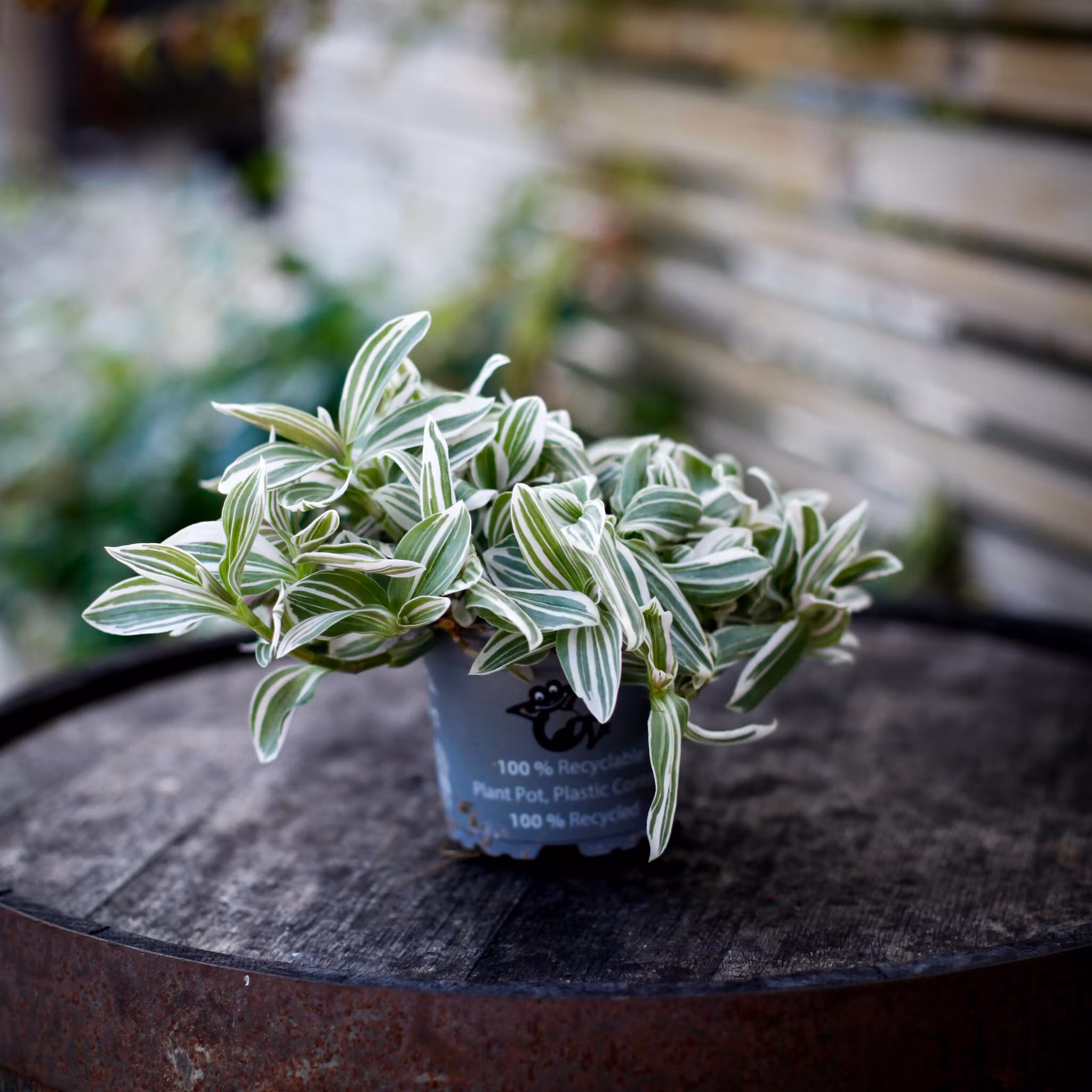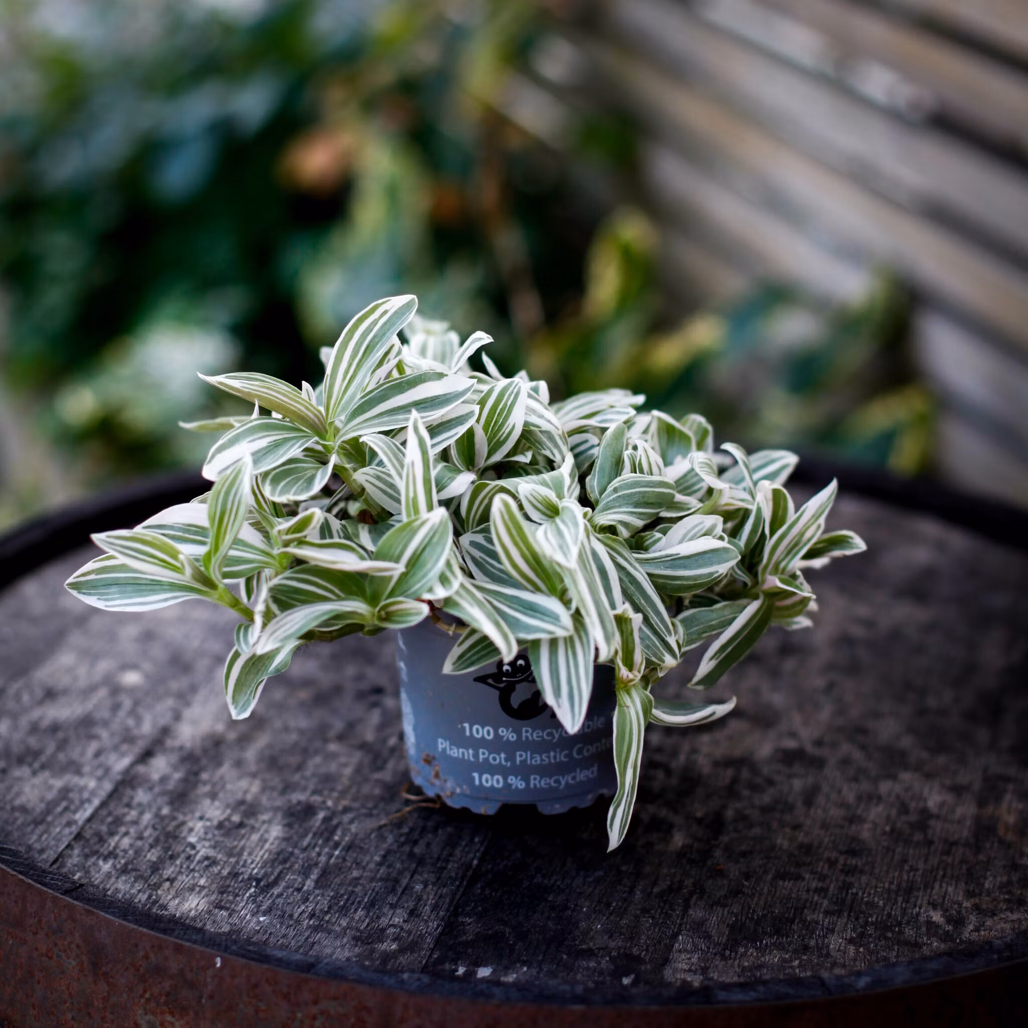 Tradescantia 'White Cobra' 12 cm - iögonfallande och lättskött växt med dramatiska vita och gröna ränder. Perfekt för att skapa frodig grönska i ditt hem.