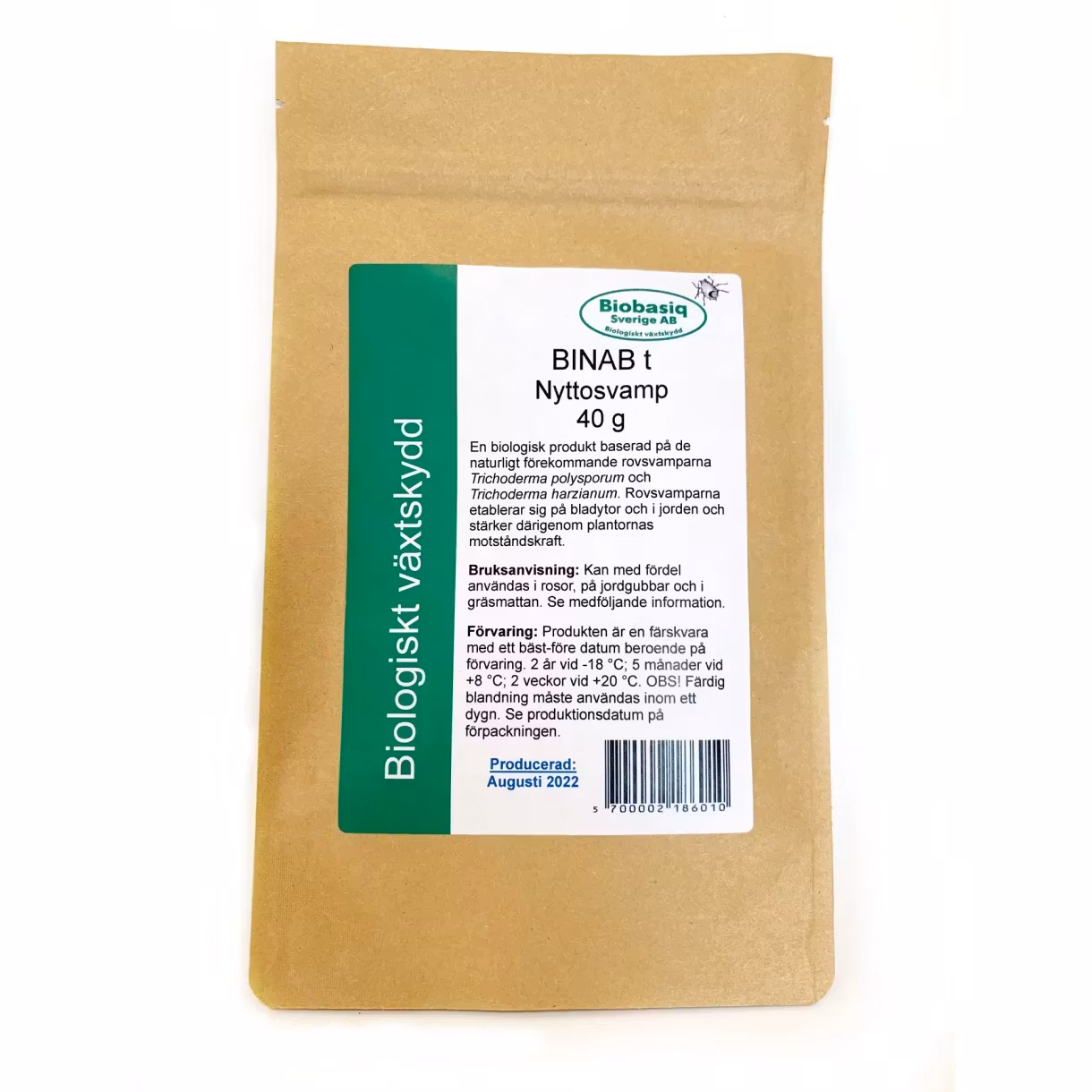 Svampsjukdomar som rotröta, vissnesjuka och gråmögel kan orsaka stora skador på växter i både inomhusodling och trädgård. Binab är ett biologiskt växtskydd som innehåller nyttosvamparna Trichoderma harzianum och Trichoderma polysporum. De koloniserar jorden kring rötterna, tränger undan skadliga svampar och stärker växtens eget försvar. Produkten är godkänd för ekologisk odling.