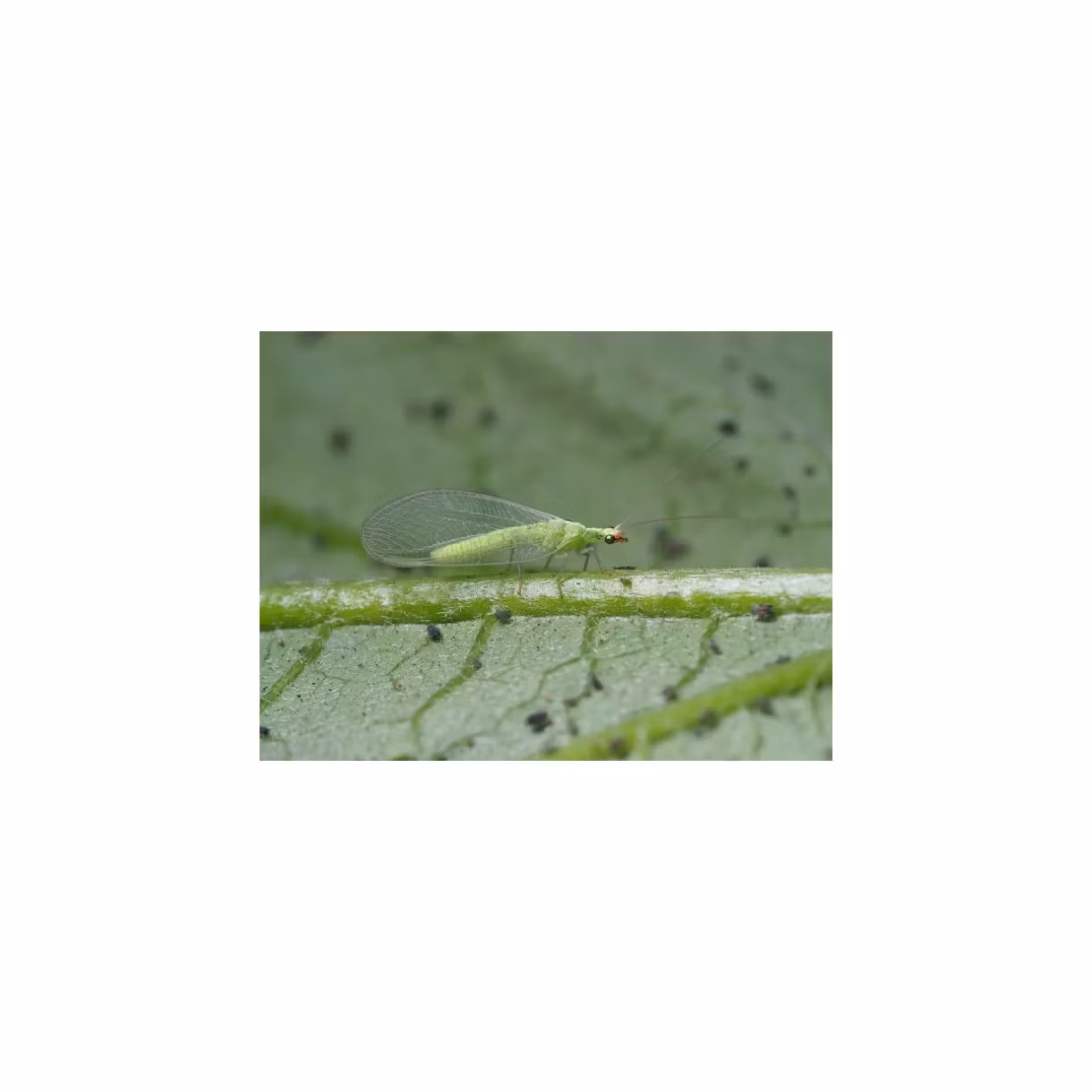 Bladluslejon (Chrysoperla carnea) är rovdjurslarver som äter hundratals bladlöss. Ett naturligt skydd för växthus, krukväxter och trädgård. Fri frakt.
